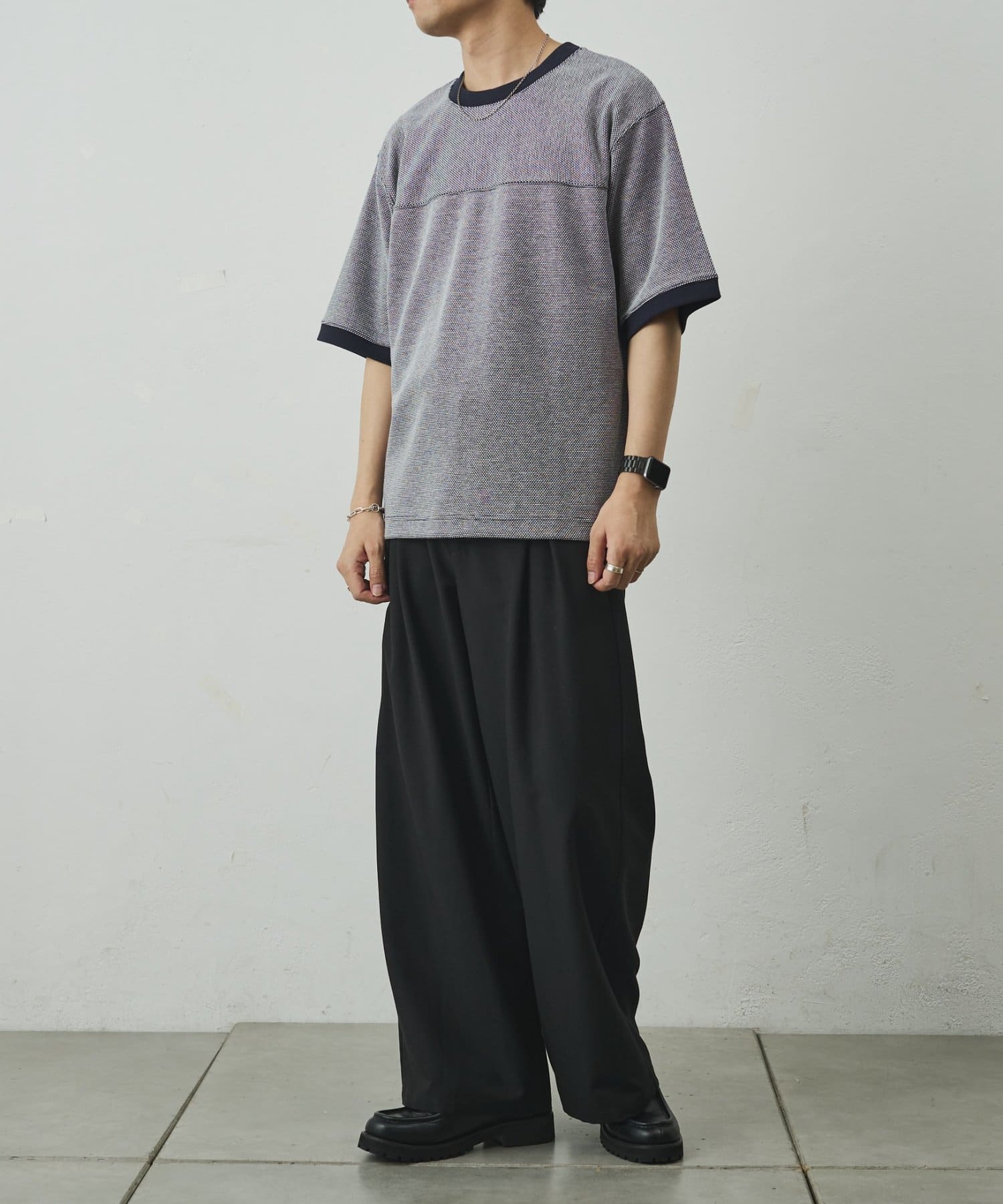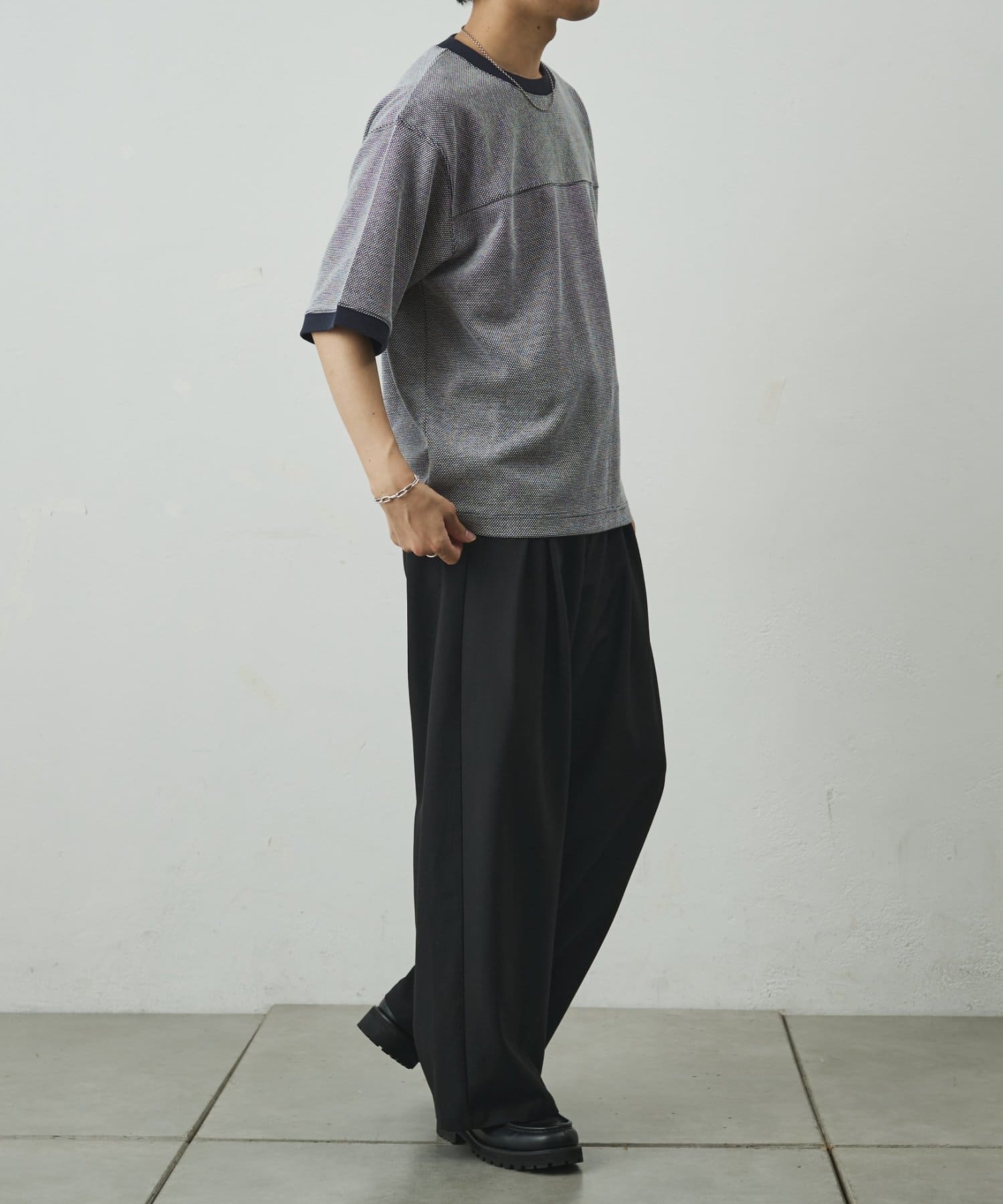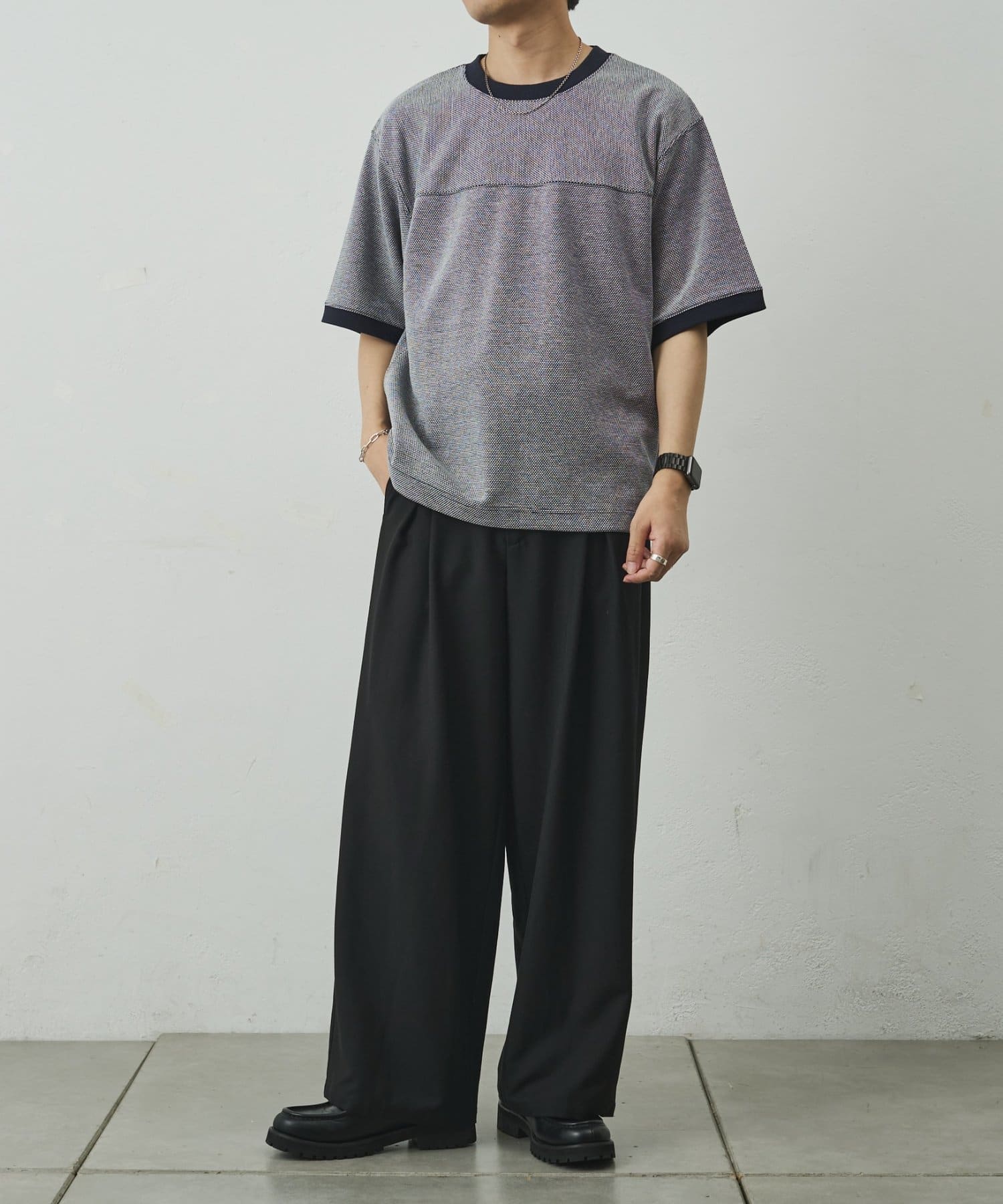 ゆとりのあるシルエットでシンプル過ぎないデザイン。合わせるパンツによってカジュアルからきれいめまで対応可能。