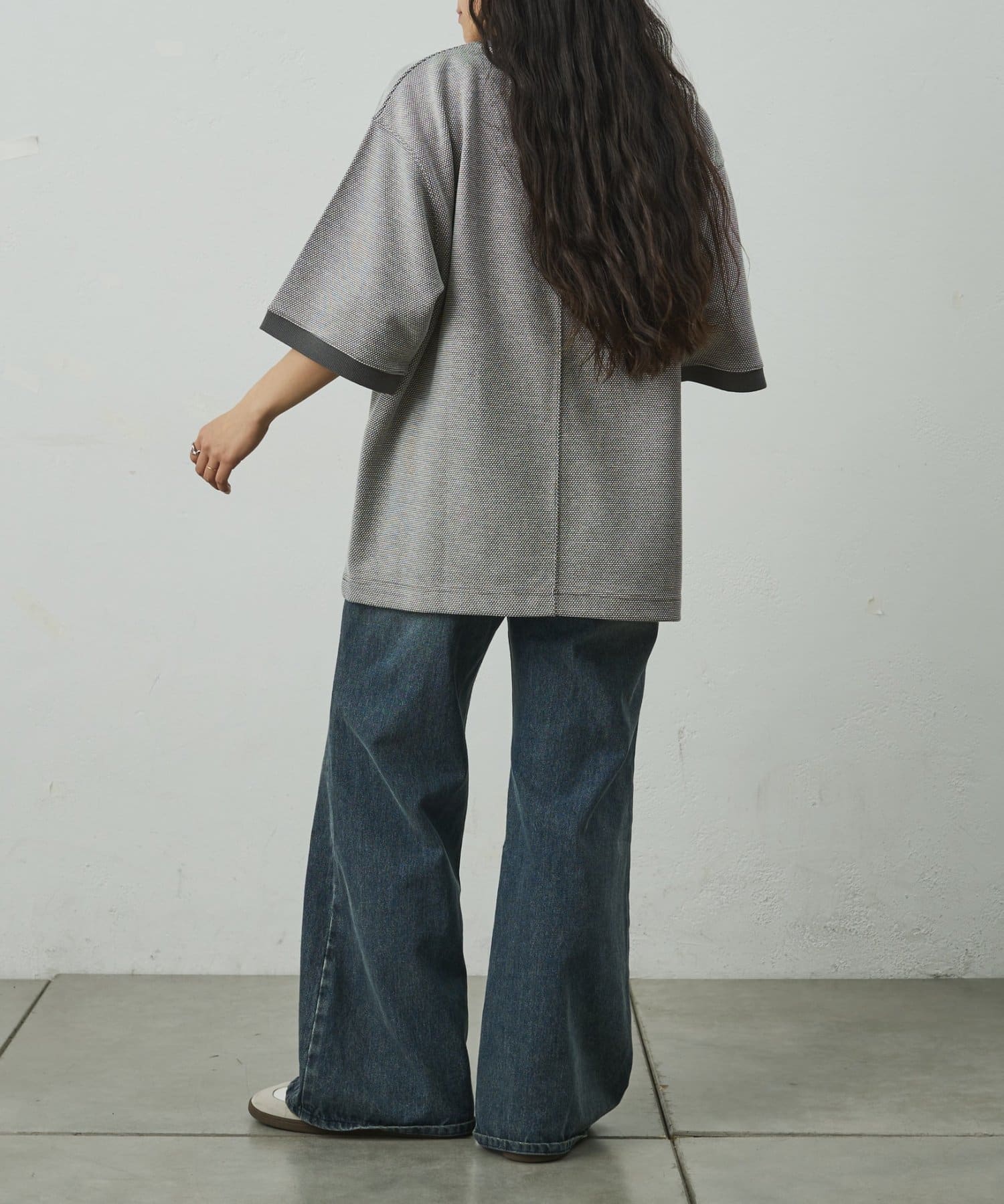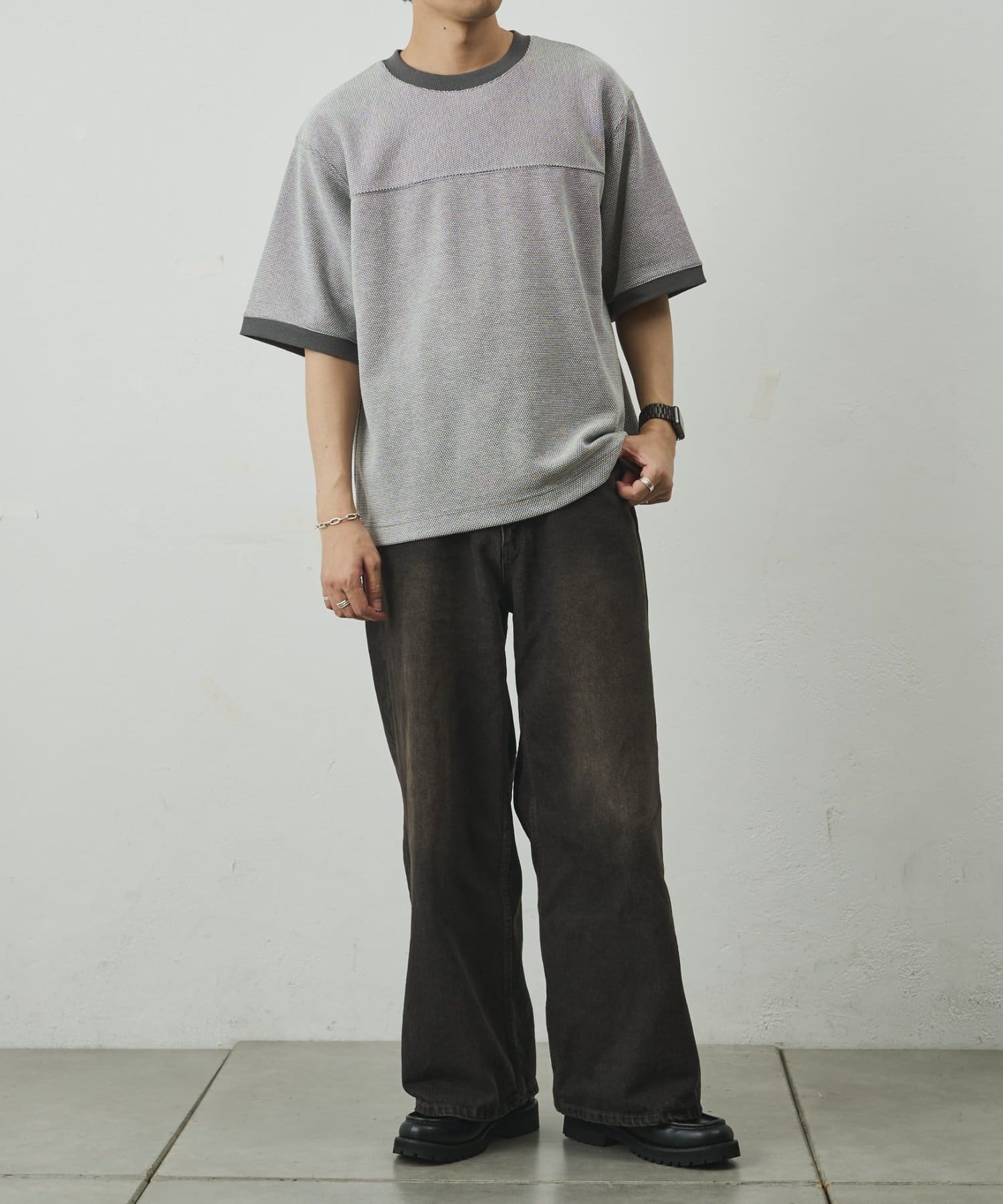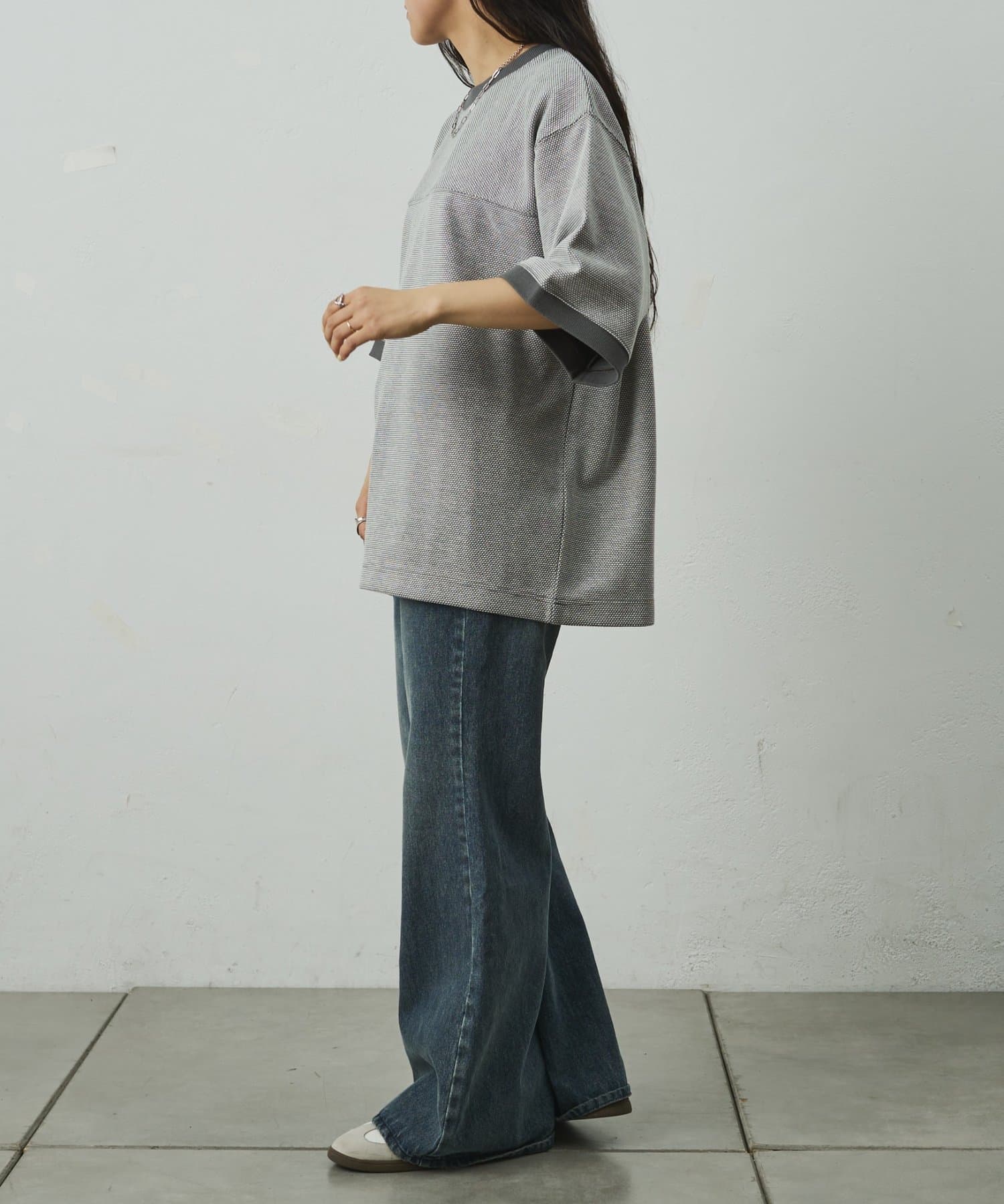 ゆとりのあるシルエットでシンプル過ぎないデザイン。合わせるパンツによってカジュアルからきれいめまで対応可能。