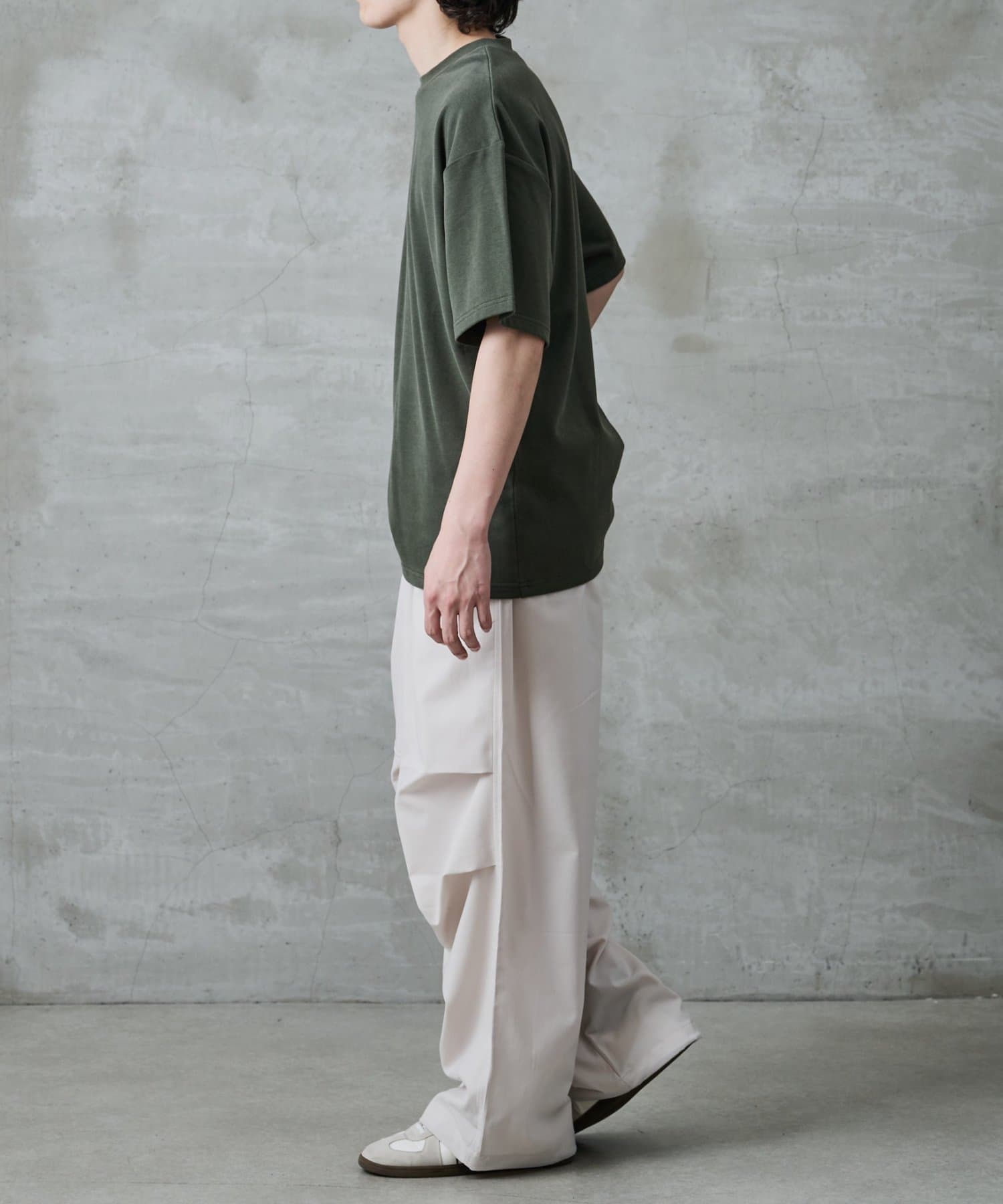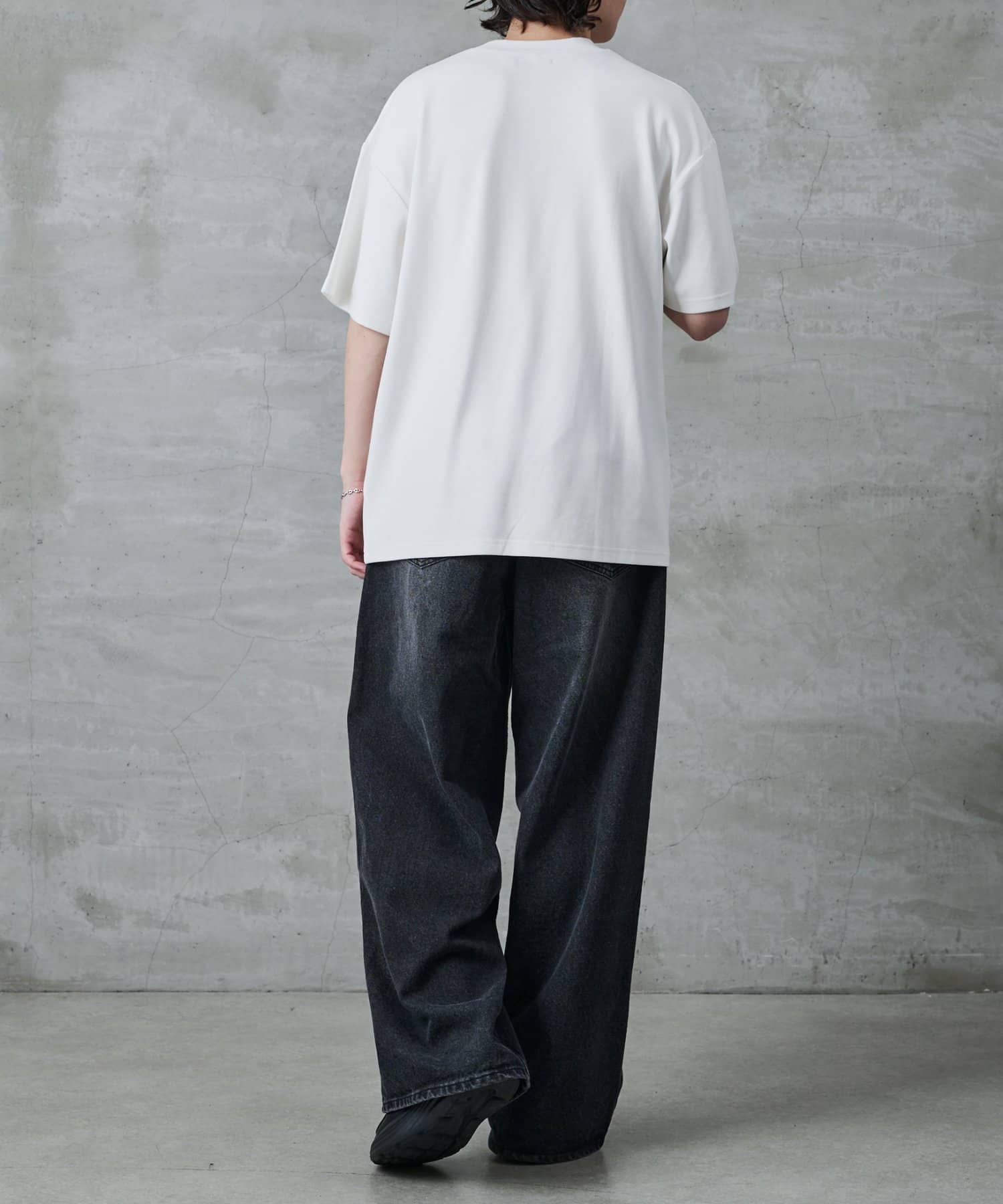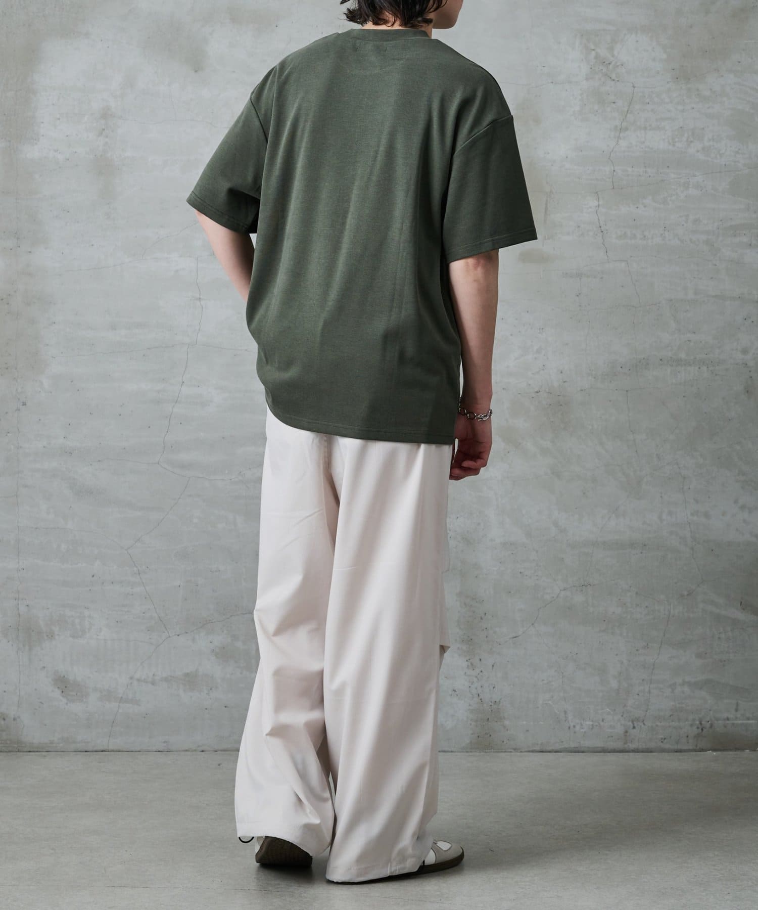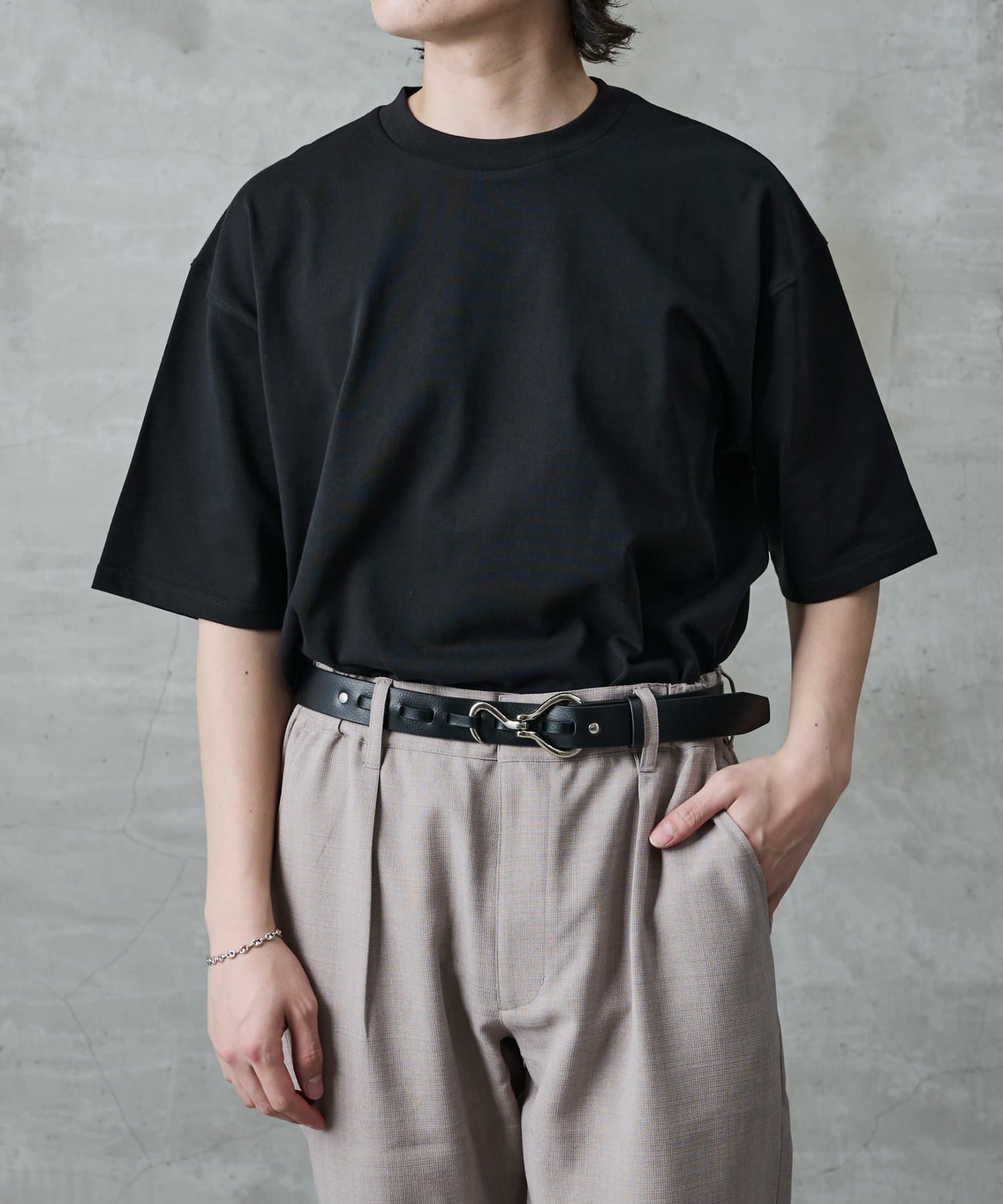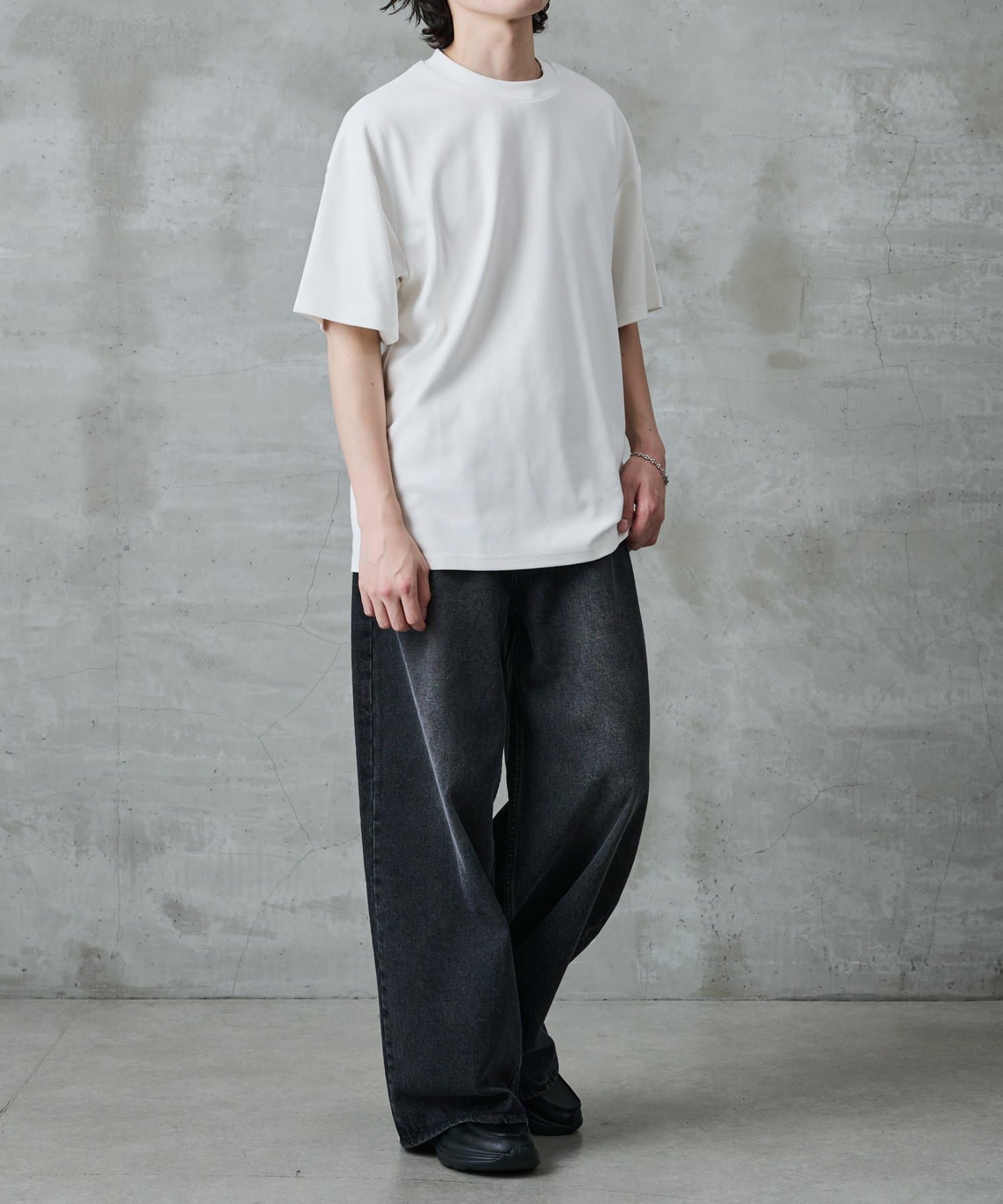 無地のTシャツなのでスラックスやデニム、フルレングスからハーフパンツまで