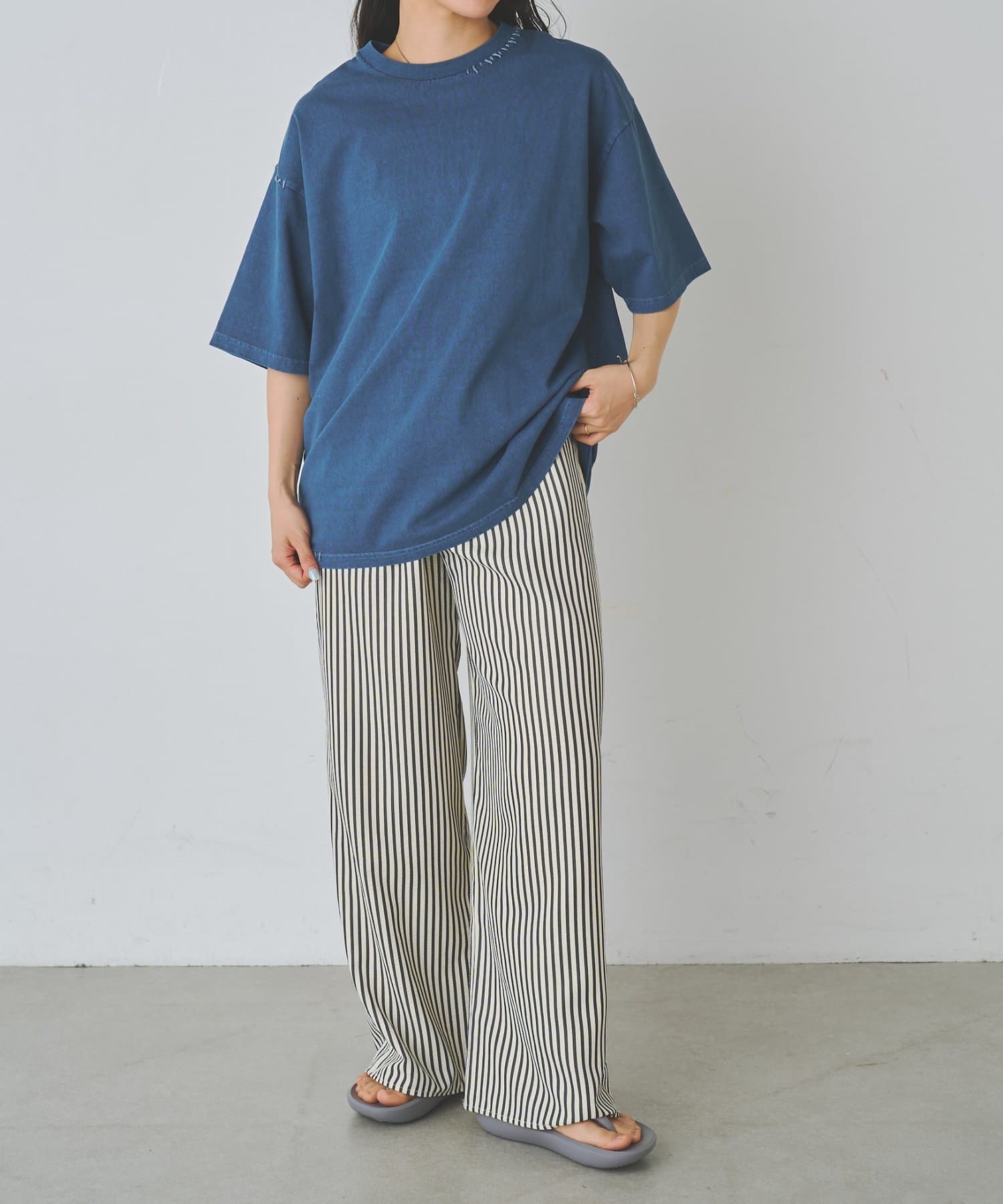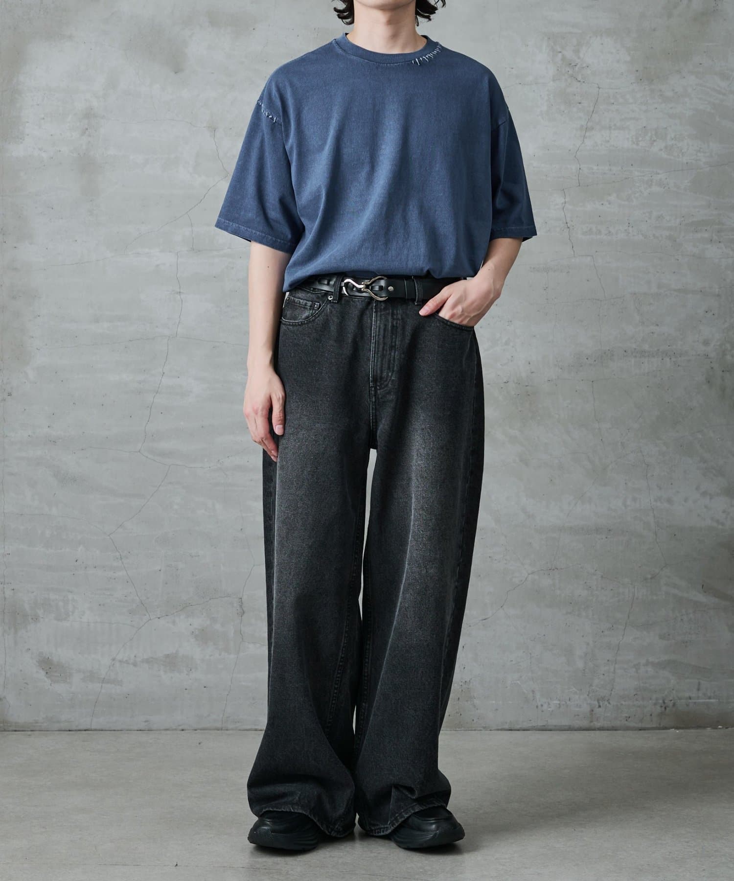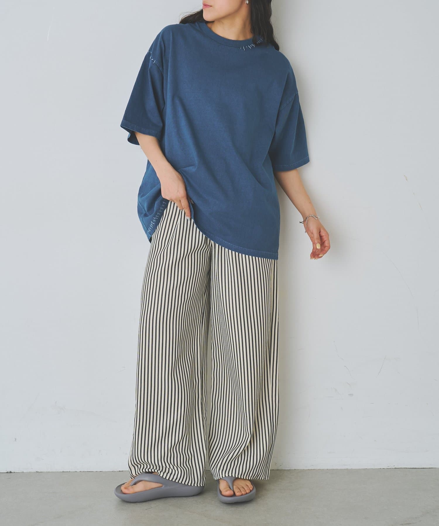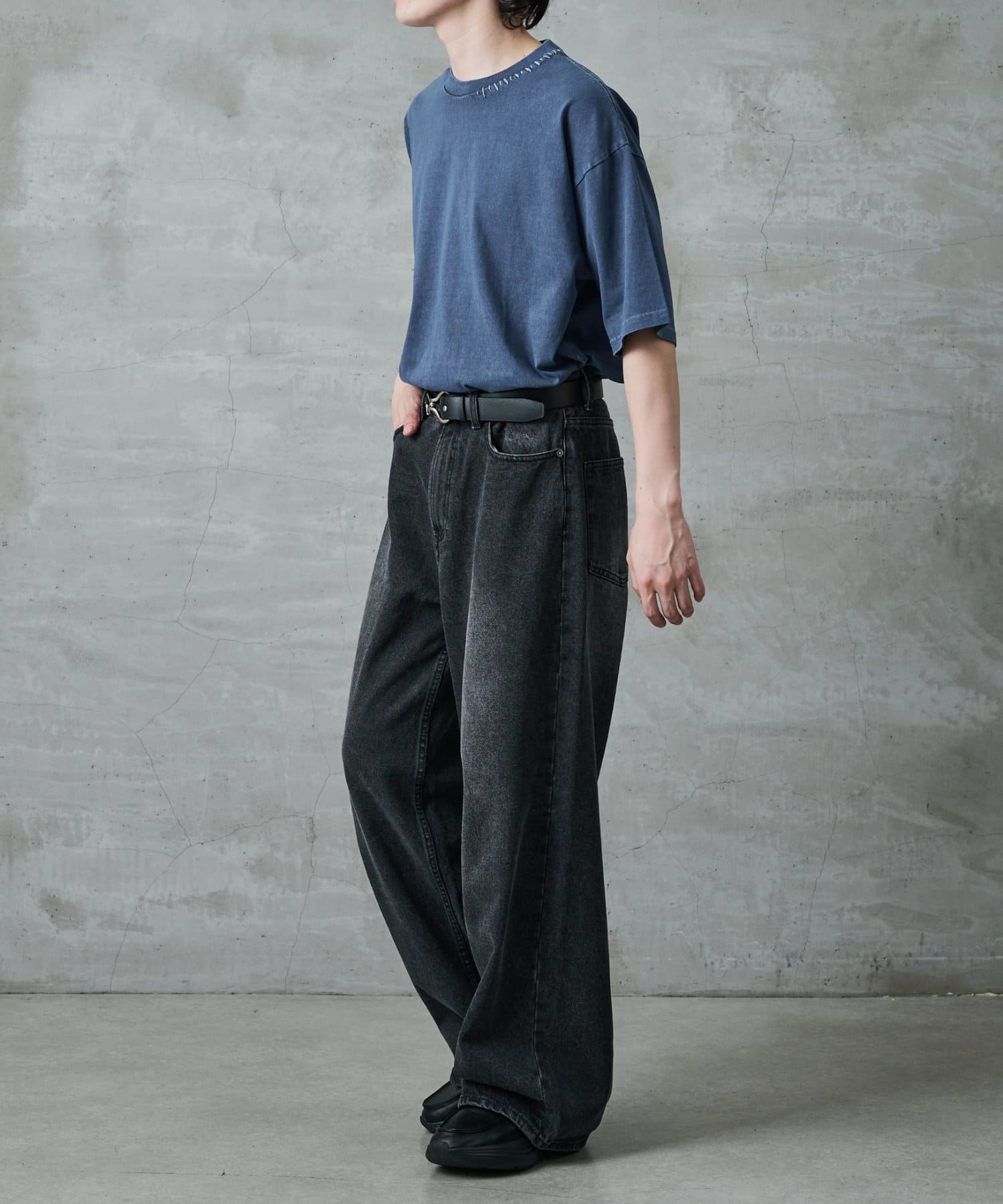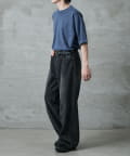 身幅にゆとりがあるボックスシルエットなのでワイドパンツに合わせる場合は
