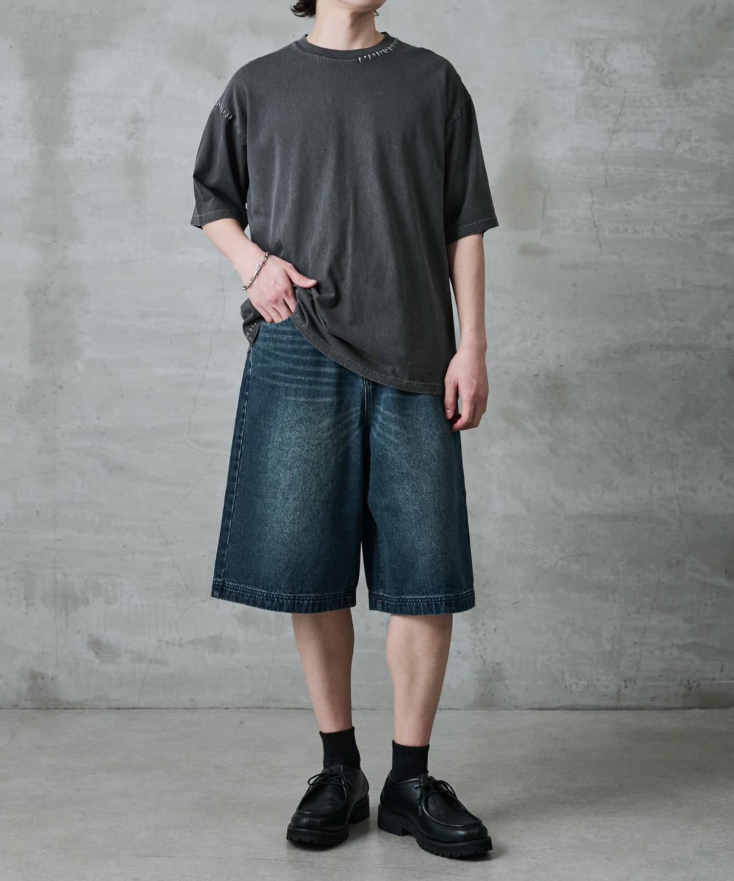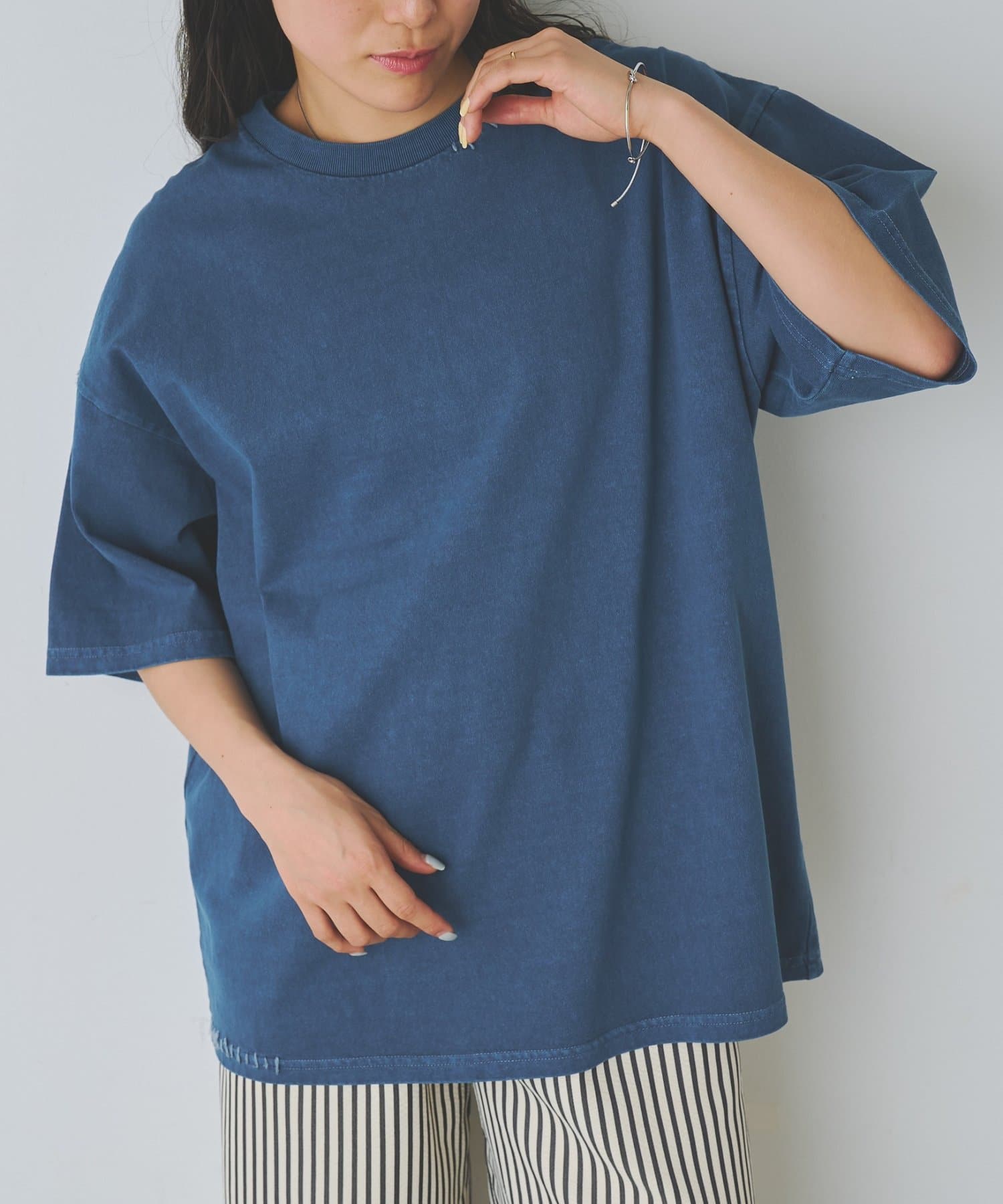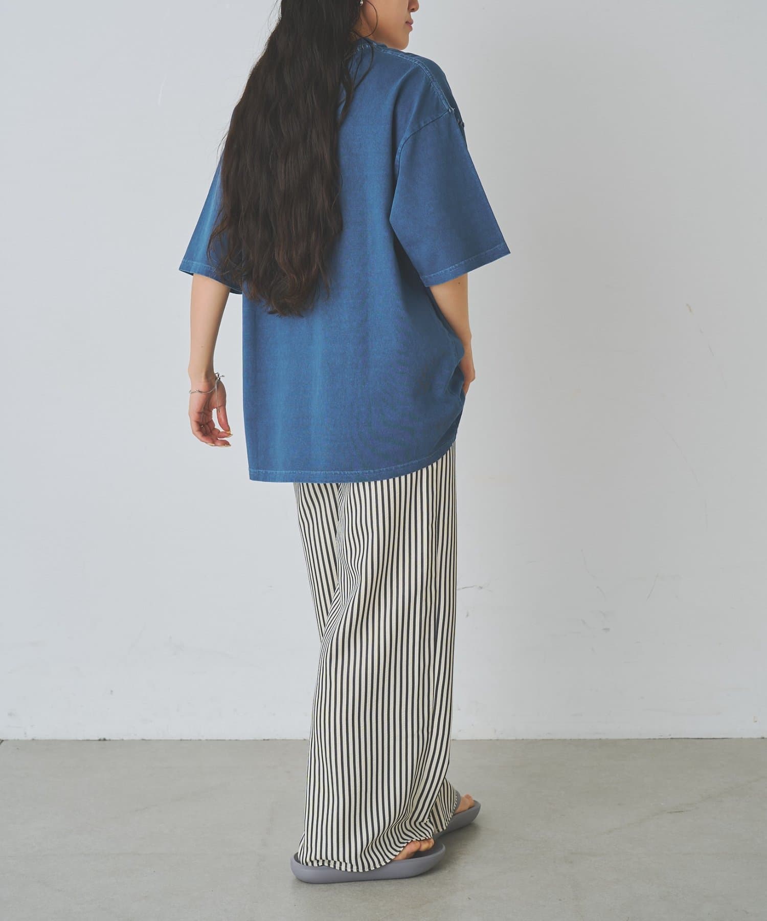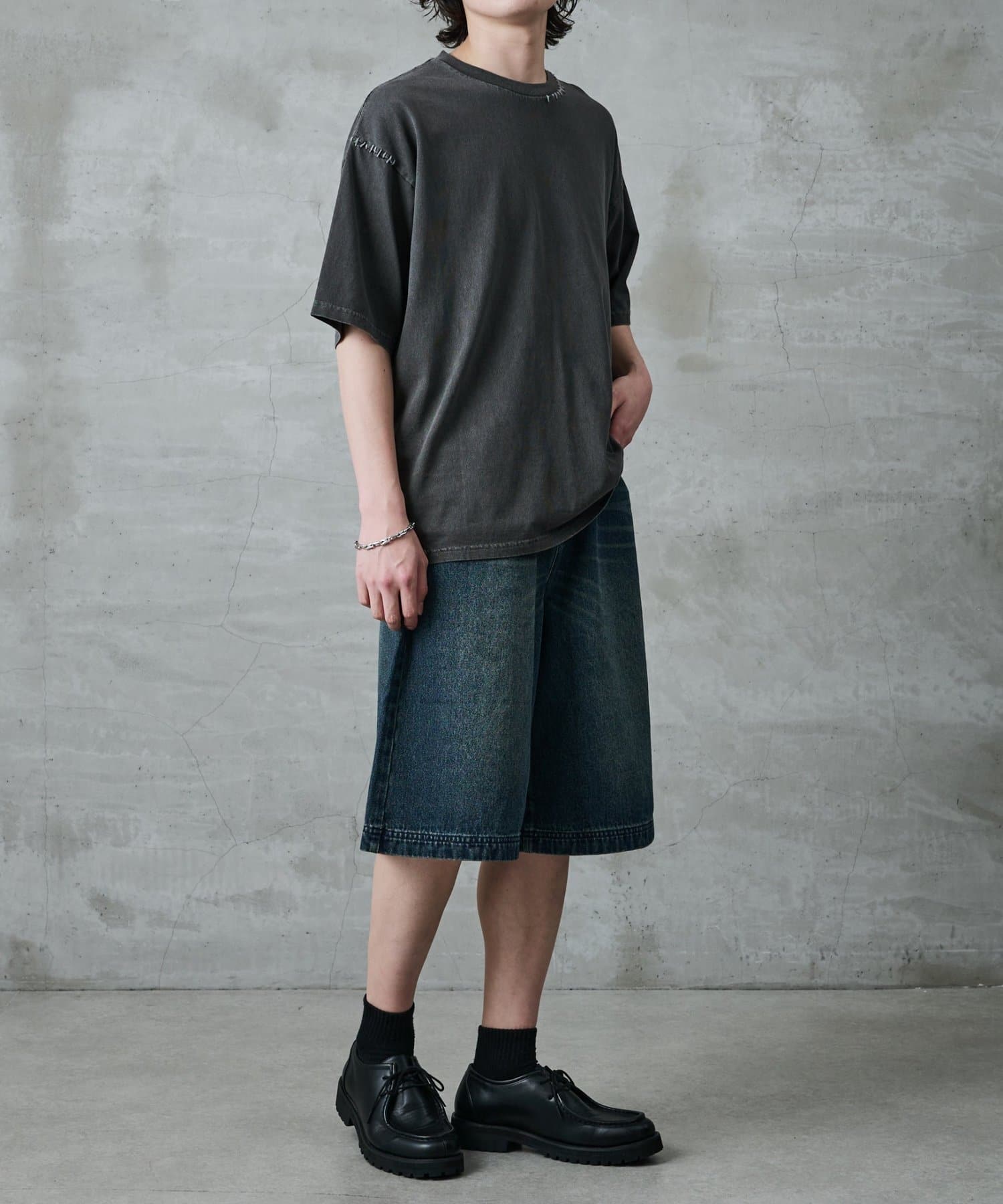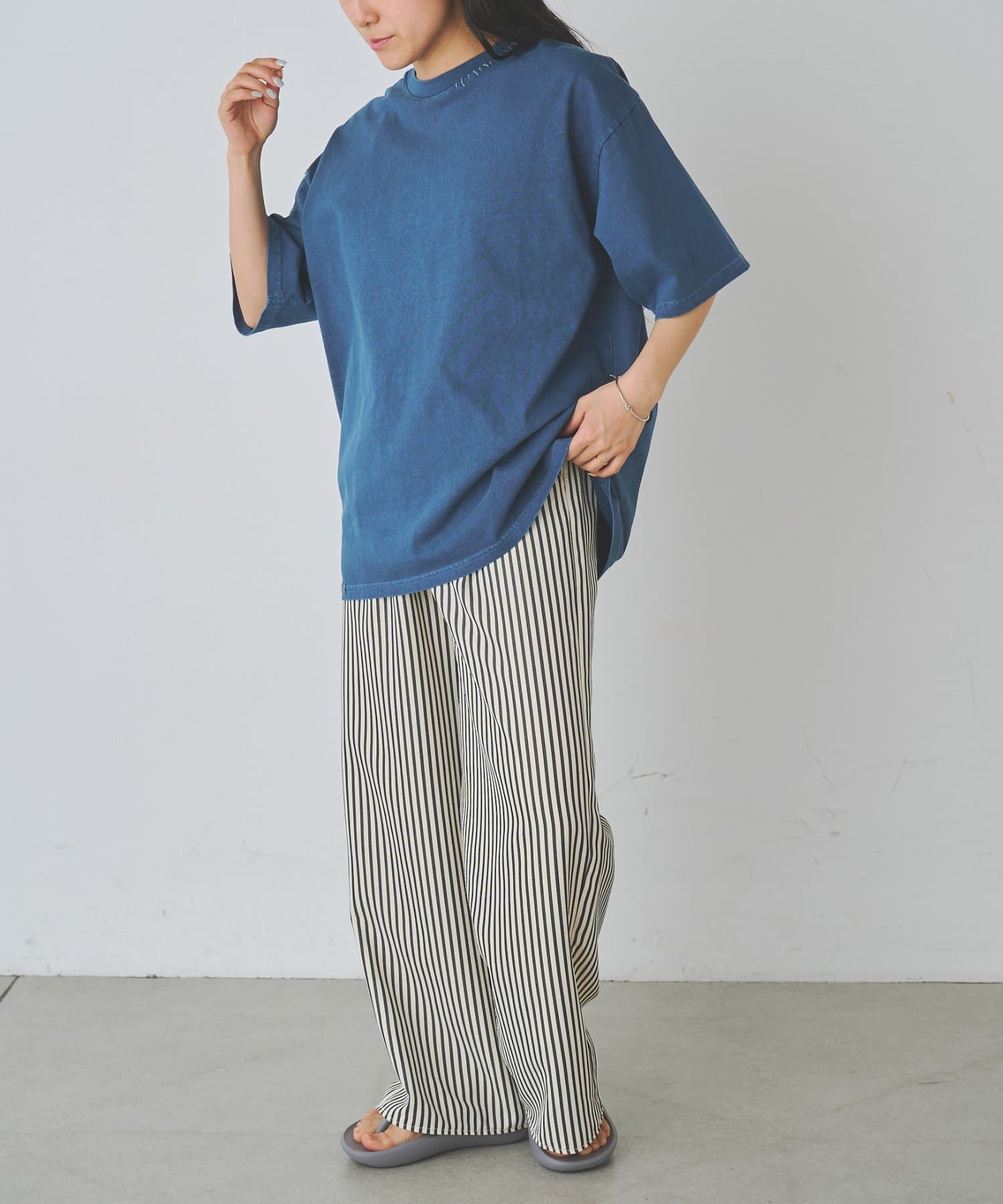 身幅にゆとりがあるボックスシルエットなのでワイドパンツに合わせる場合は
