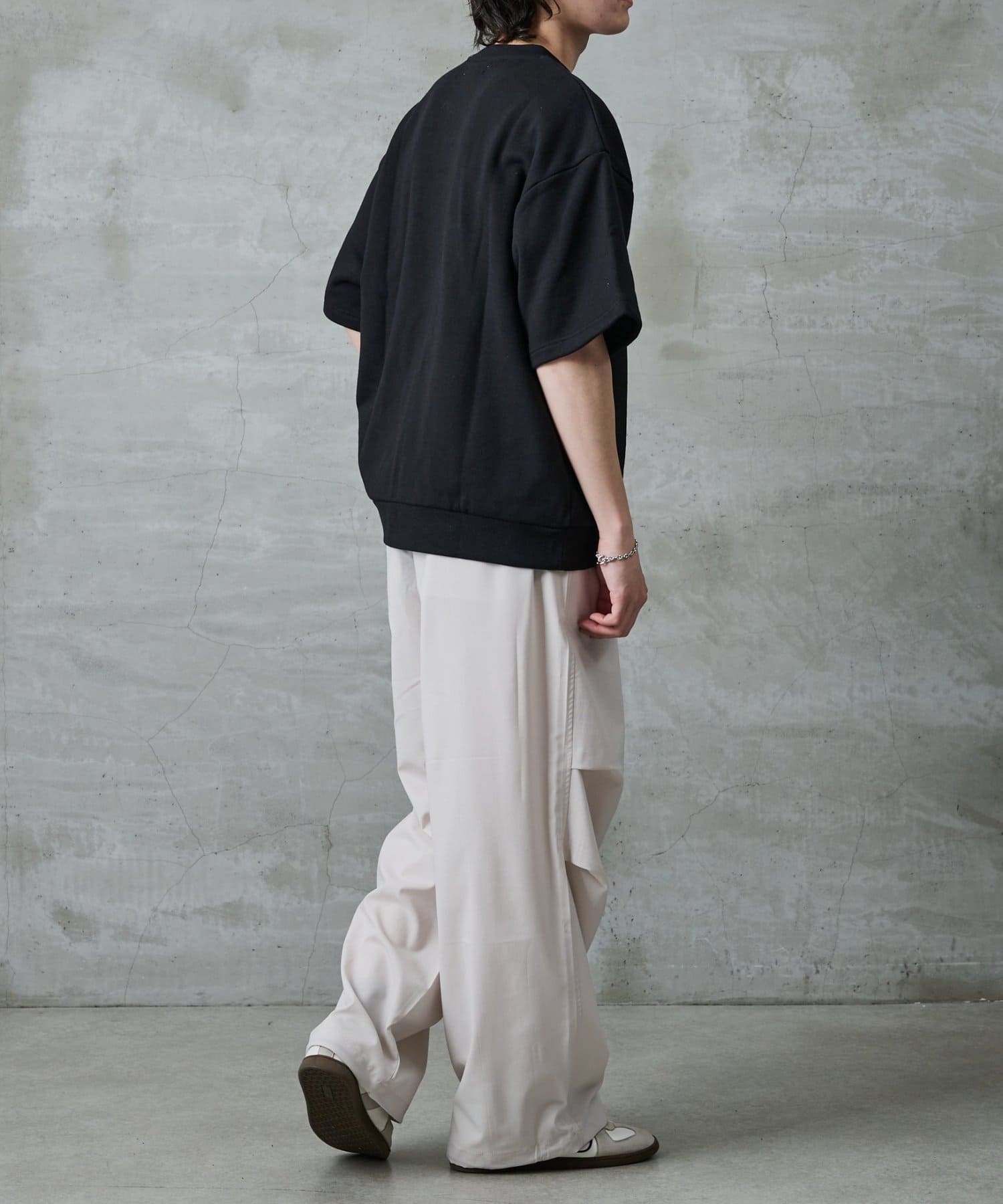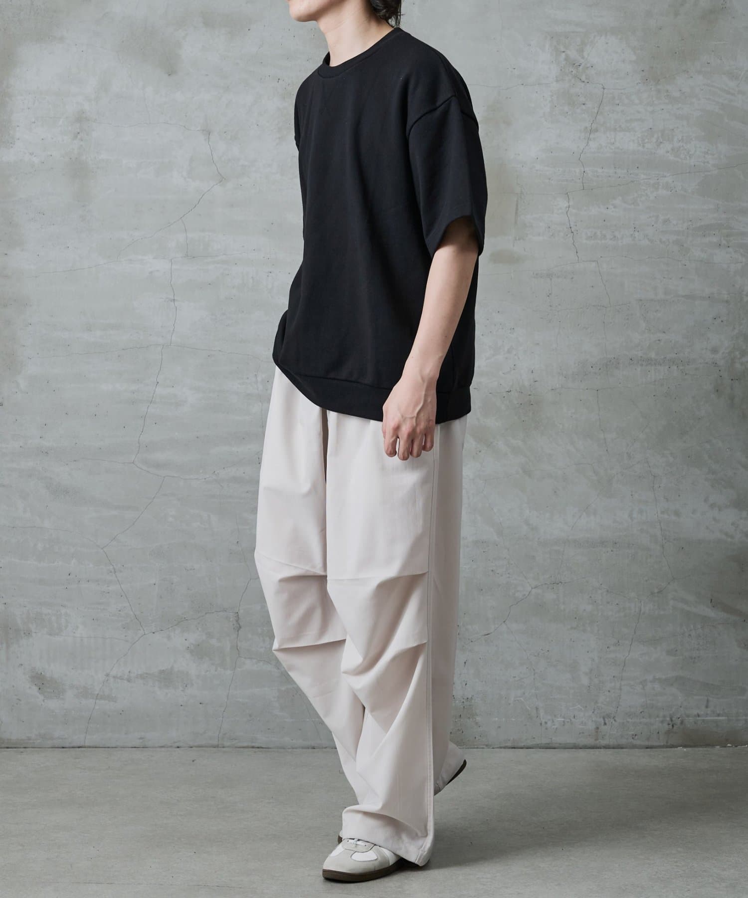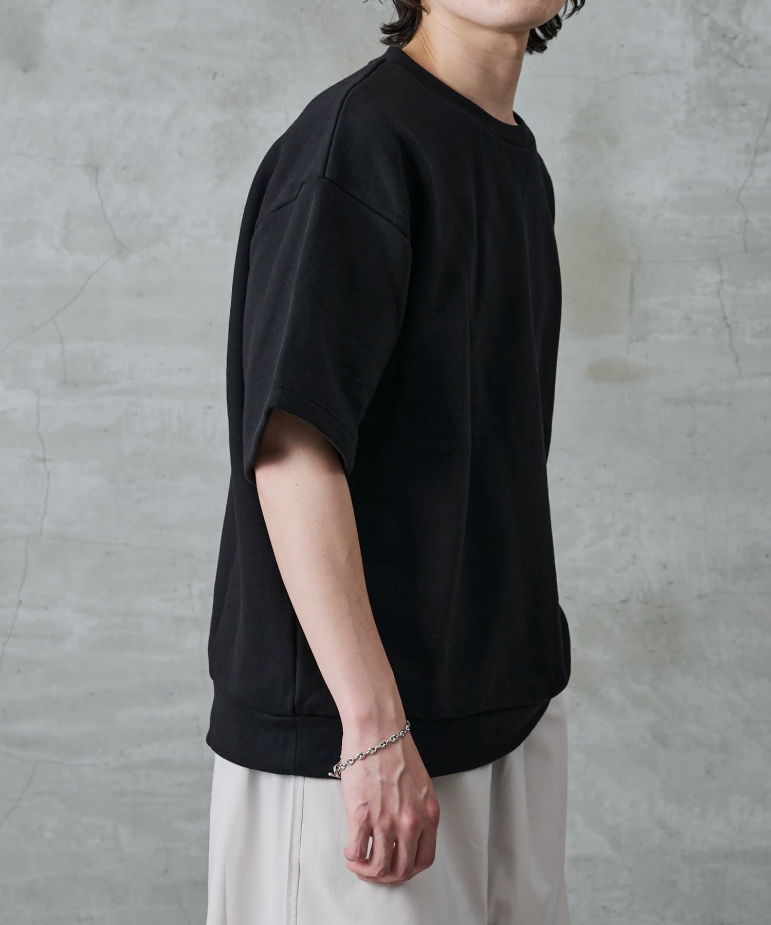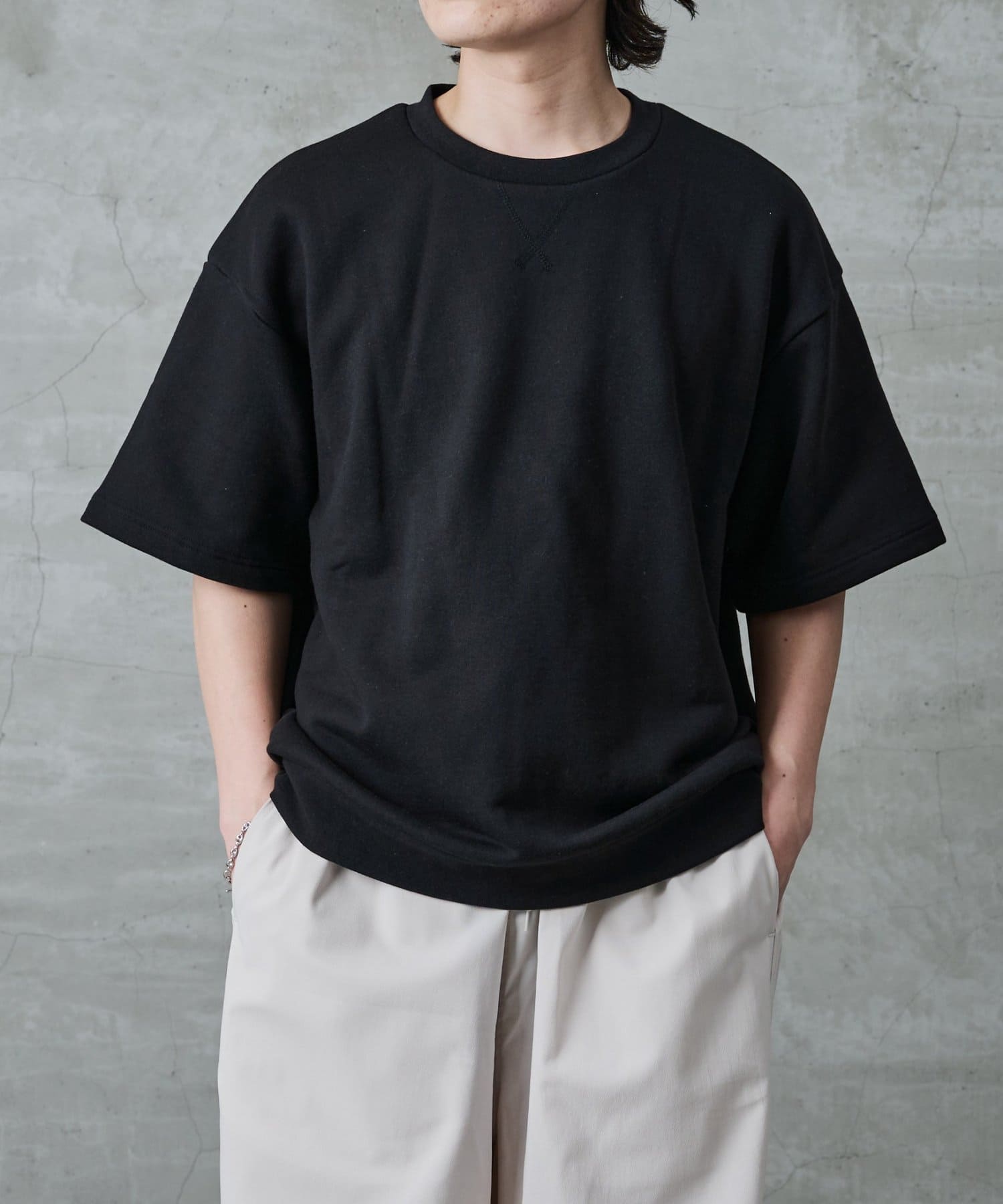 【暑い時期にも重宝するスウェット半袖クルーネック】