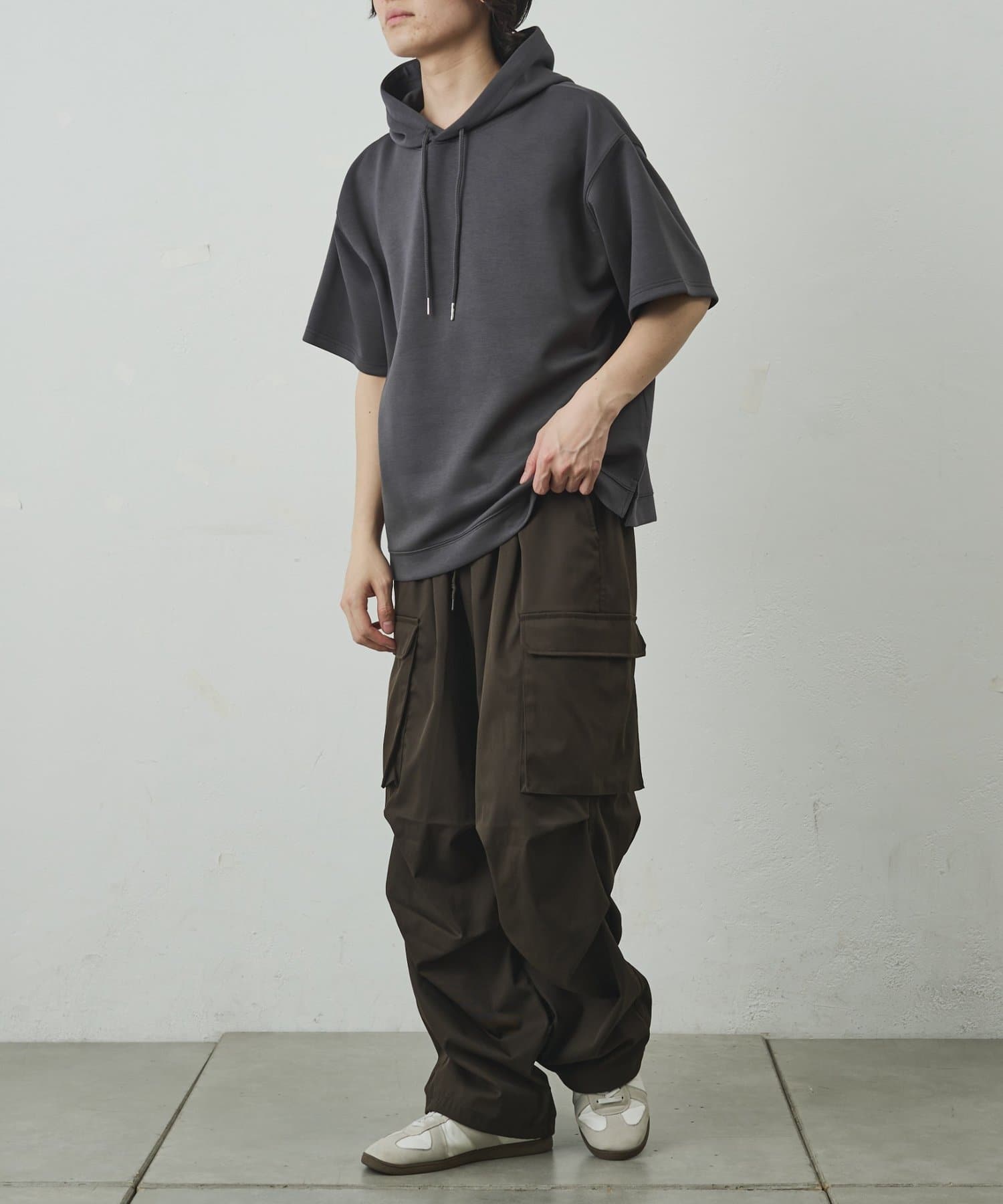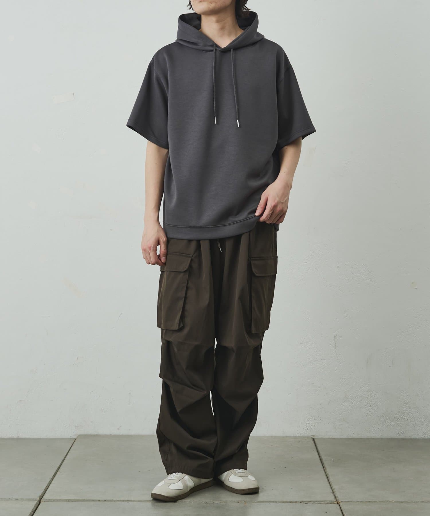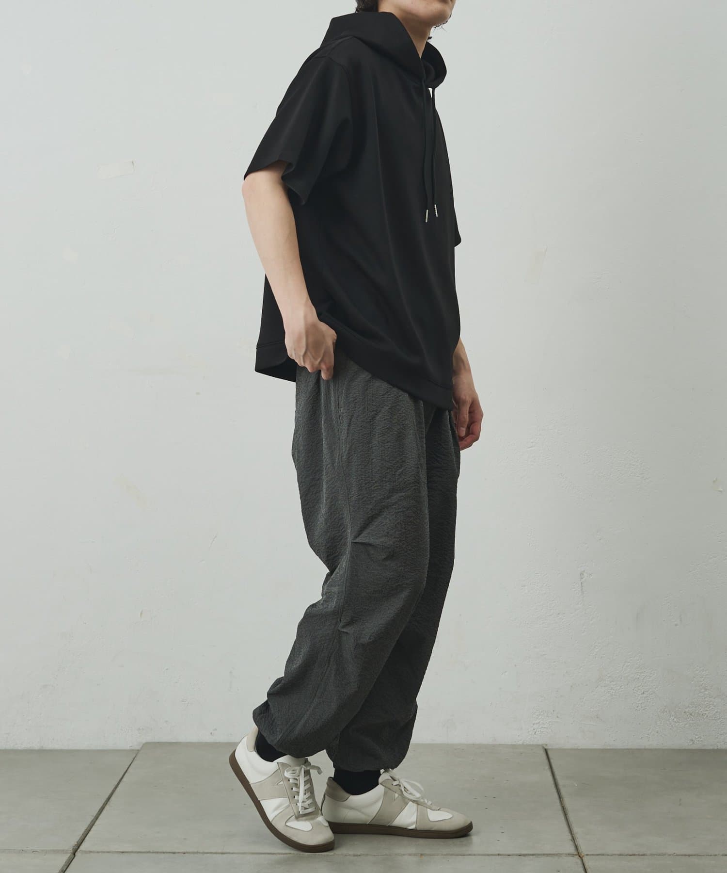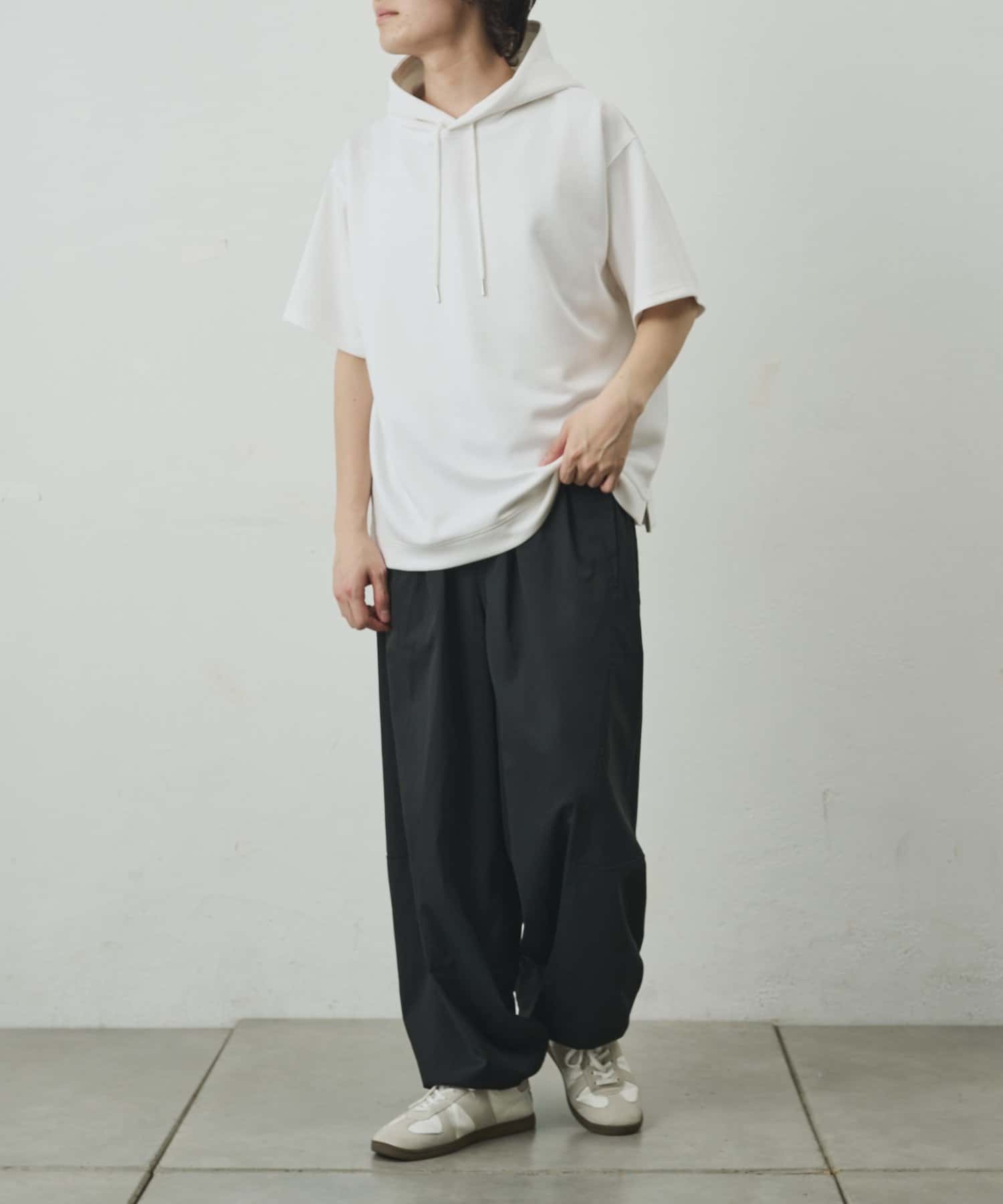 ポンチ素材はハリ感があり軽量でシワにもなりにくいイージーケアな素材。