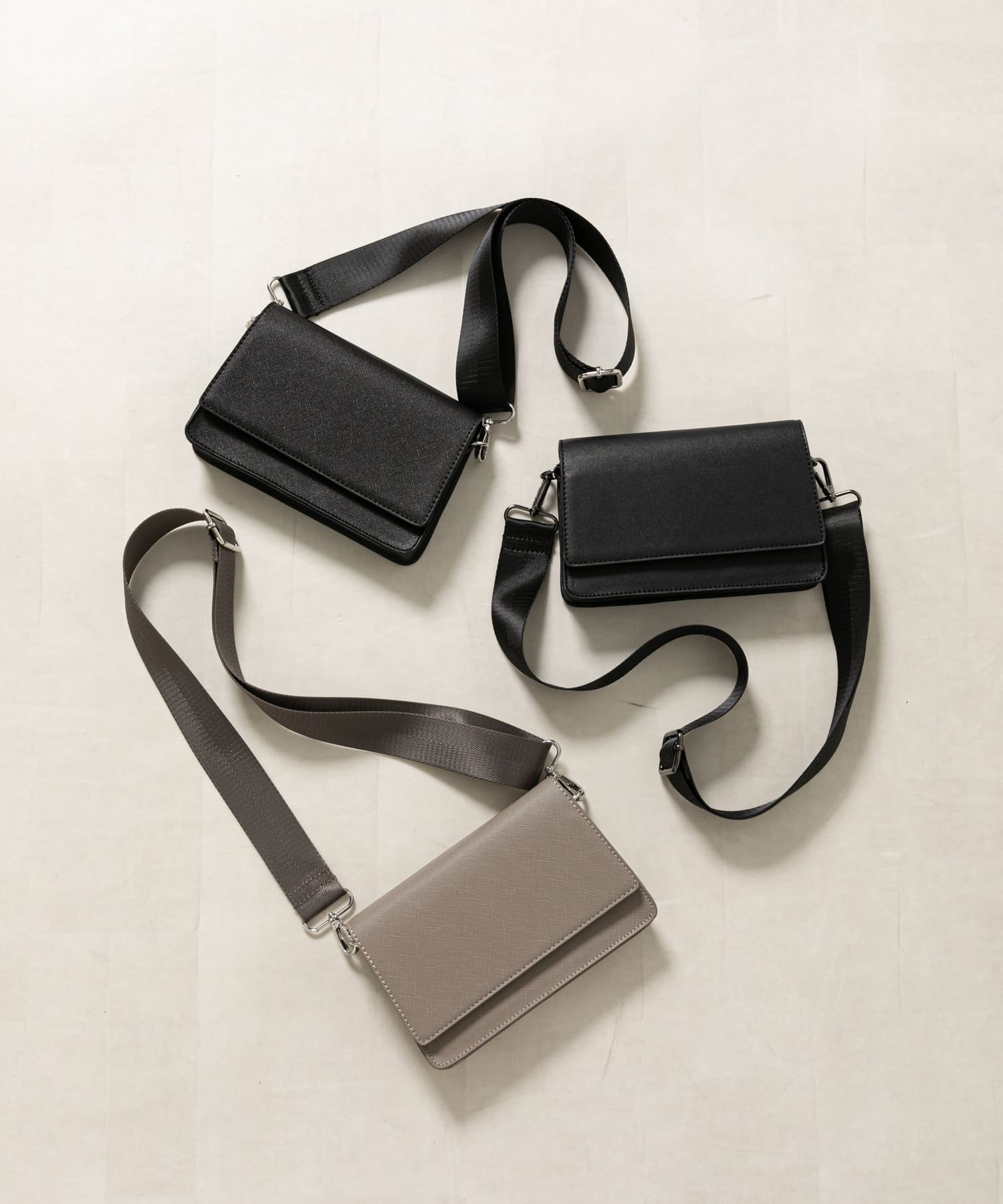 開け閉めが簡単にできるマグネットタイプのフラップショルダーバッグです。