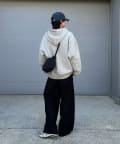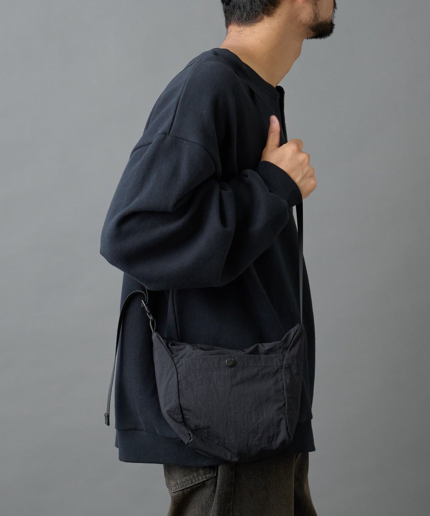 このショルダーバッグはその特性を活かしつつ、よりしなやかで柔らかな手触りを持つように加工されたソフトナイロンを使用しております。