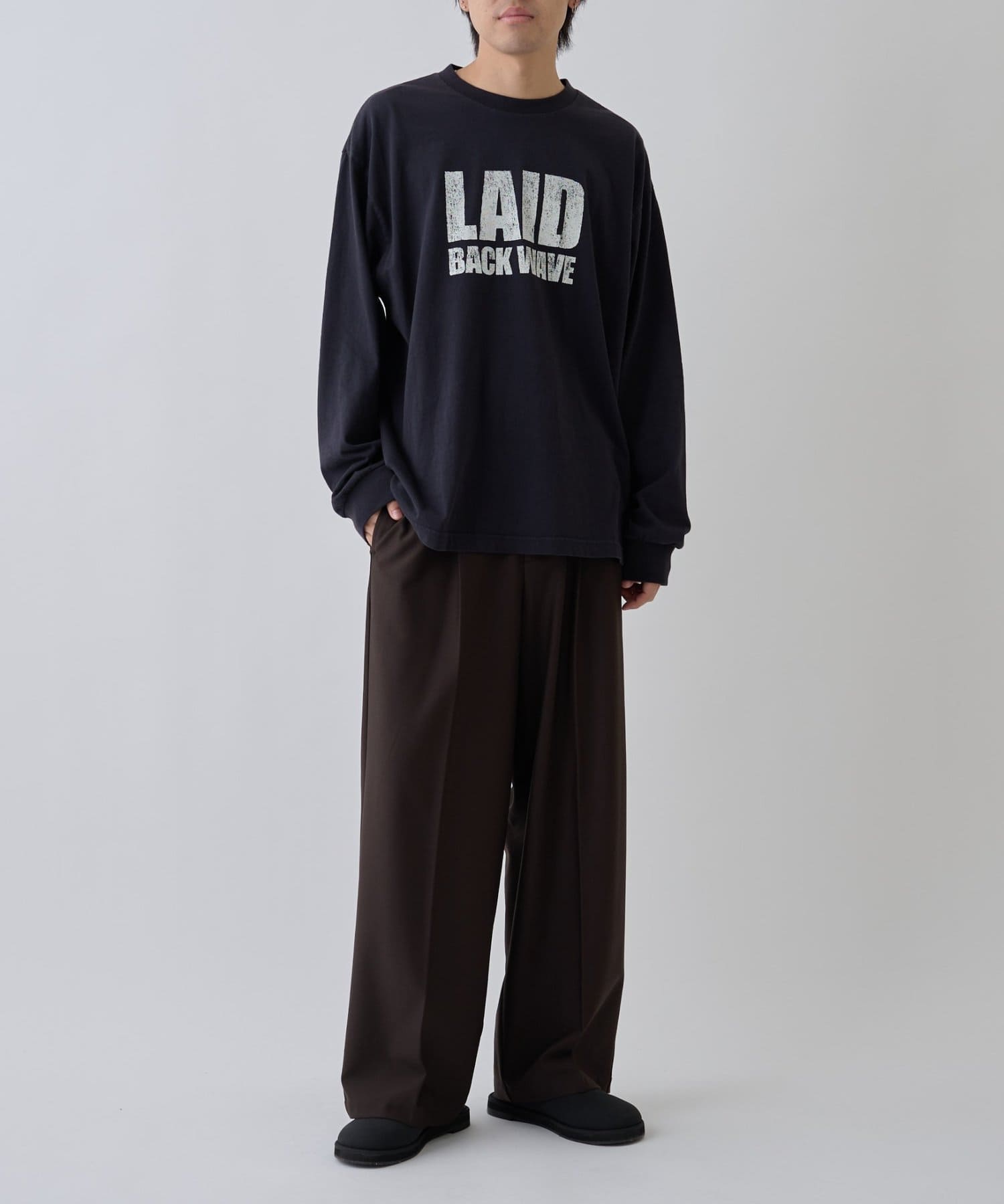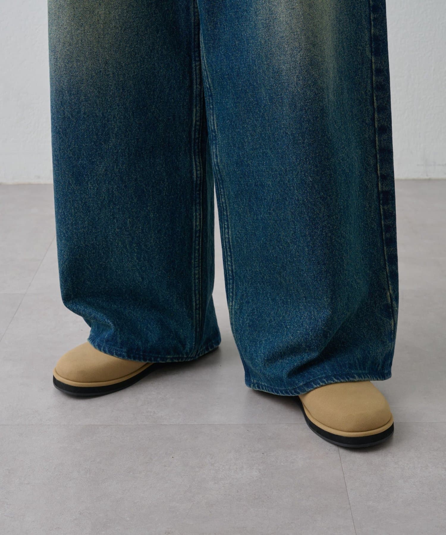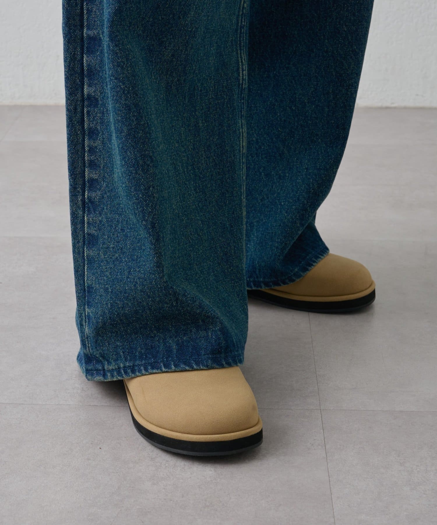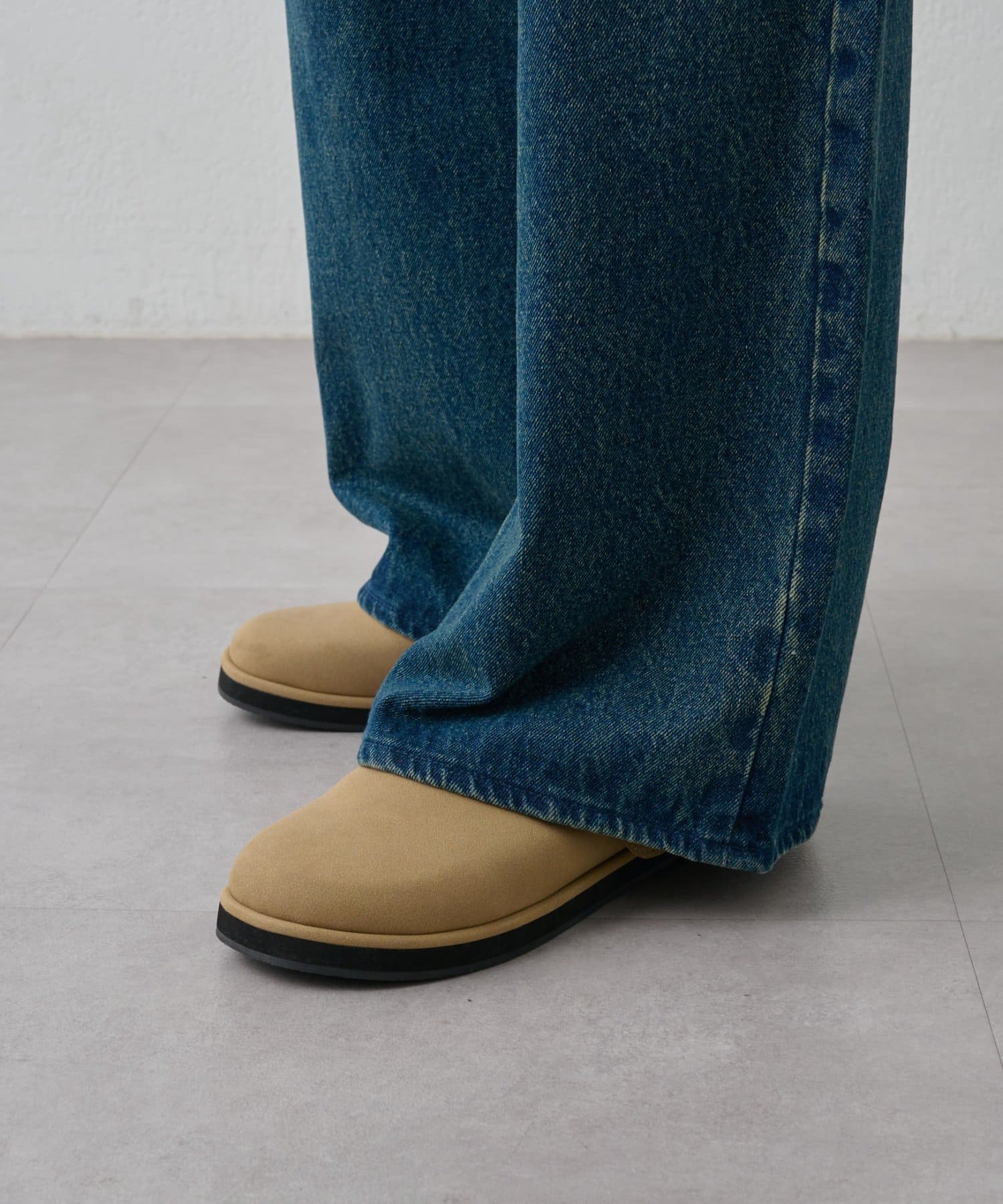 トレンドのスエードライク素材なので上足元をさりげなく格上げします。