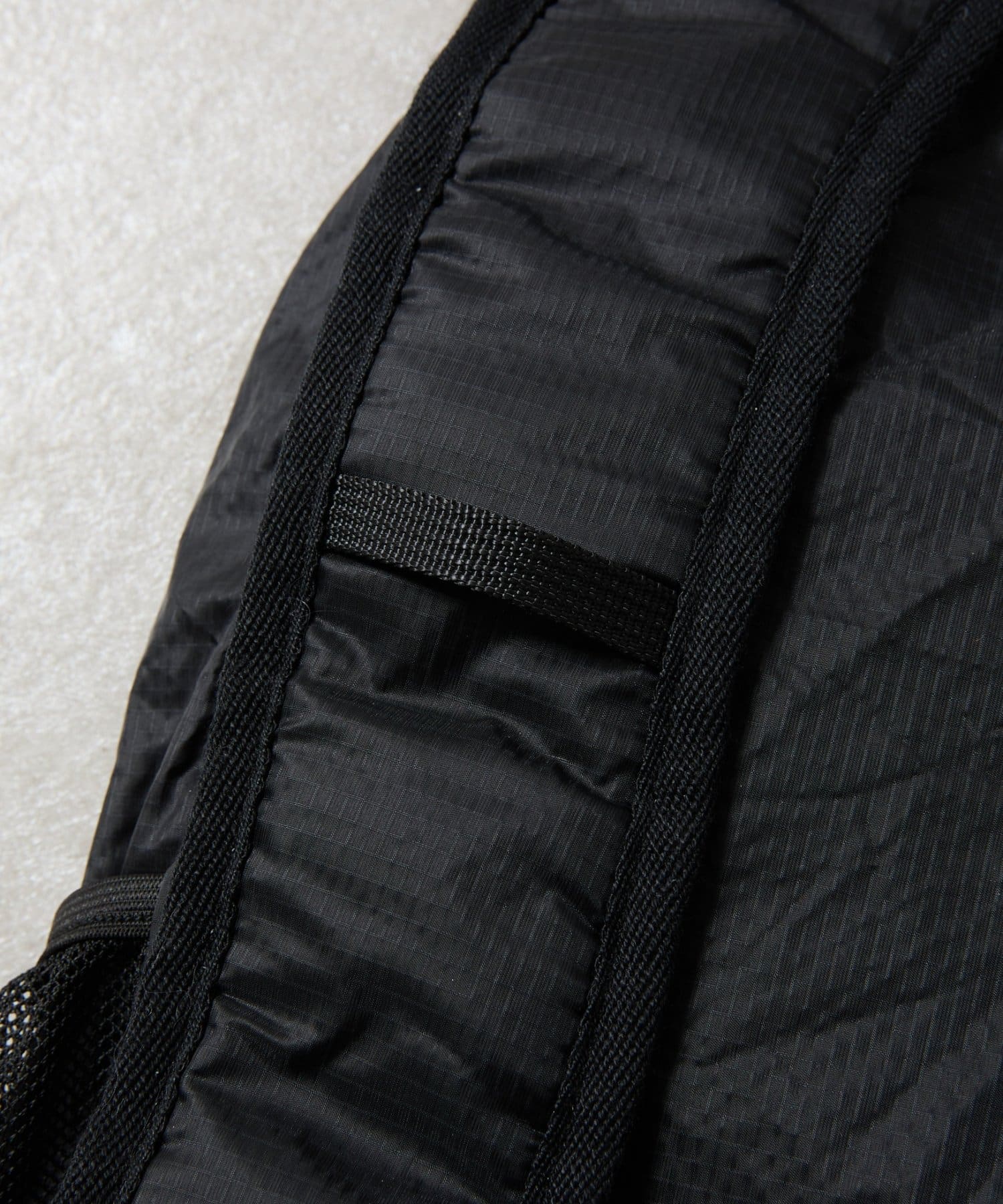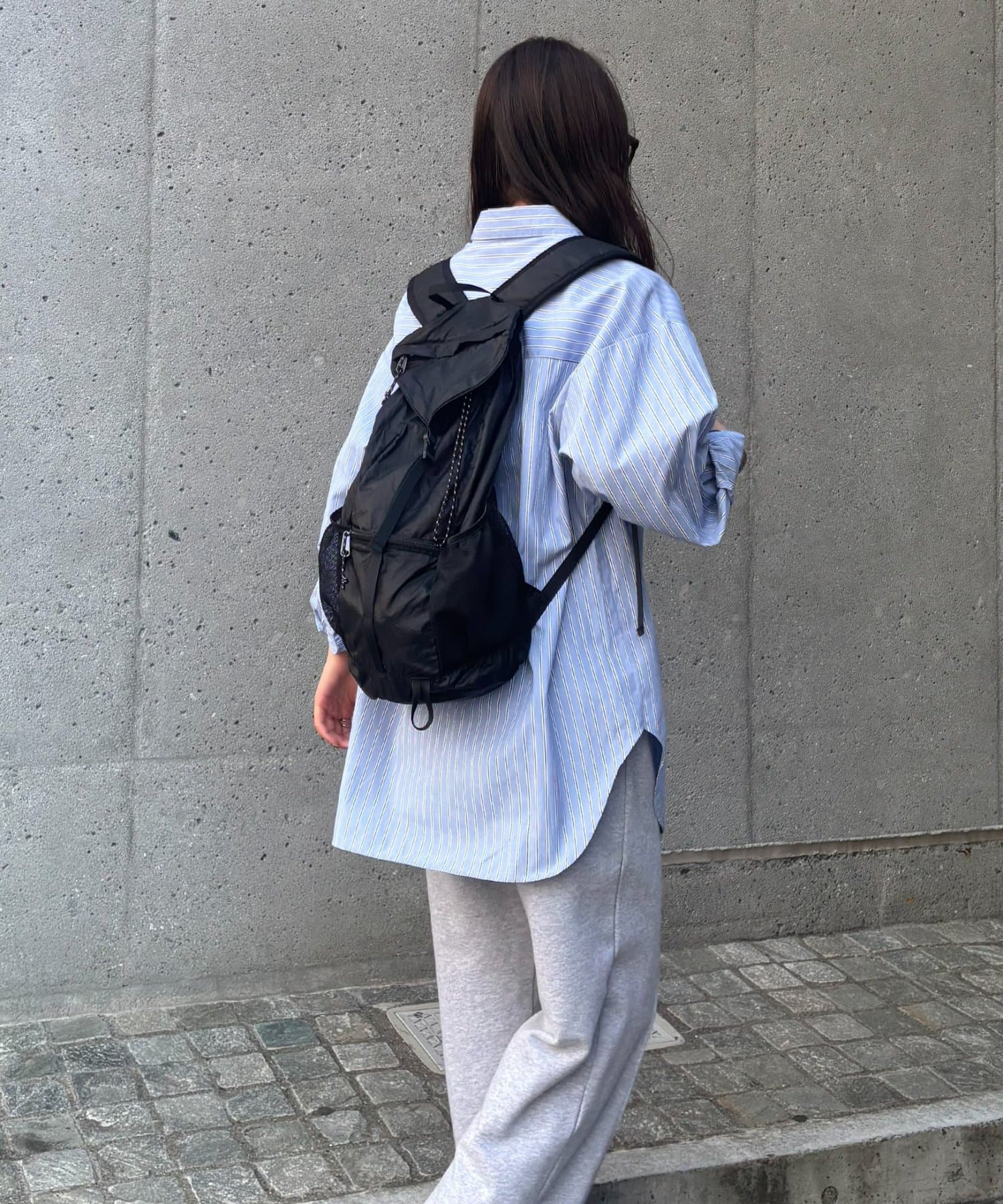 ナイロン100%の軽量素材を使用しており、長時間の持ち運びも快適なライトバックパック。