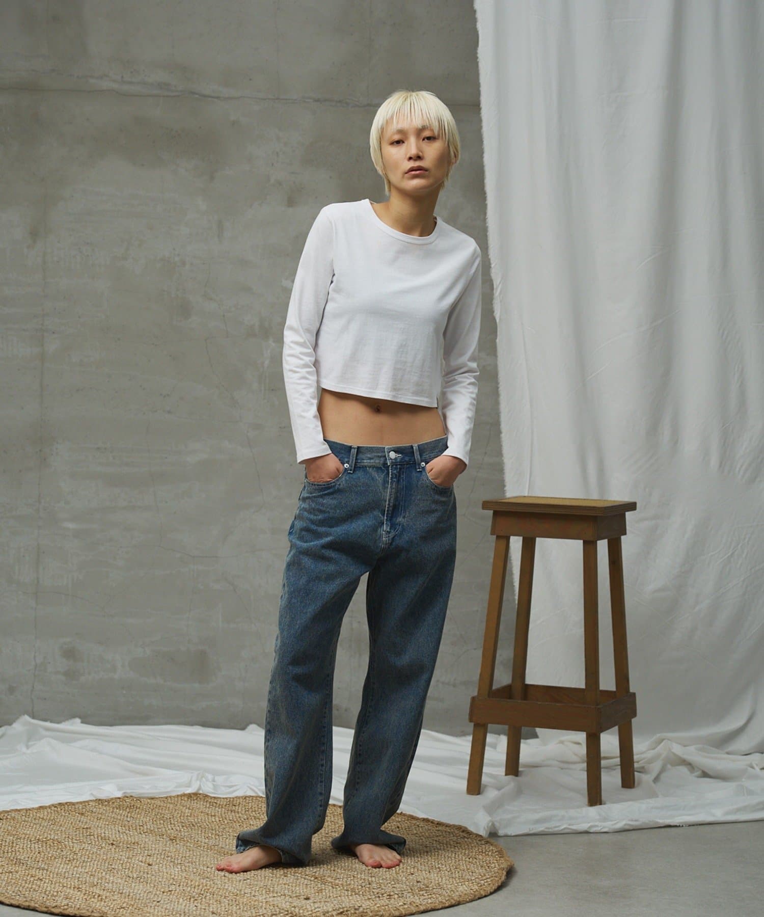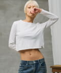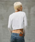 1枚でもインナー使いでもデイリーに使っ ていただきやすいように、シンプルながら洗練されたトレンドのコンパ クトなフォルムに仕上げ、裾のブランドタグのワンポイントがアイコニックな一着に仕上がりました。