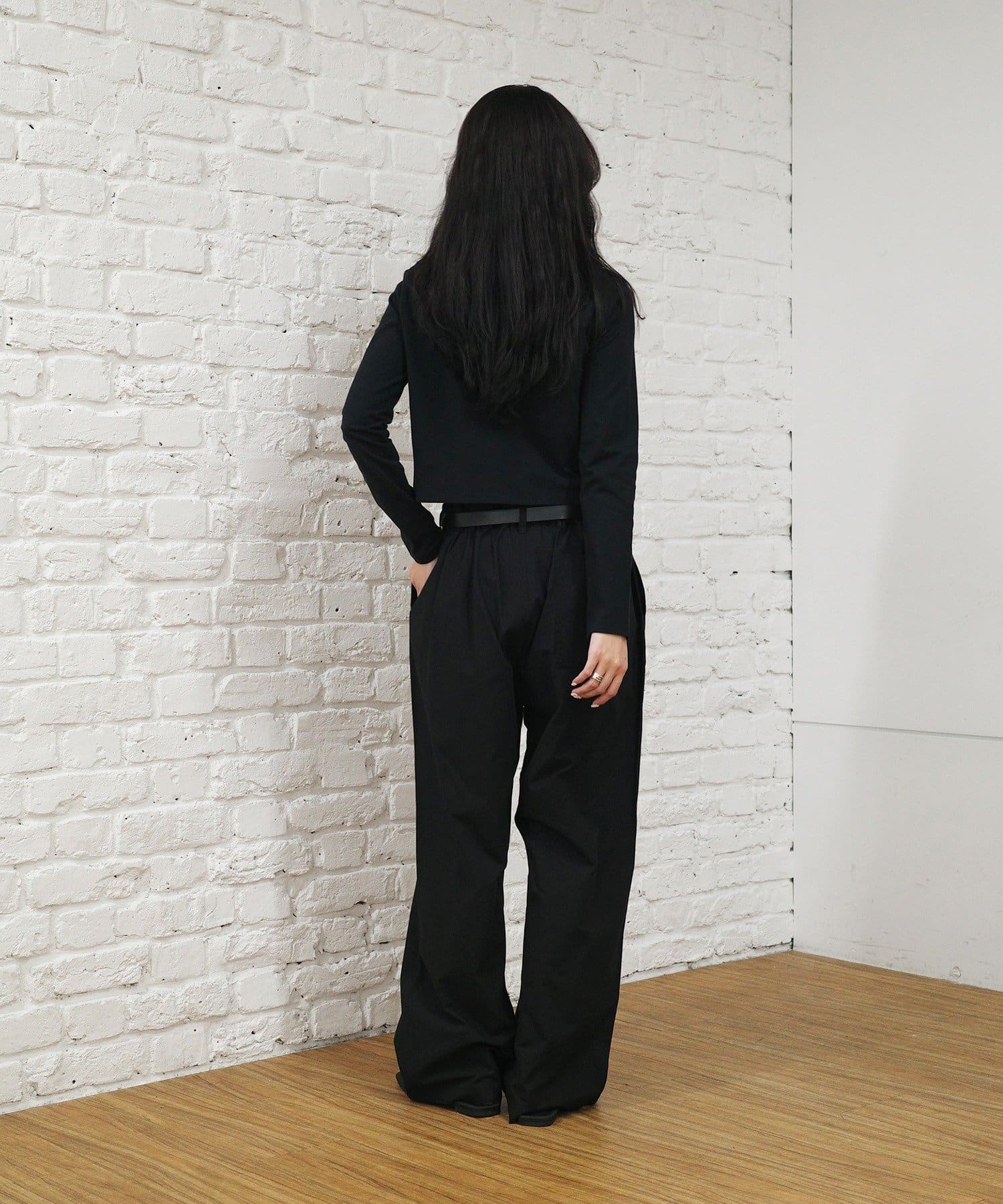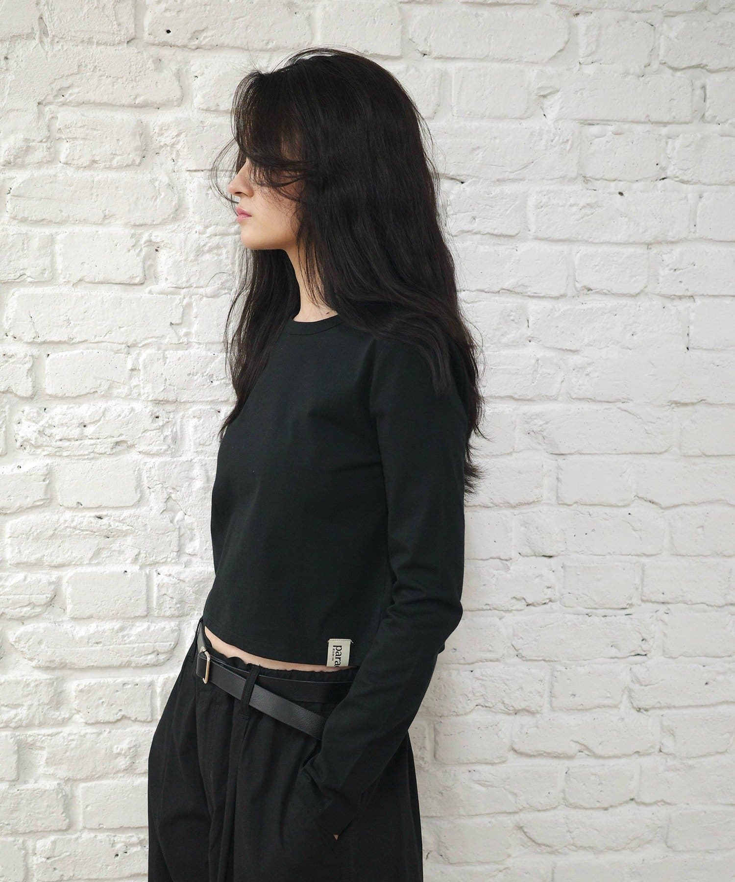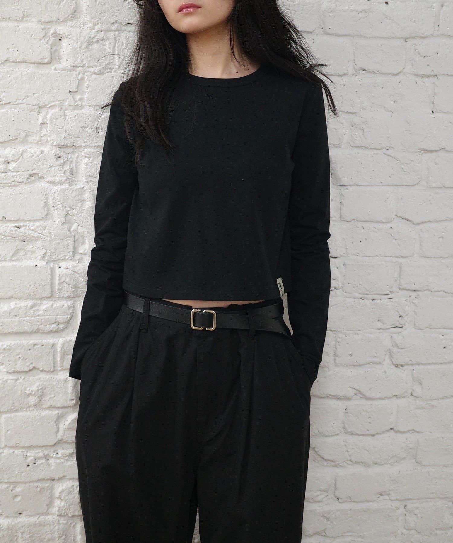 1枚でもインナー使いでもデイリーに使っ ていただきやすいように、シンプルながら洗練されたトレンドのコンパ クトなフォルムに仕上げ、裾のブランドタグのワンポイントがアイコニックな一着に仕上がりました。