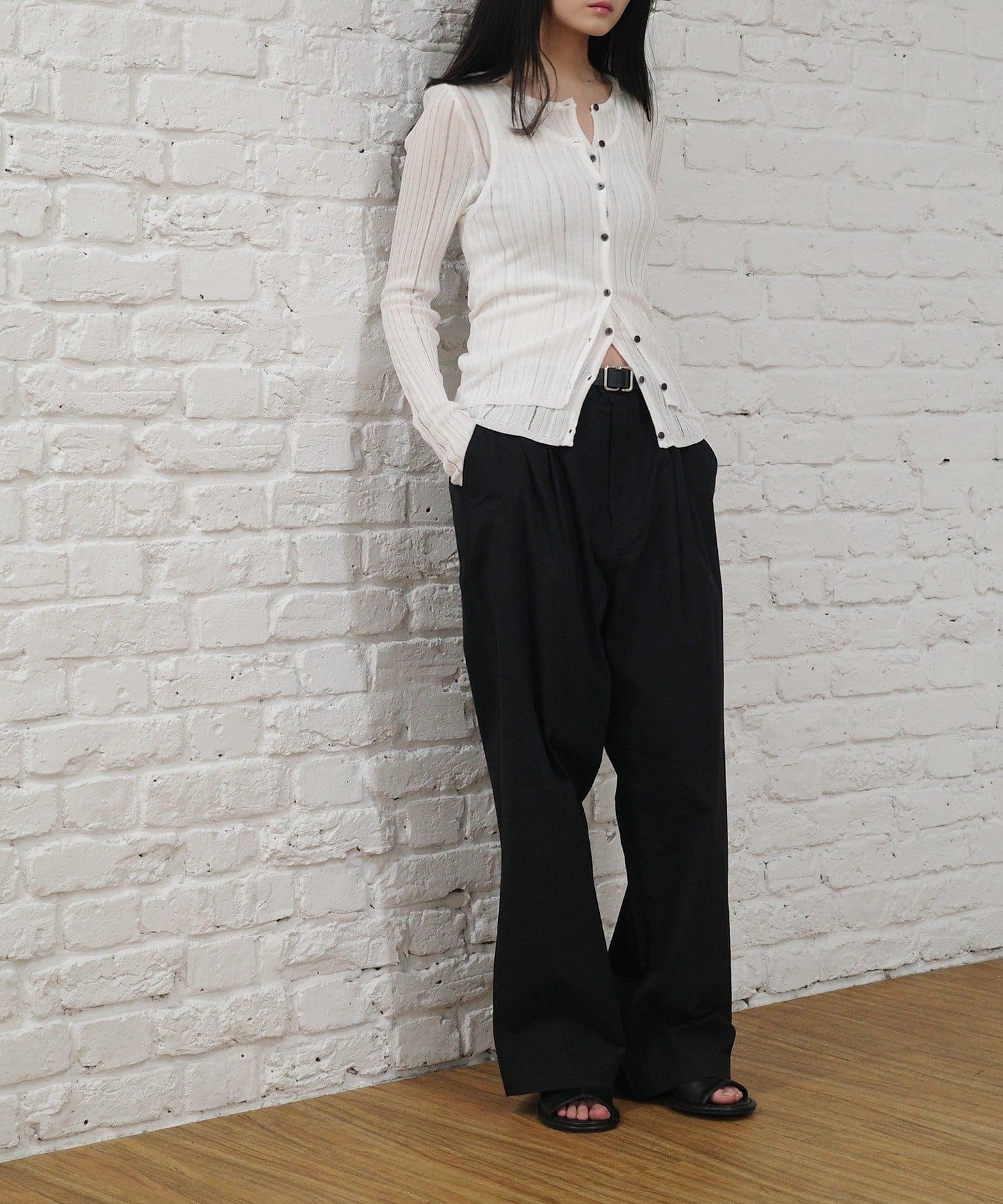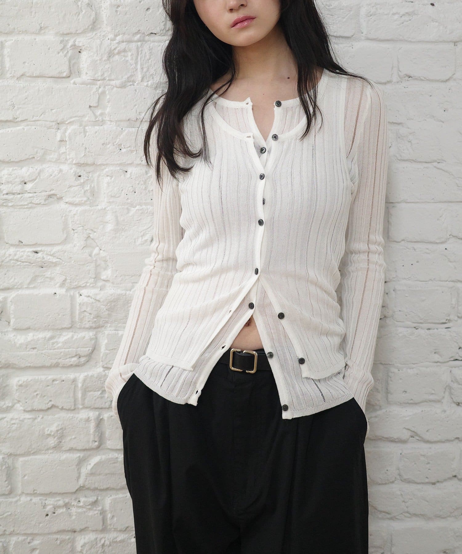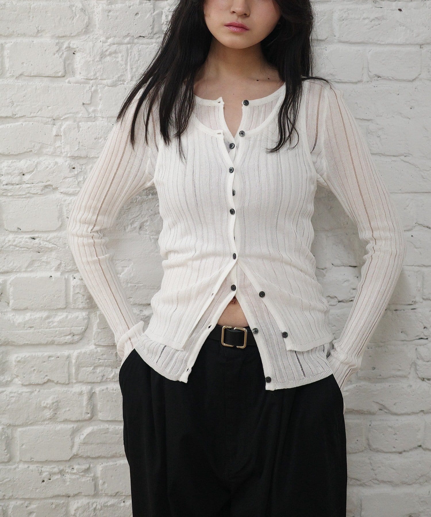 リブの透け感とコンパクトなシルエットが女性らしい雰囲気をプラスしてくれる一枚。