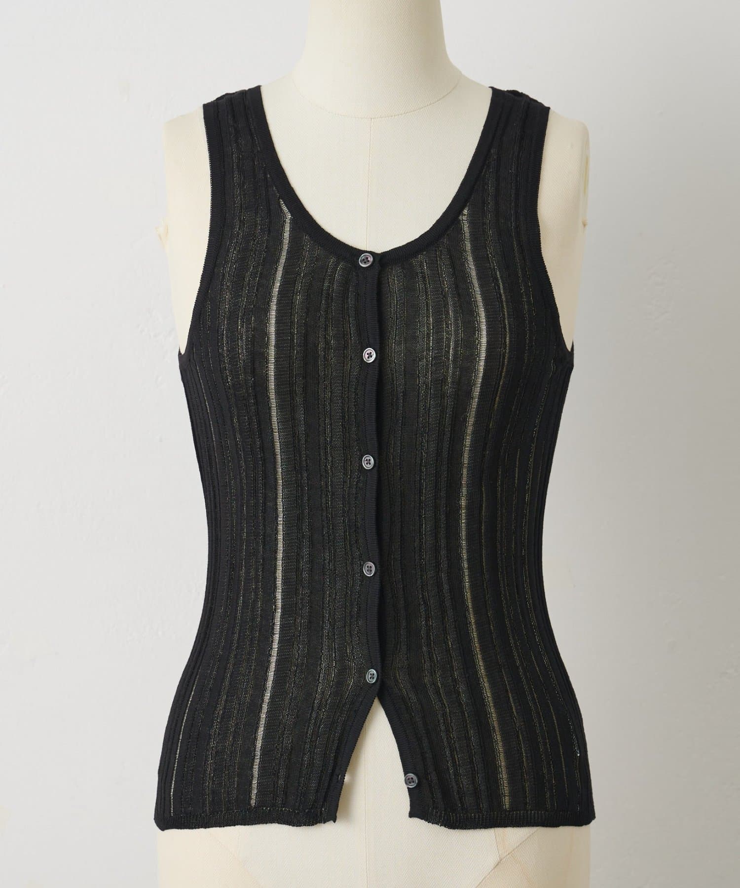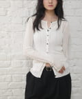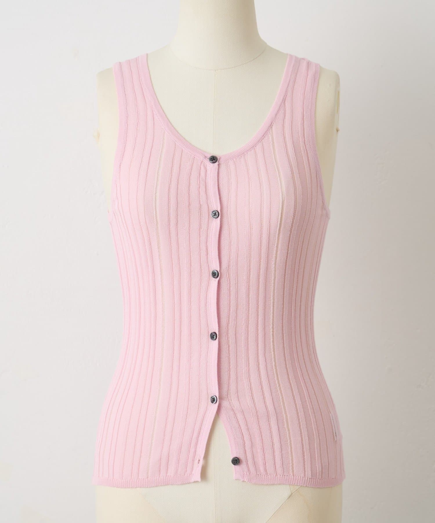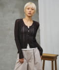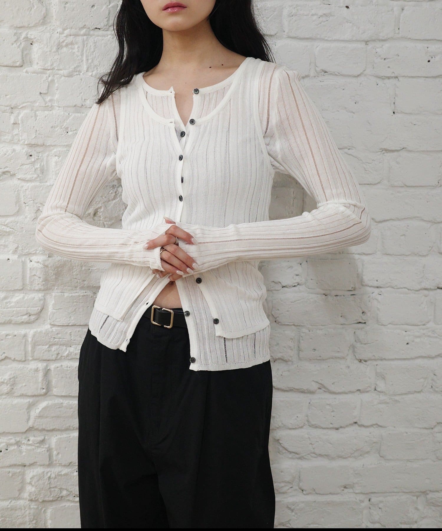 リブの透け感とコンパクトなシルエットが女性らしい雰囲気をプラスしてくれる一枚。