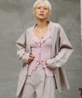 同生地のカーディガンと重ねてアンサンブルのように着こなしたり、それぞれ別に着ても使用できる汎用性の高いアイテムです。