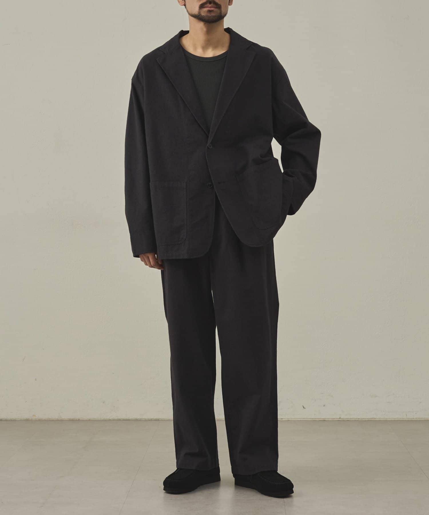 リラックス感がありつつ品よく着られる一着です。