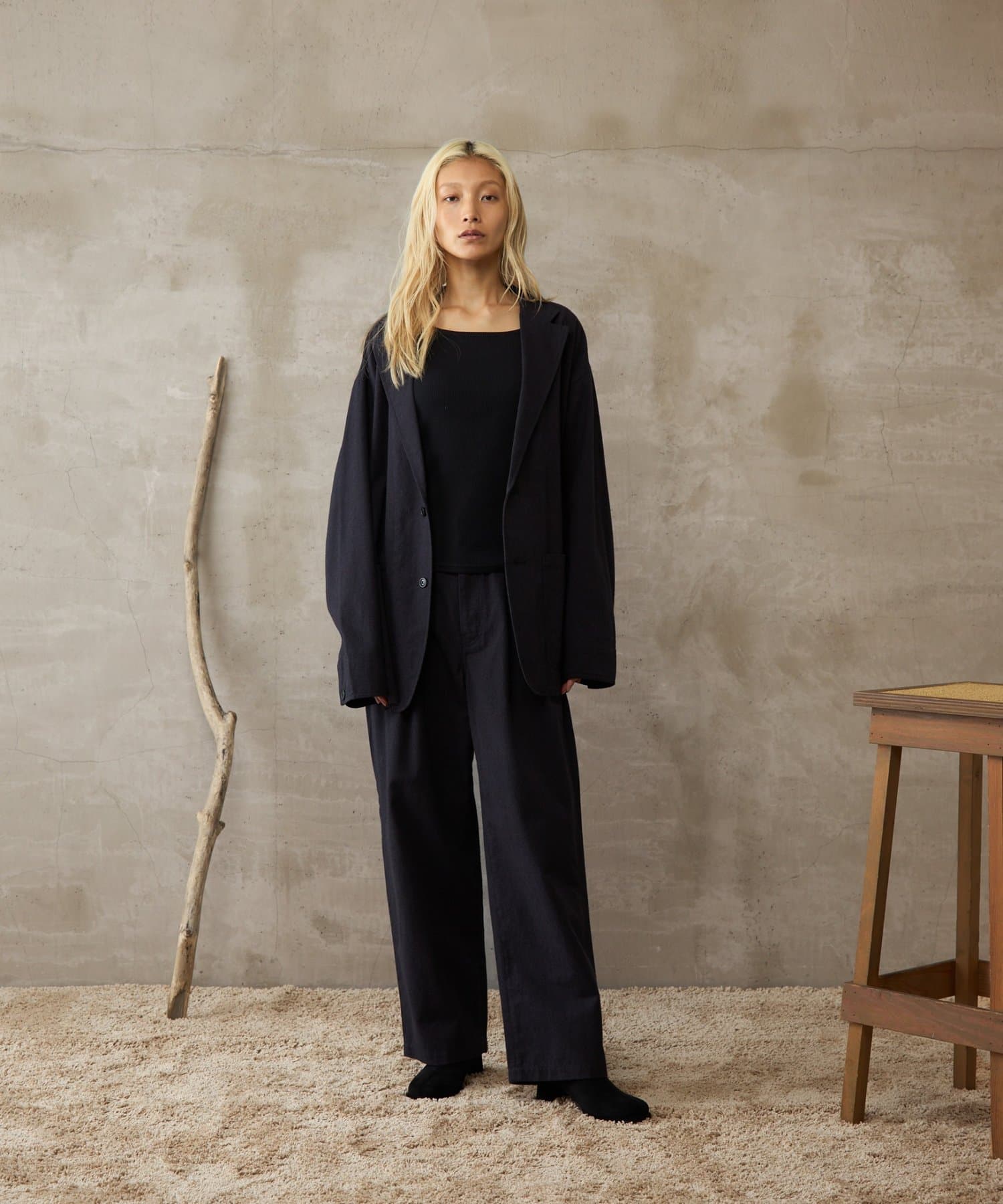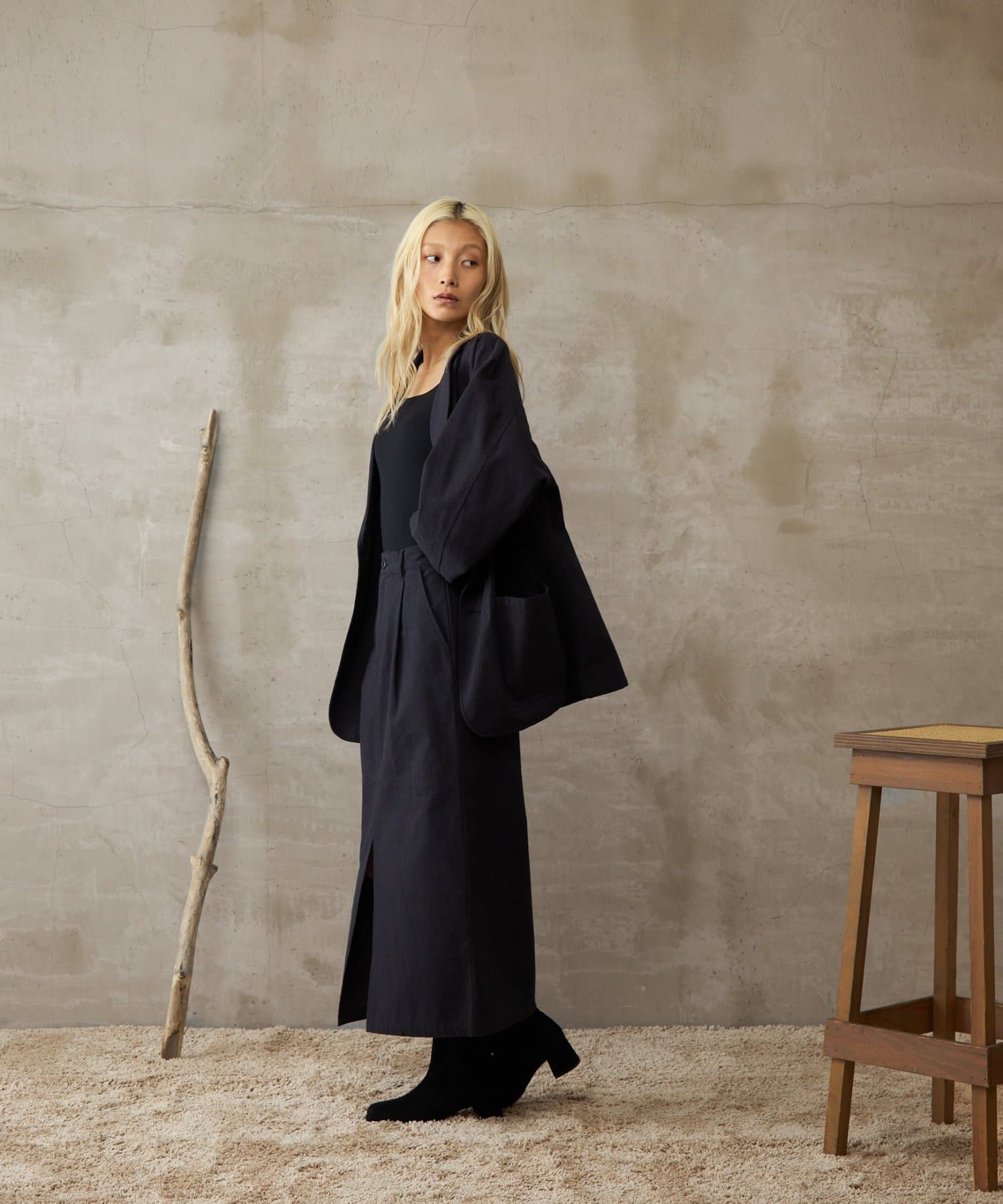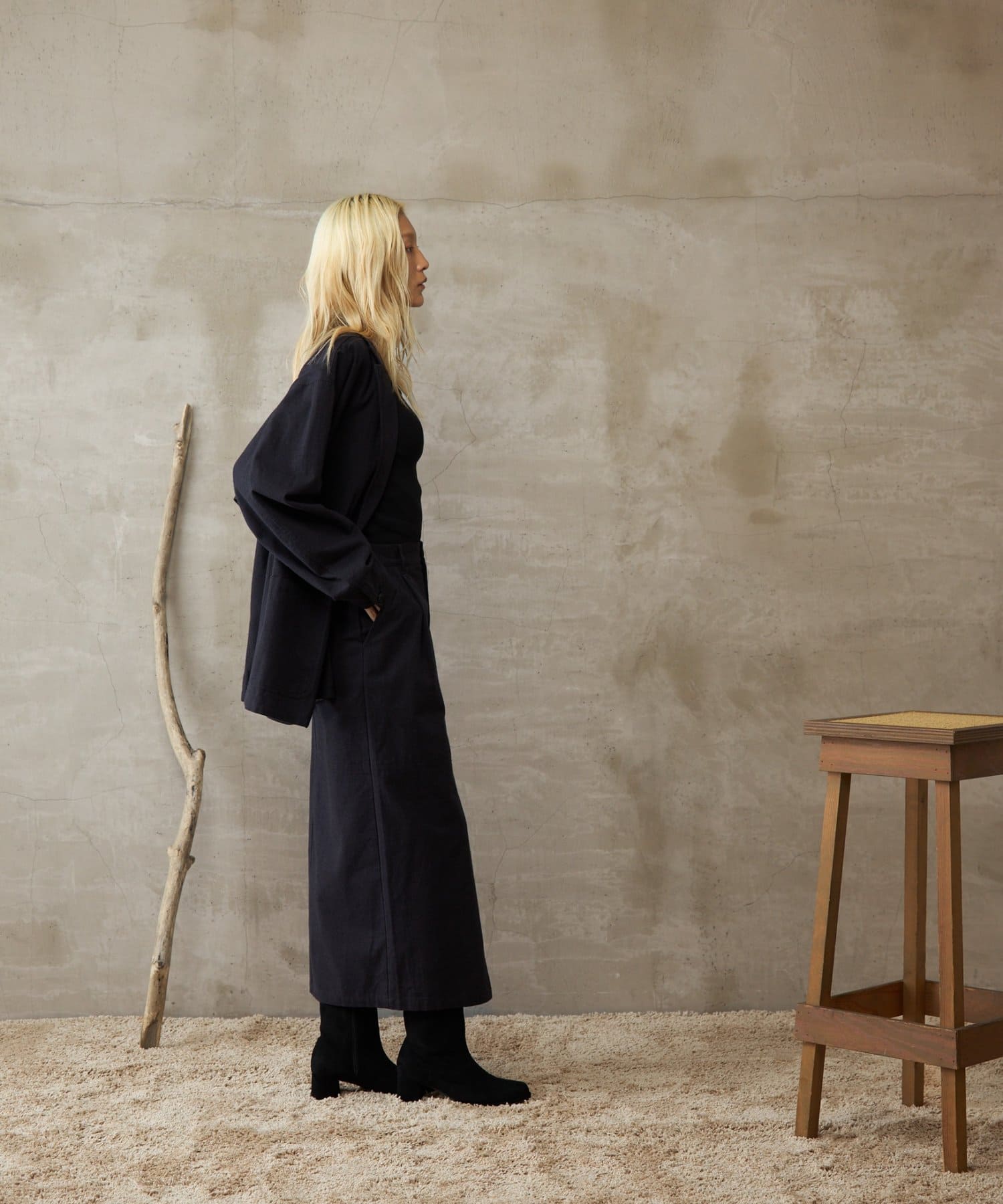 ウィンターリネン特有の暖かみのある素材感でありながら都会的なシルエットやカラーがバランスの良い一品です。
