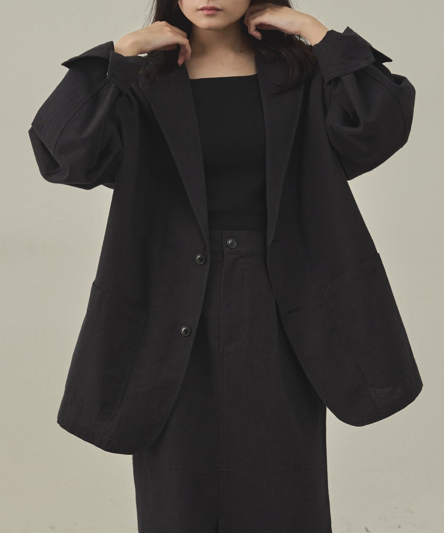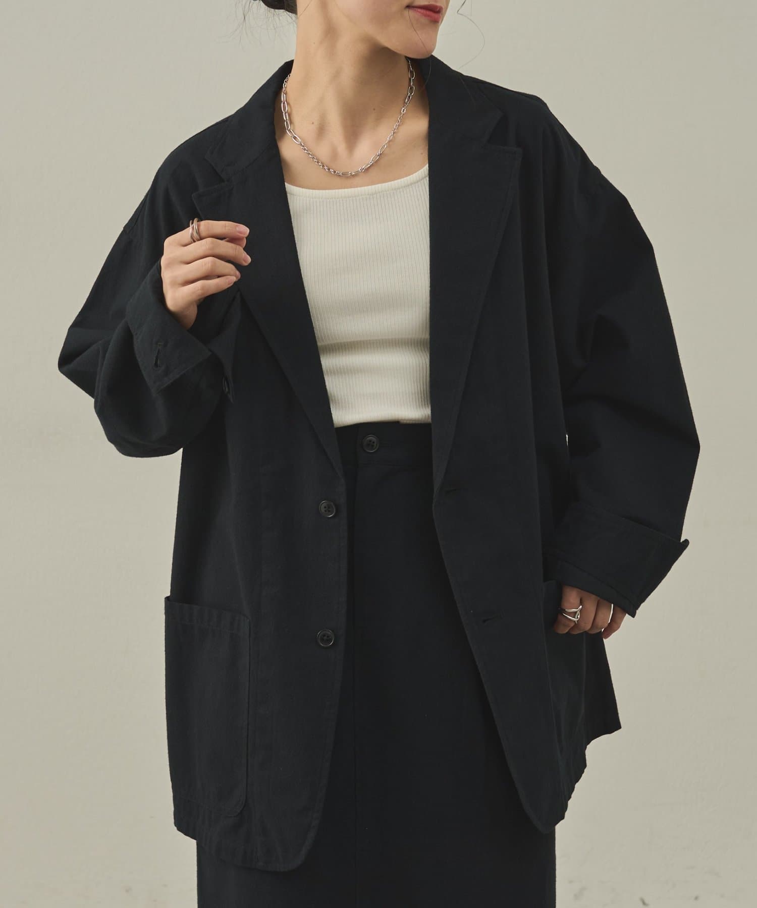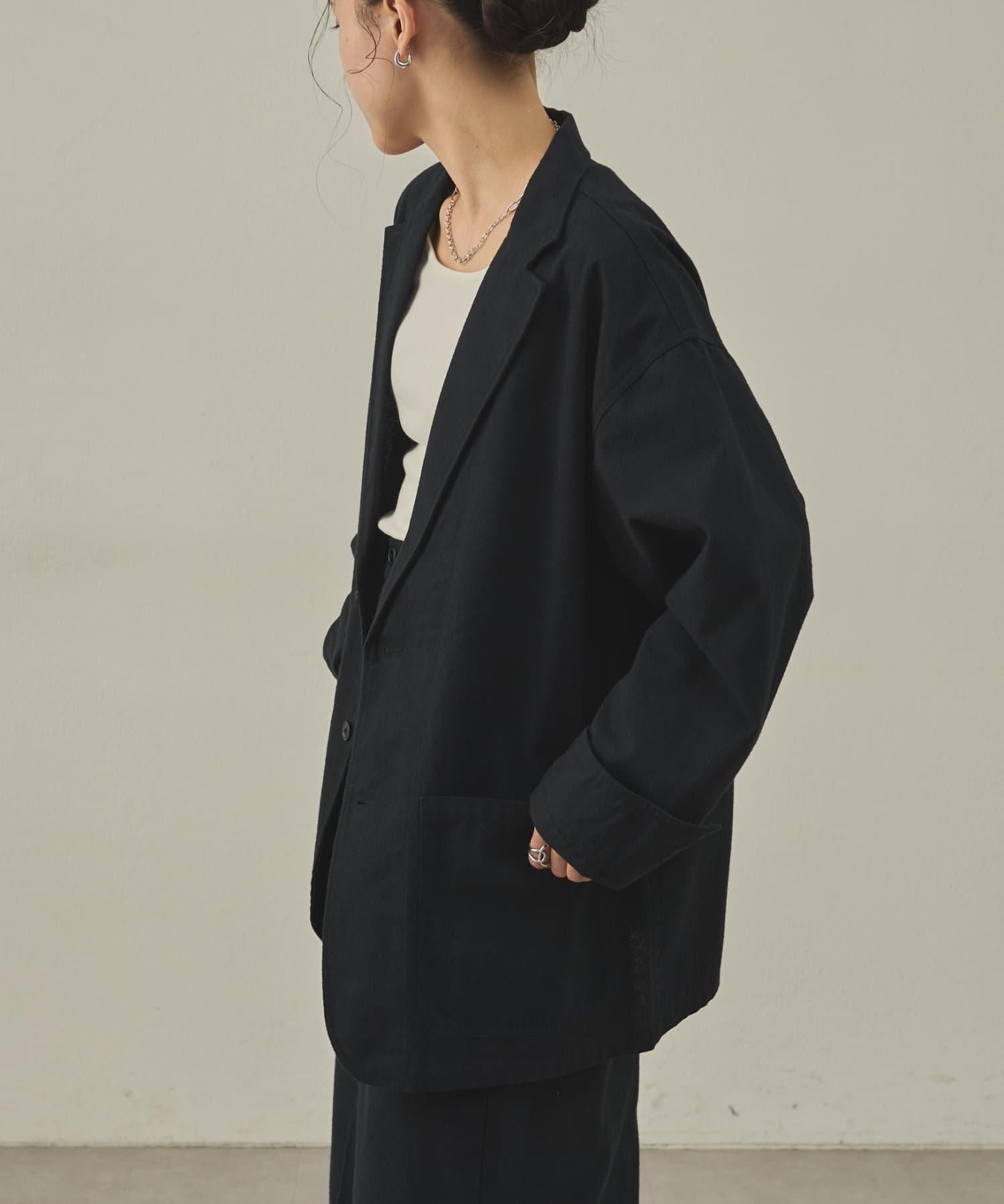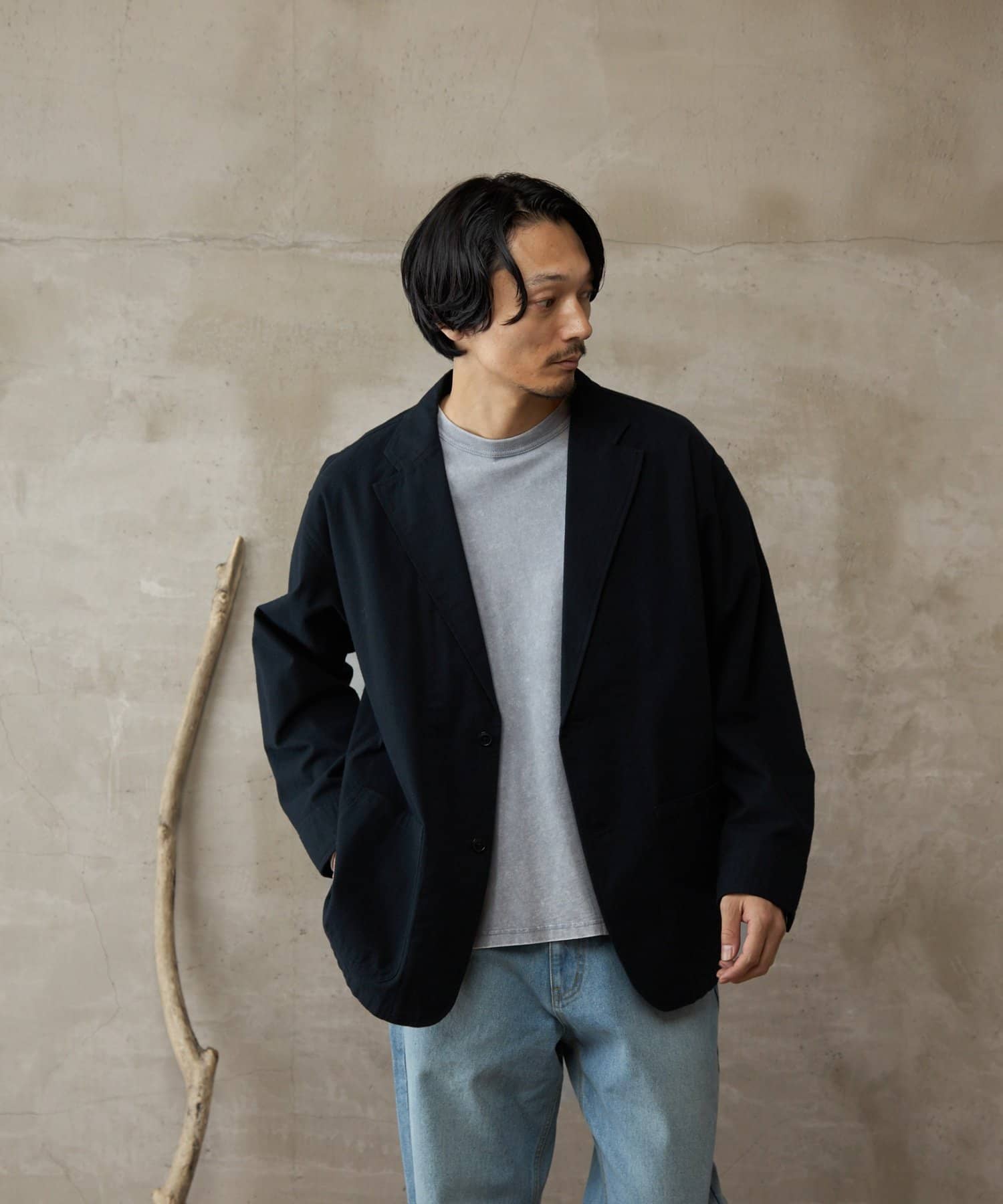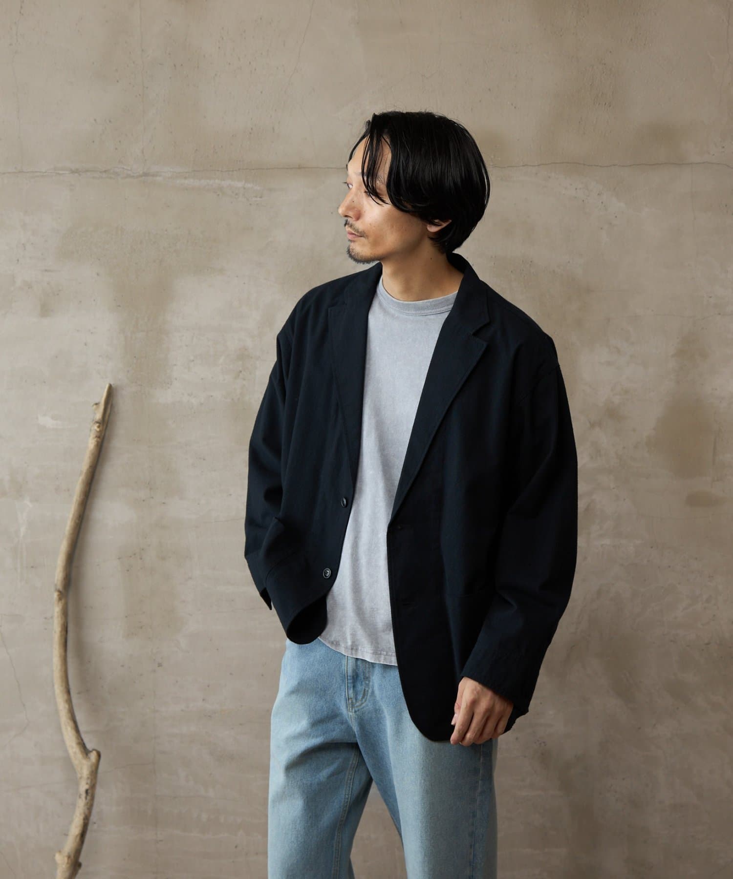 全体的にゆとりを持たせたシルエットで、 野暮ったさを感じさせない都会的な印象のジャケットです。