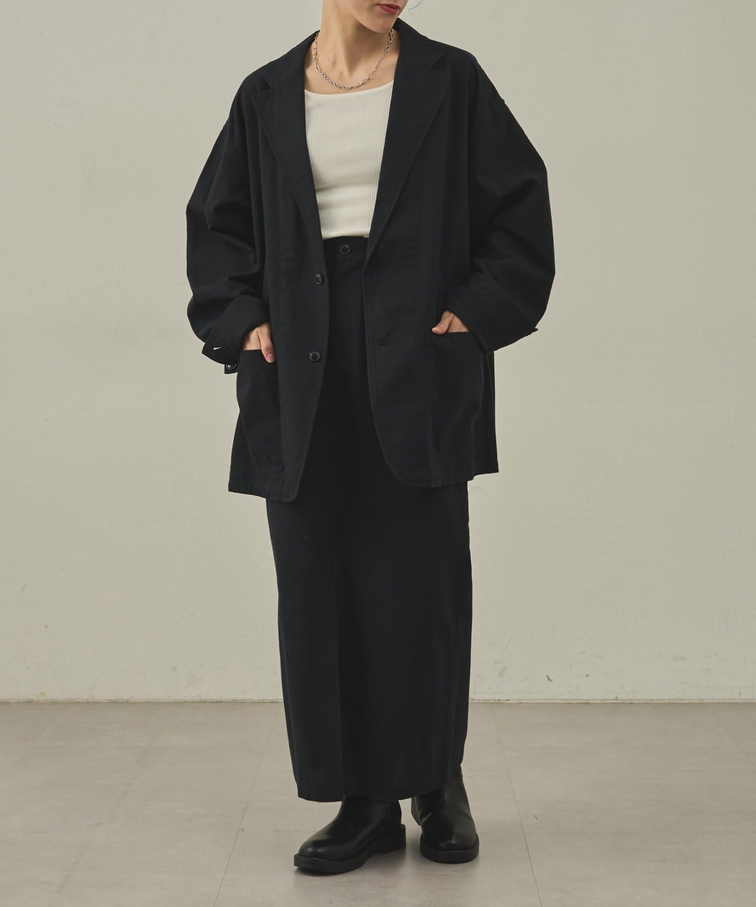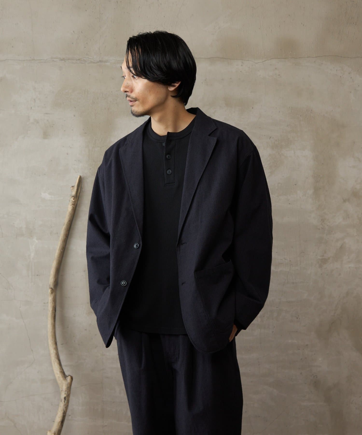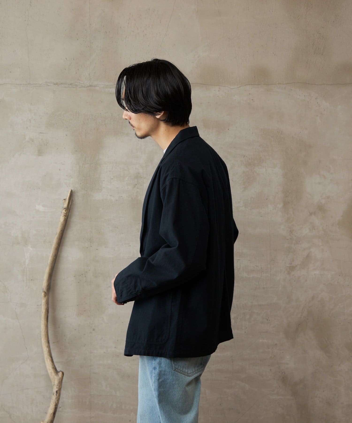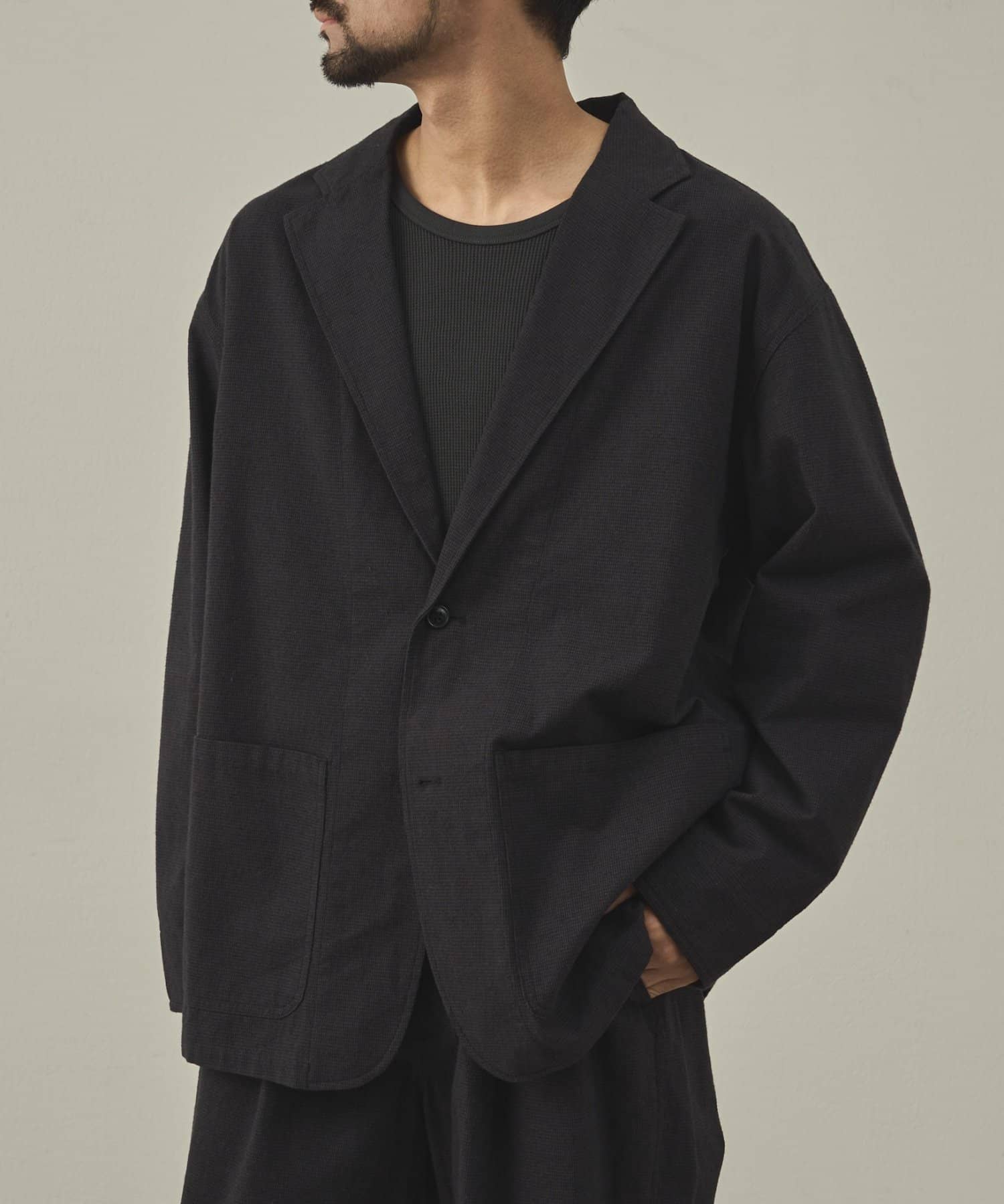 全体的にゆとりを持たせたシルエットで、 野暮ったさを感じさせない都会的な印象のジャケットです。
