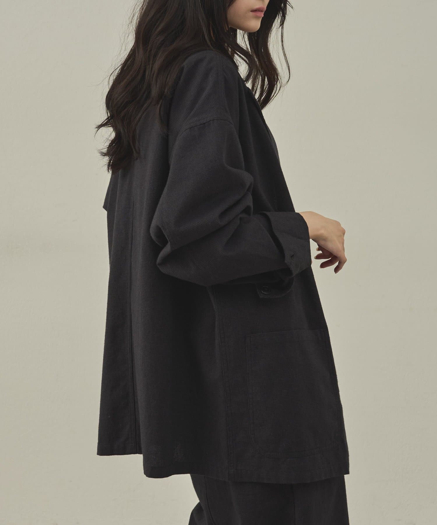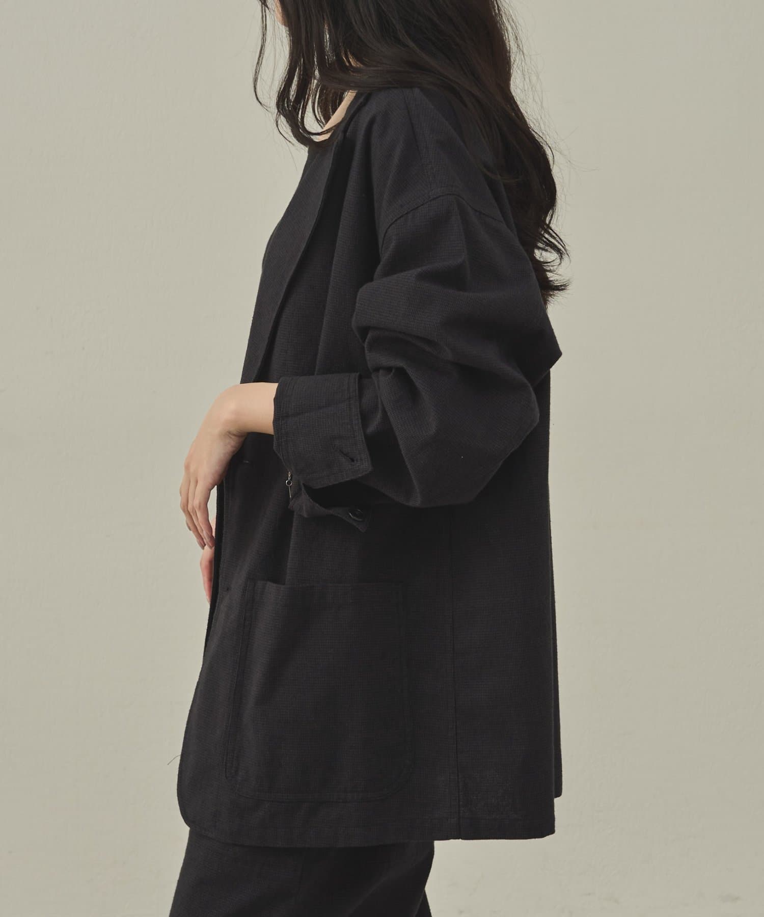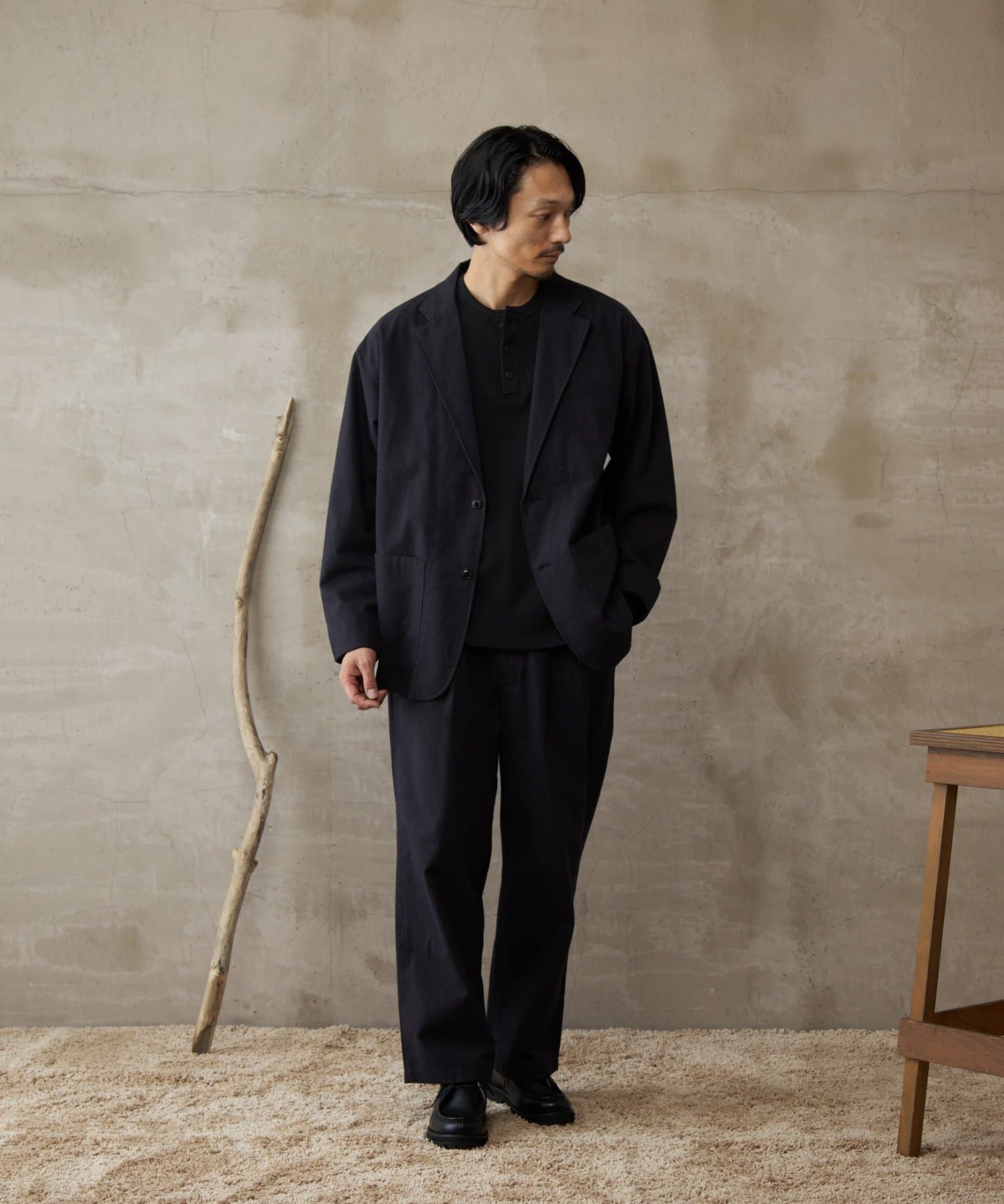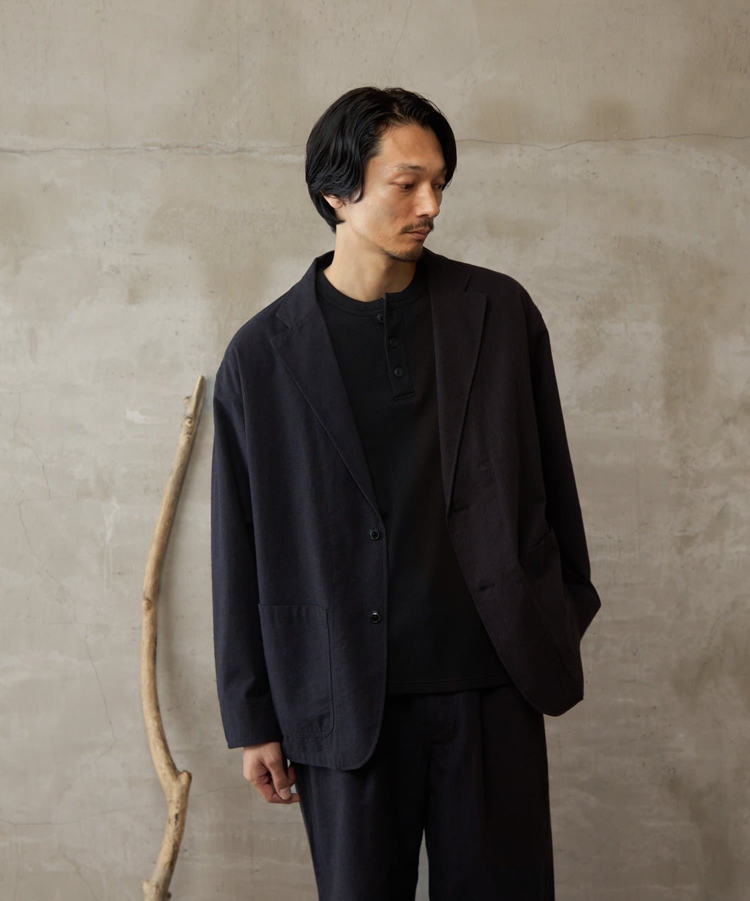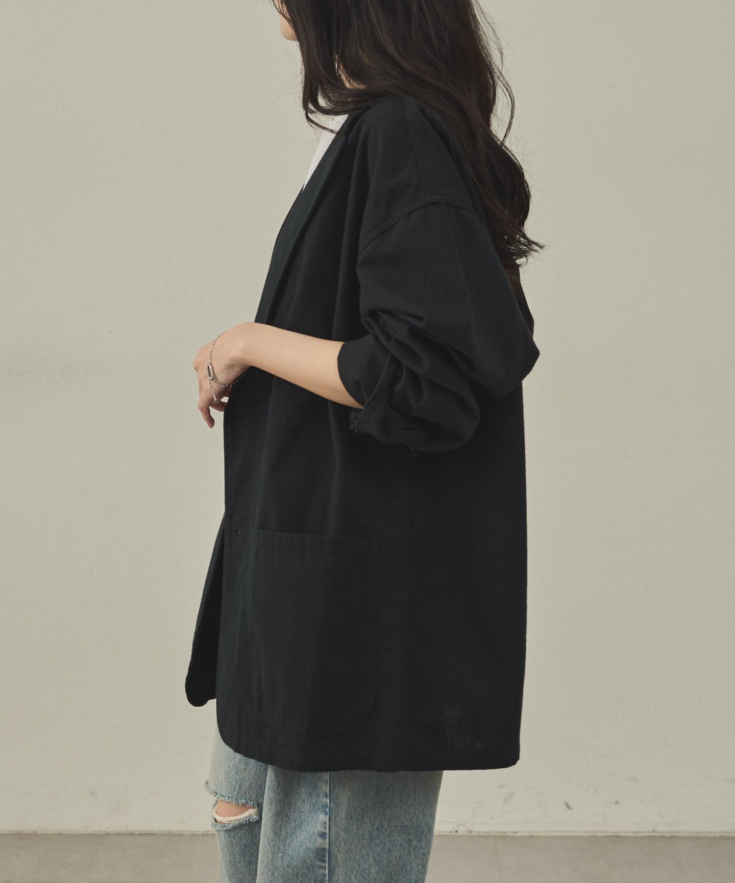 全体的にゆとりを持たせたシルエットで、 野暮ったさを感じさせない都会的な印象のジャケットです。