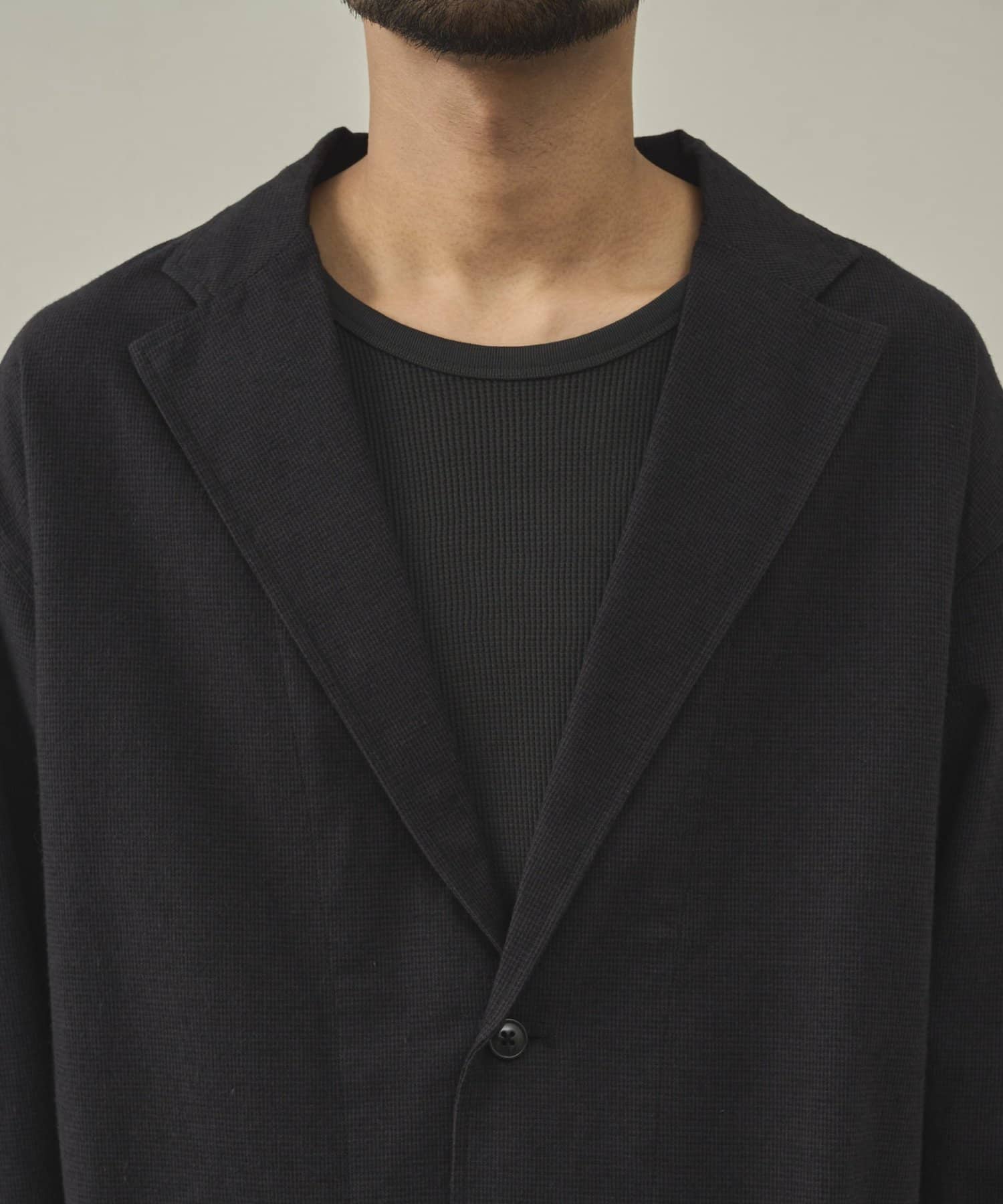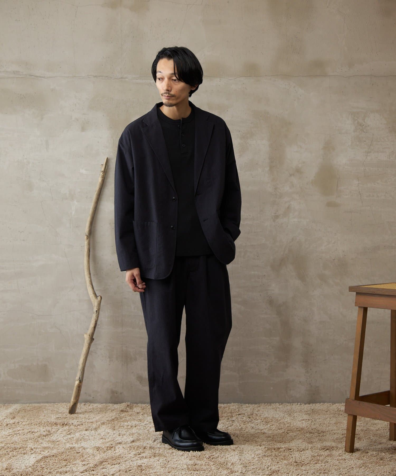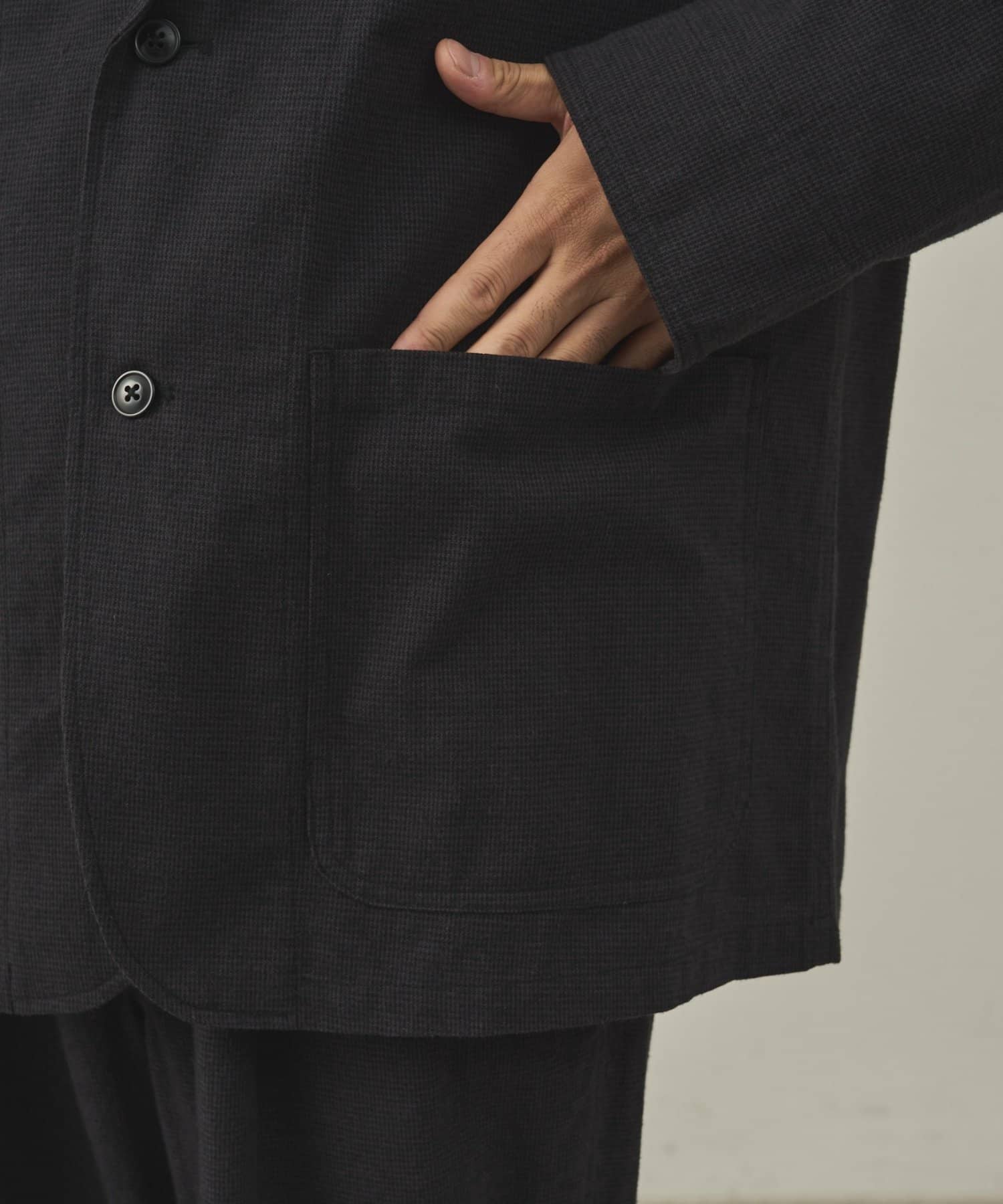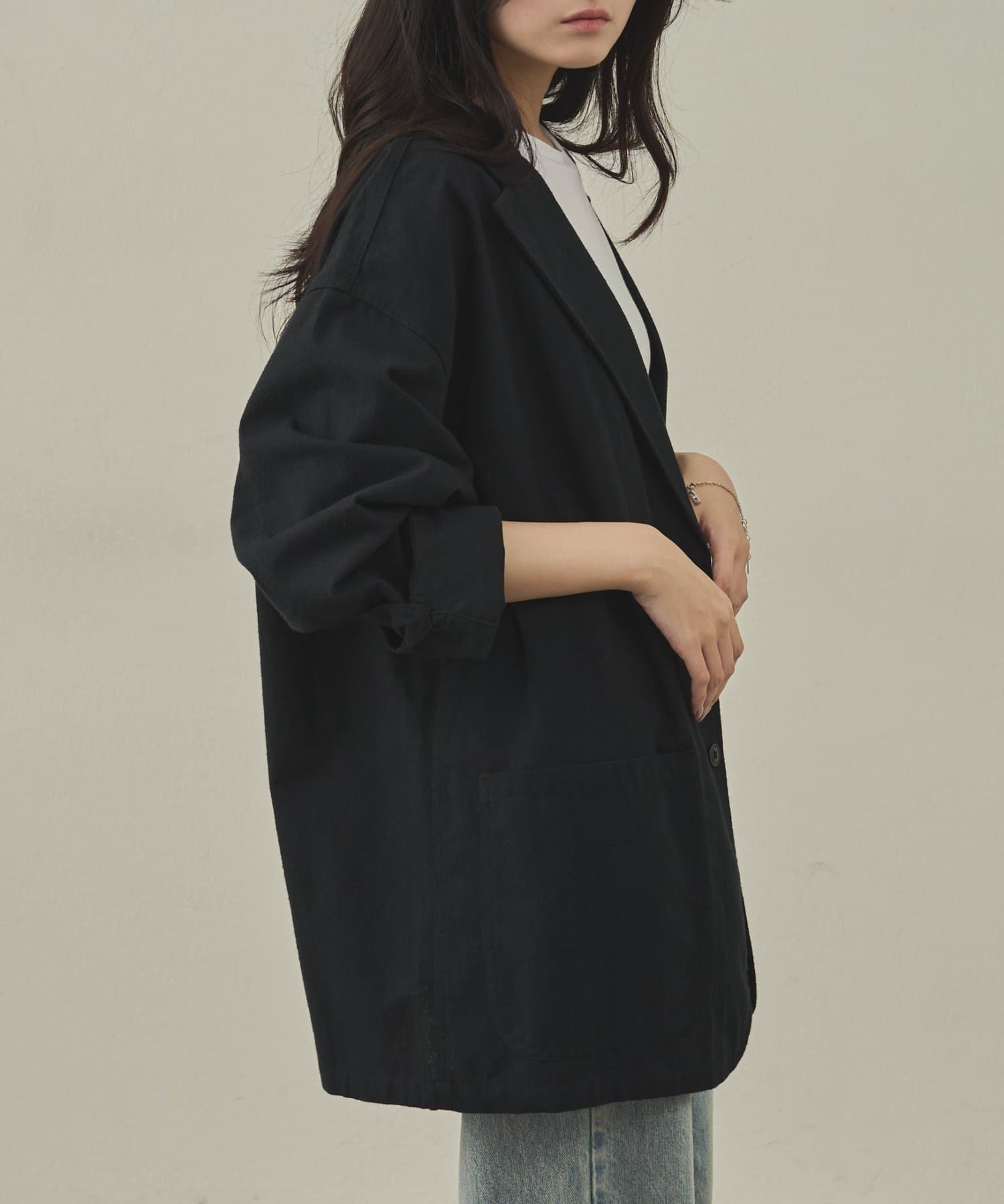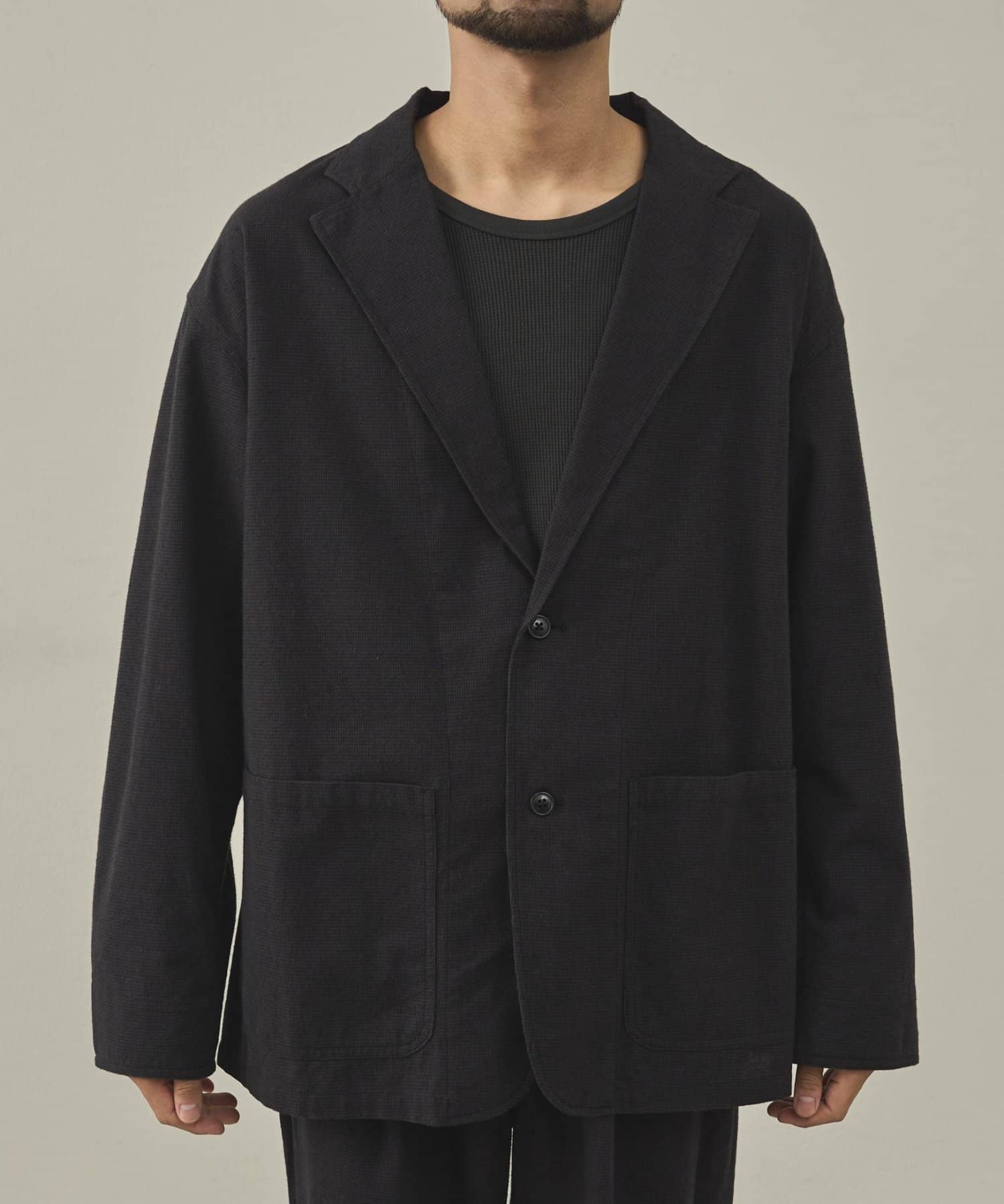 全体的にゆとりを持たせたシルエットで、 野暮ったさを感じさせない都会的な印象のジャケットです。