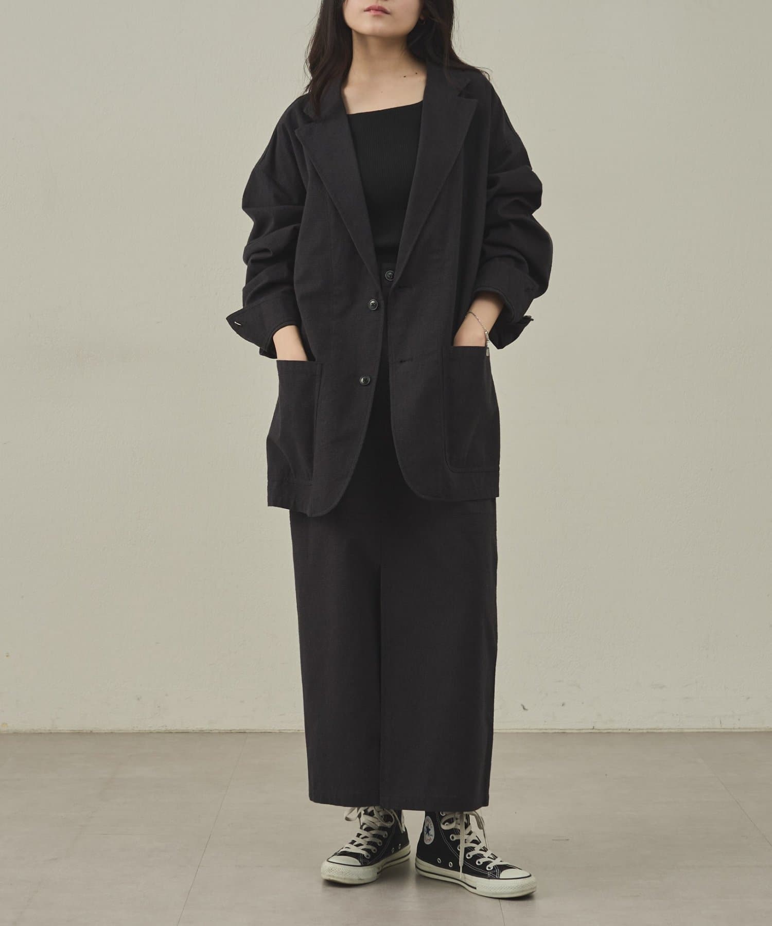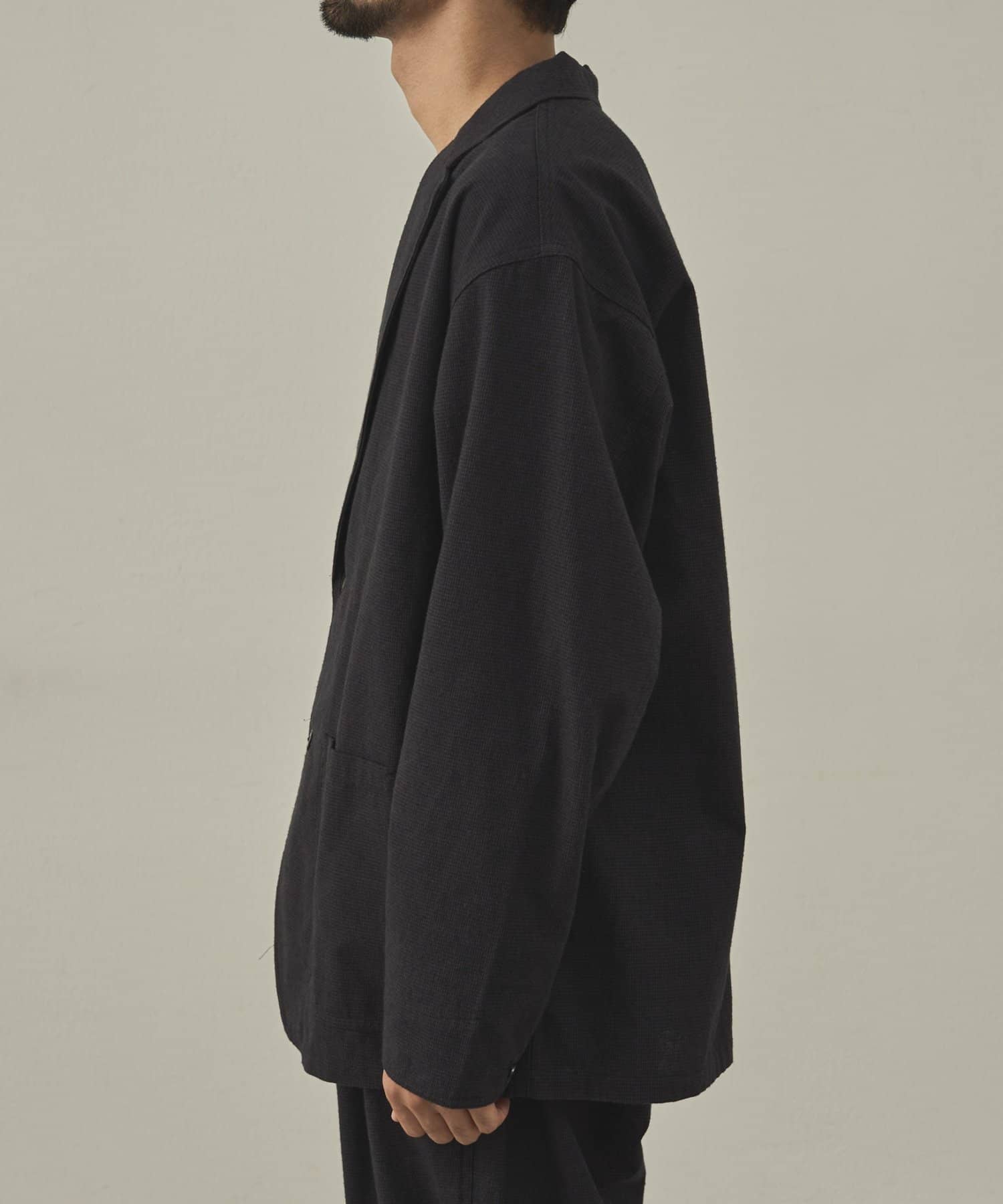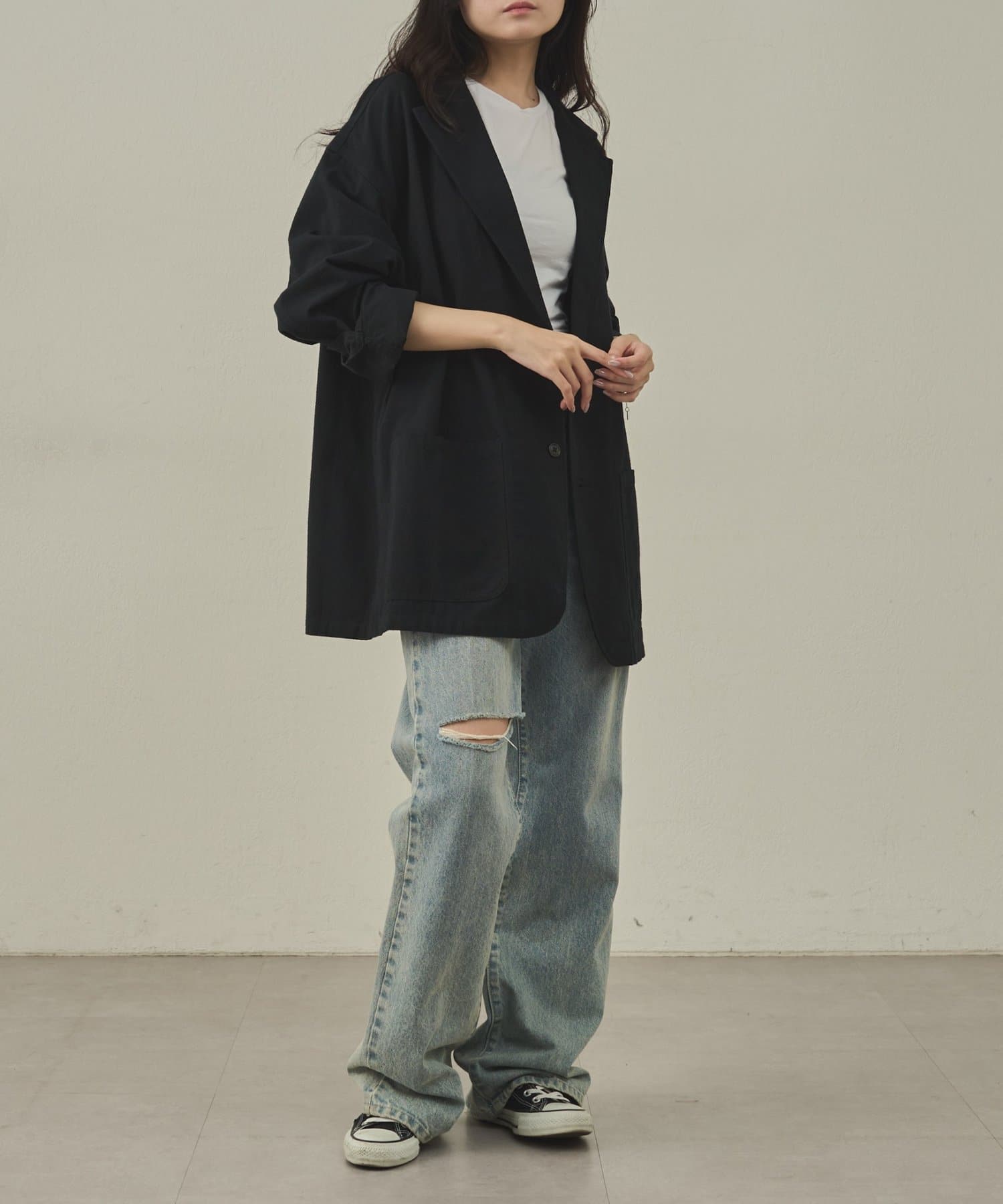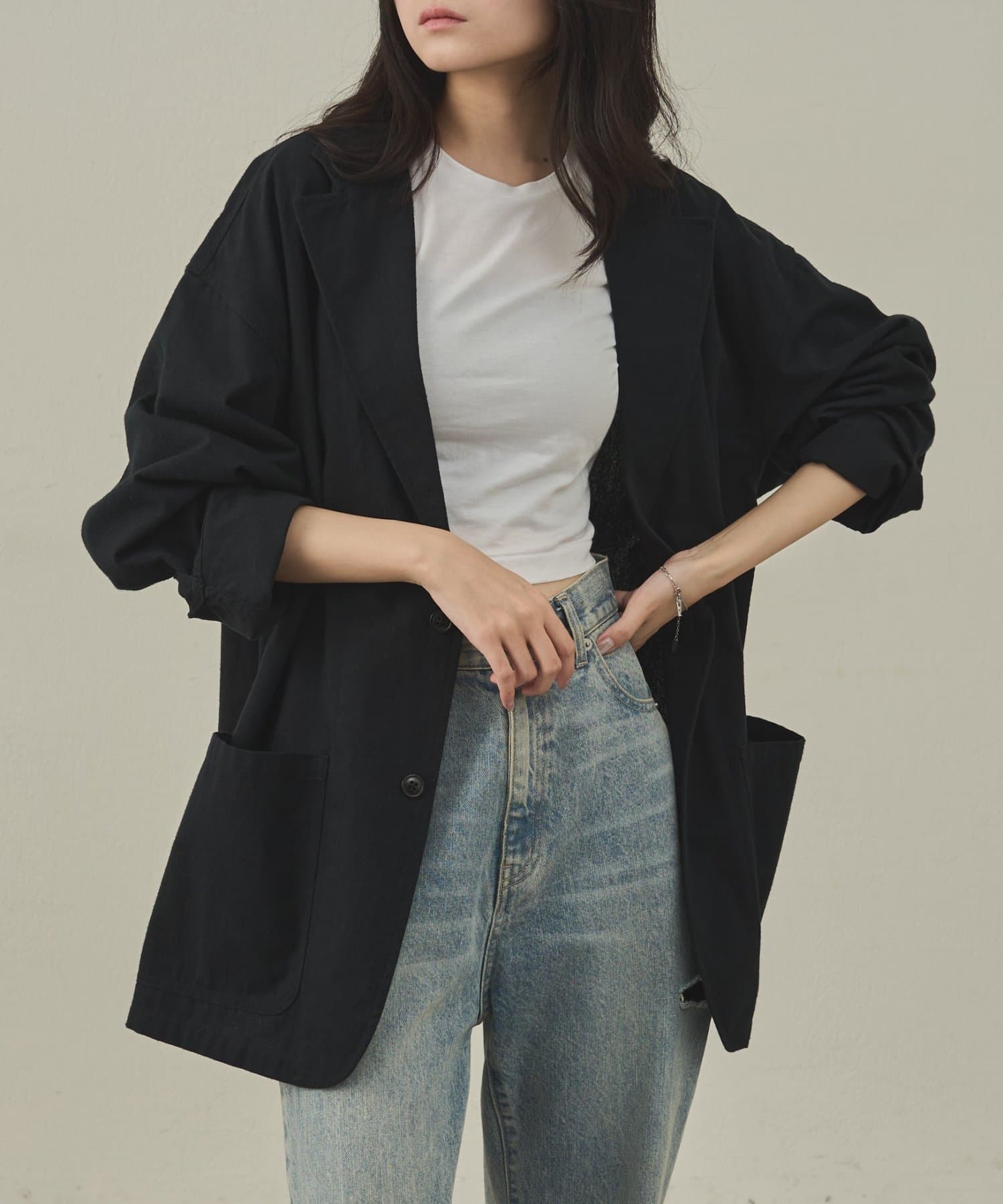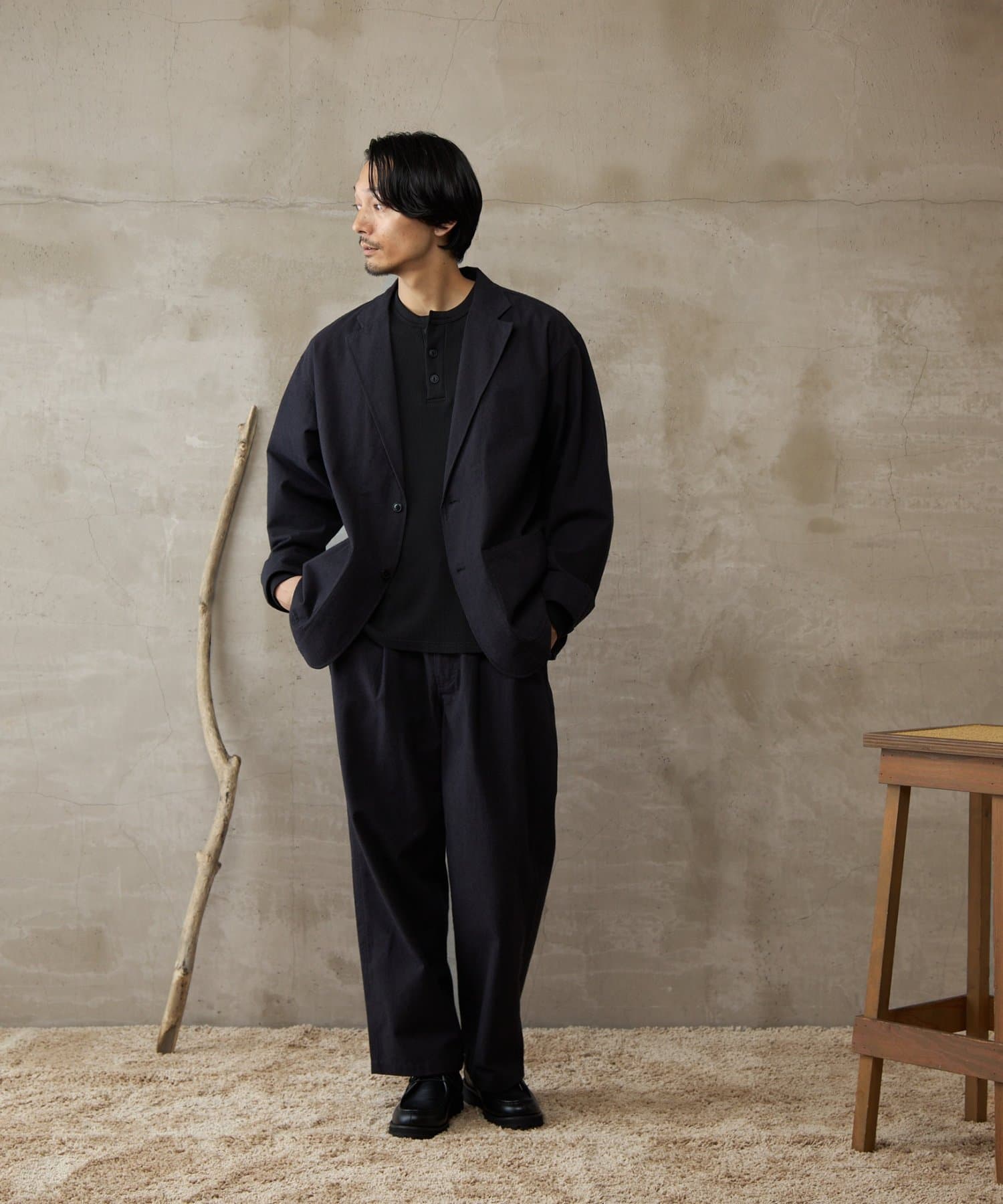 全体的にゆとりを持たせたシルエットで、 野暮ったさを感じさせない都会的な印象のジャケットです。