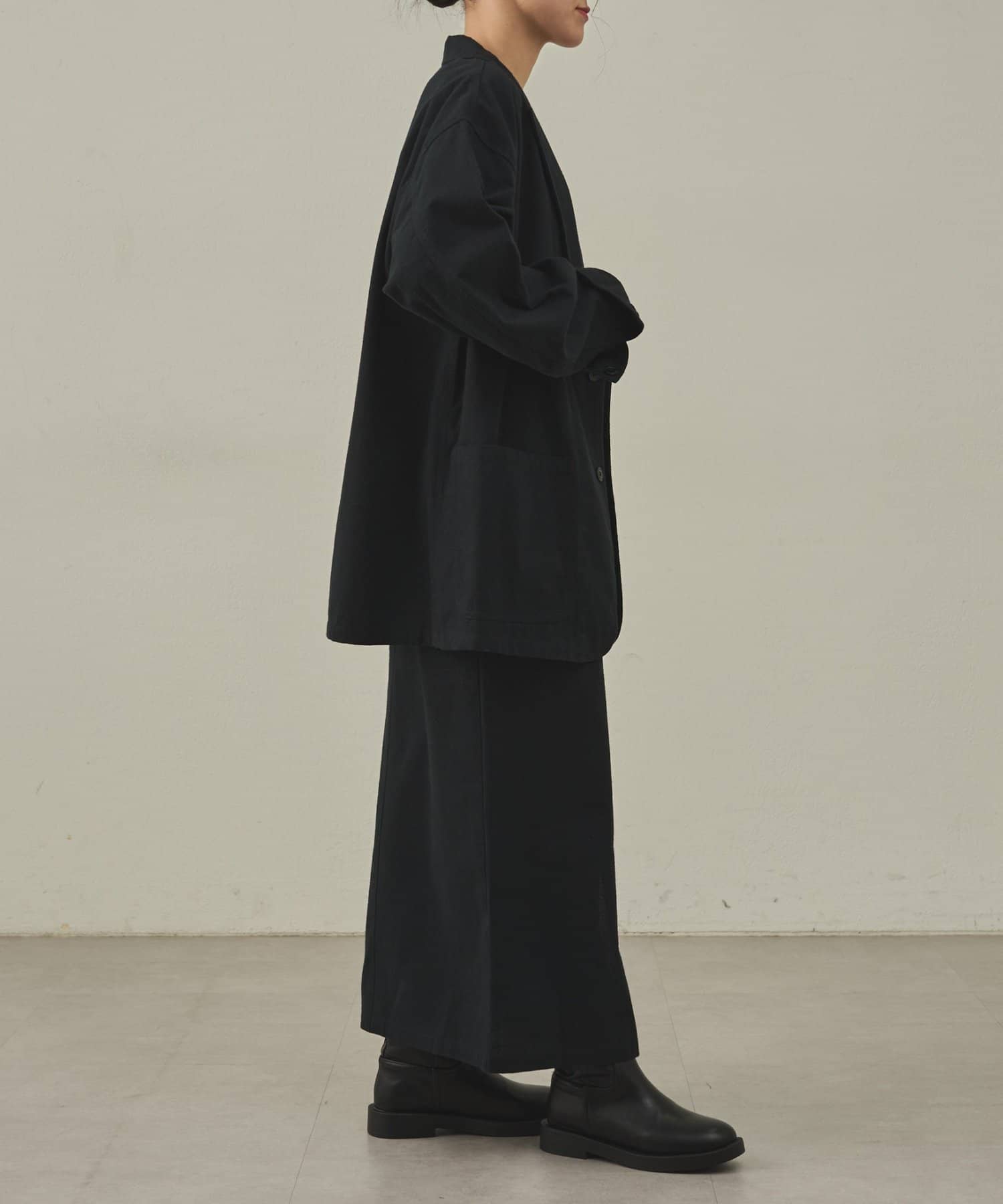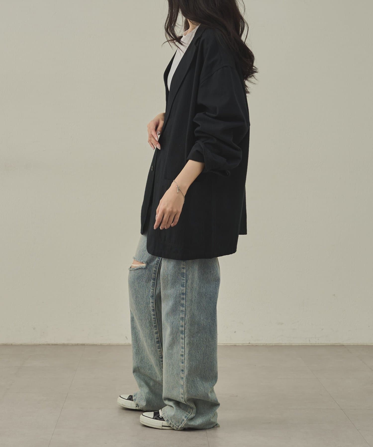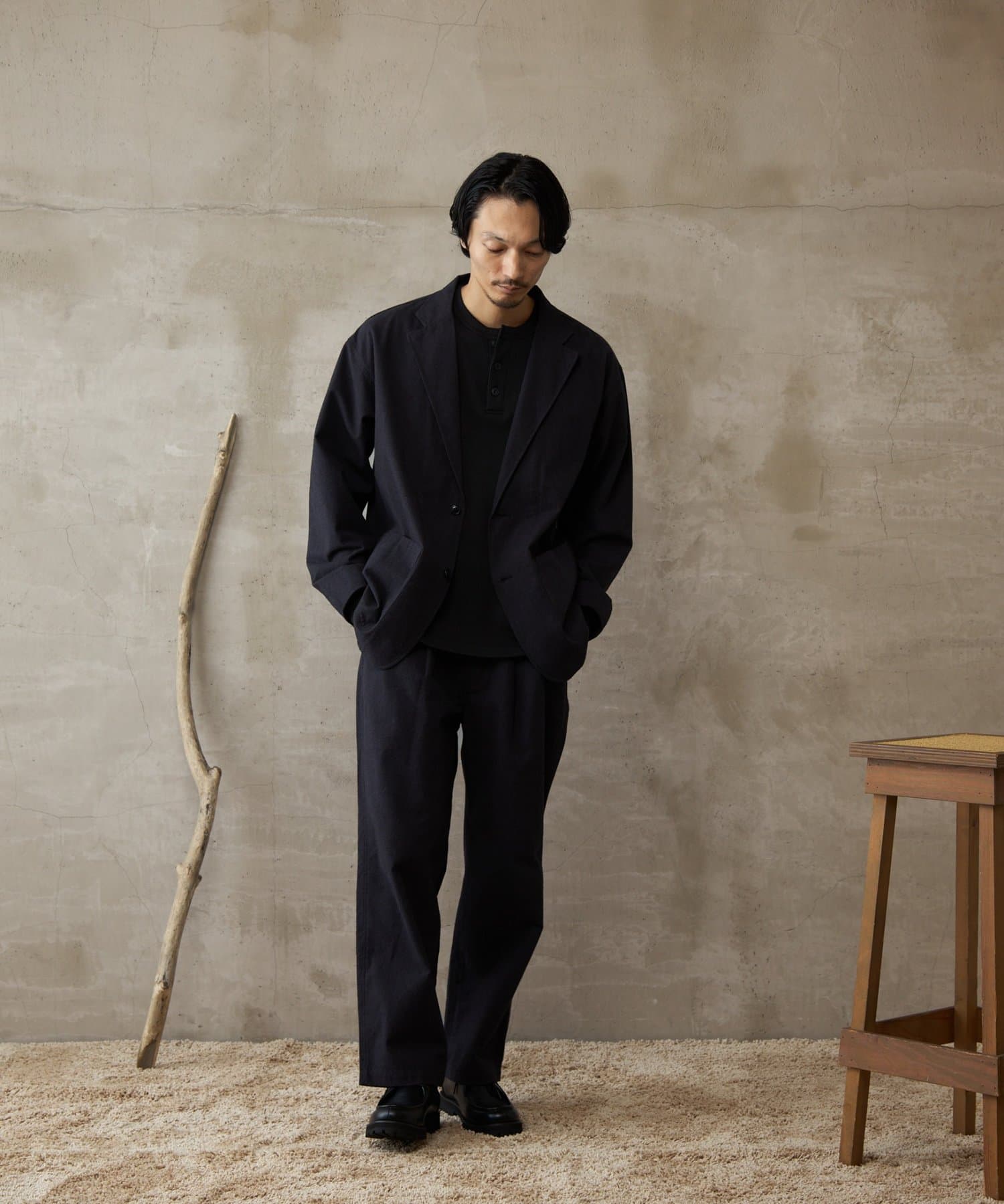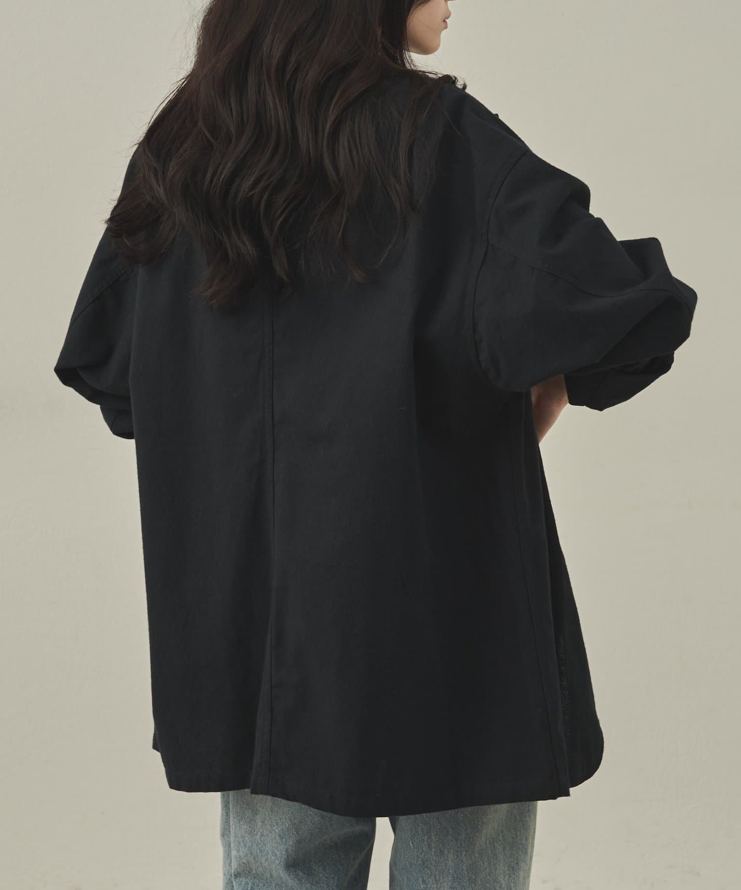 全体的にゆとりを持たせたシルエットで、 野暮ったさを感じさせない都会的な印象のジャケットです。