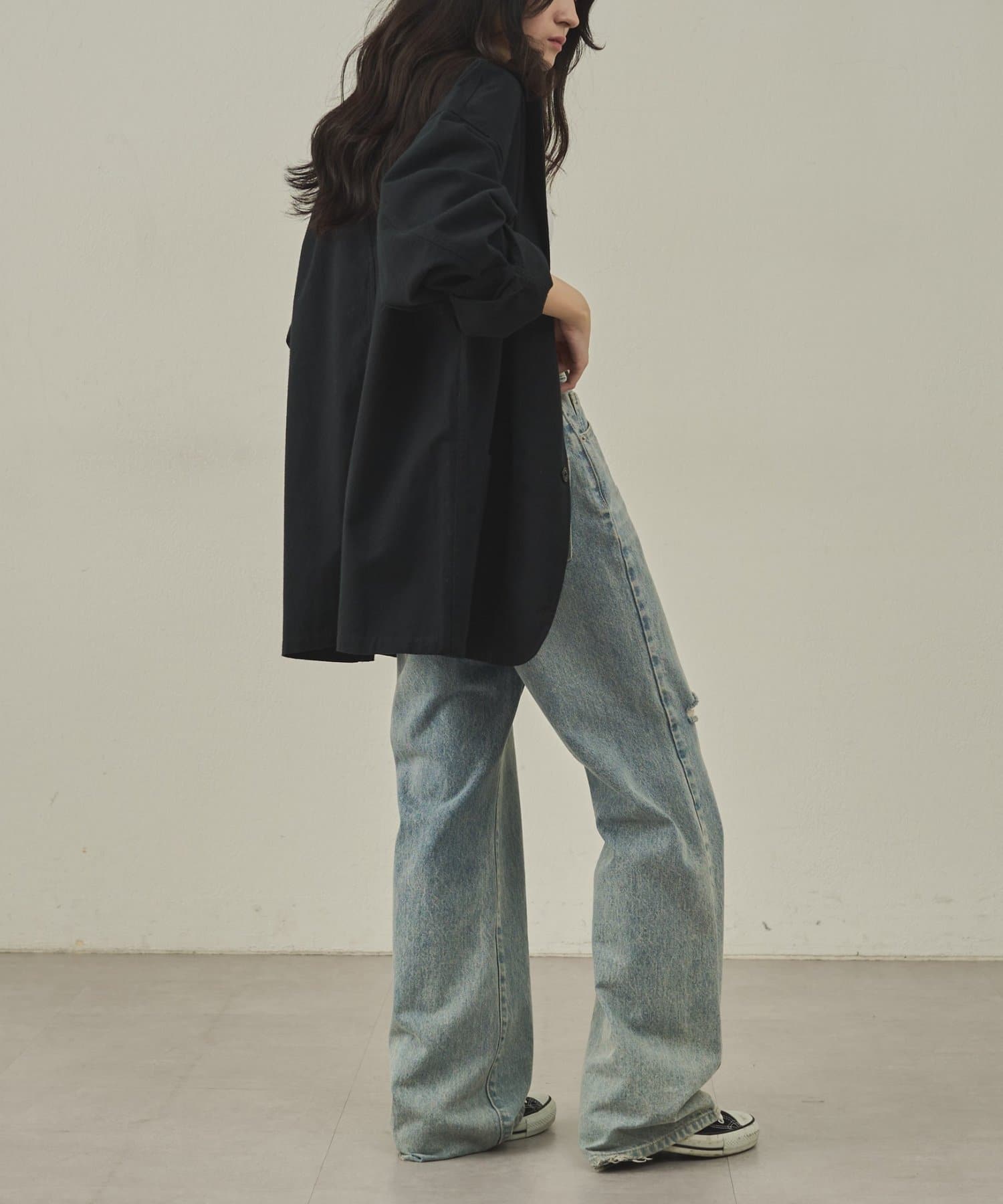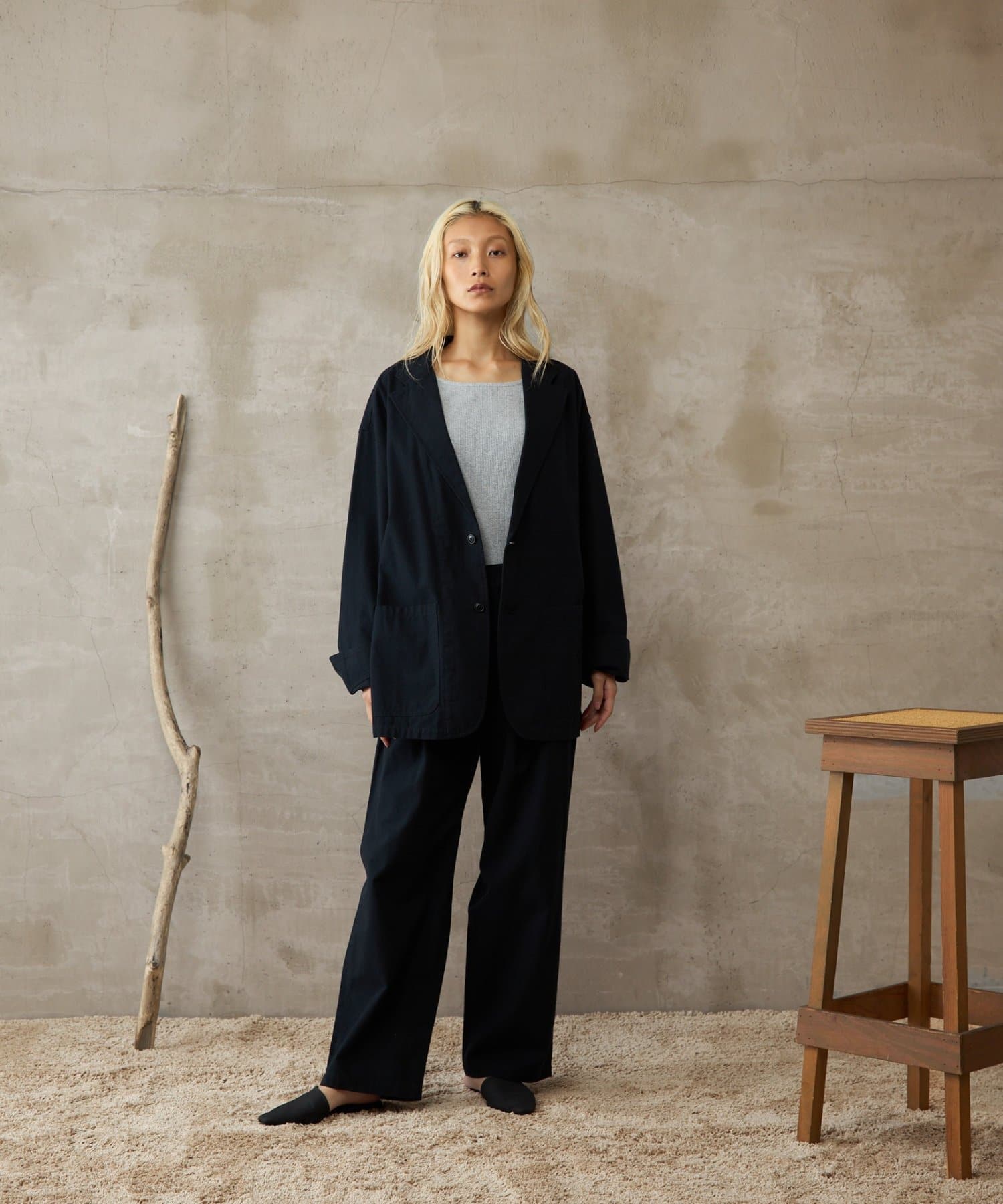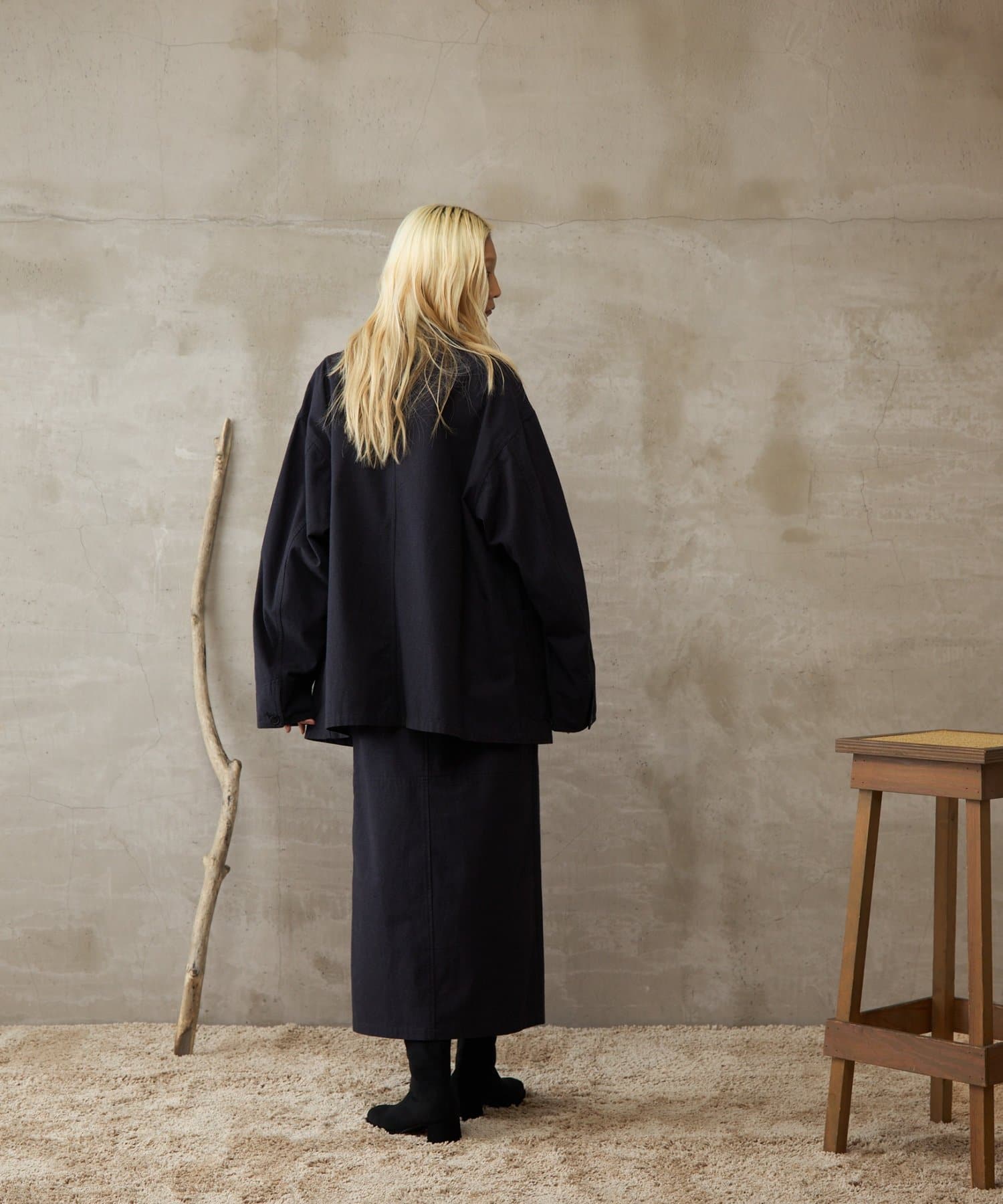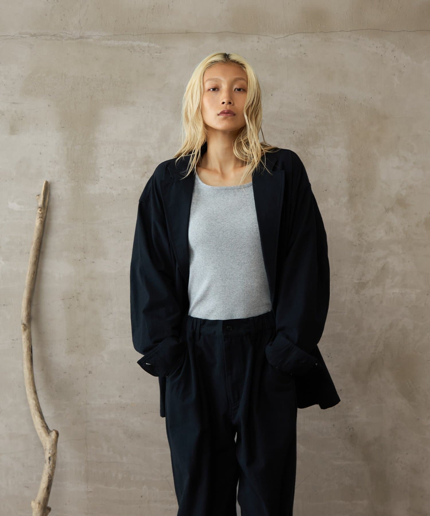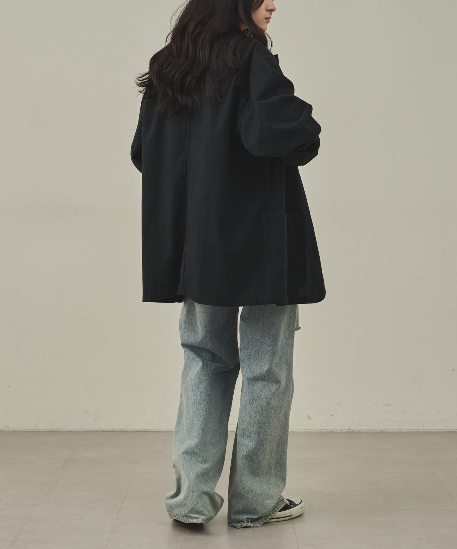 全体的にゆとりを持たせたシルエットで、 野暮ったさを感じさせない都会的な印象のジャケットです。