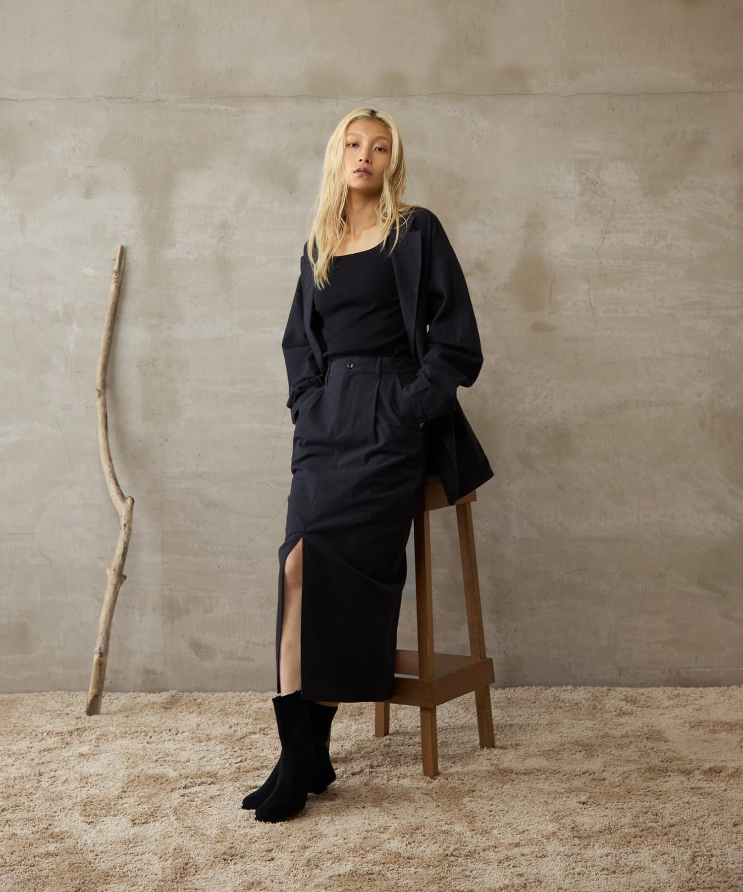 ・CPA1052201A0001 ウィンターリネンフロントスリットIラインスカート