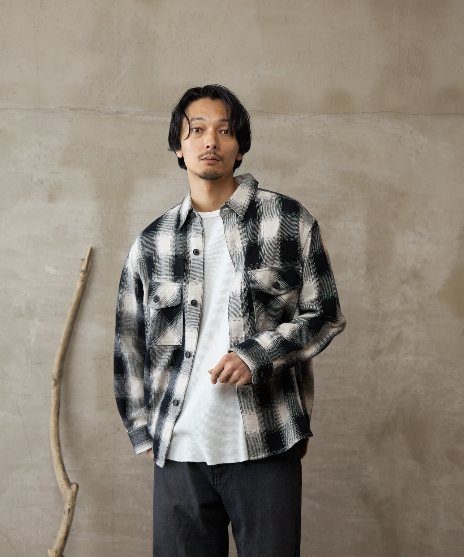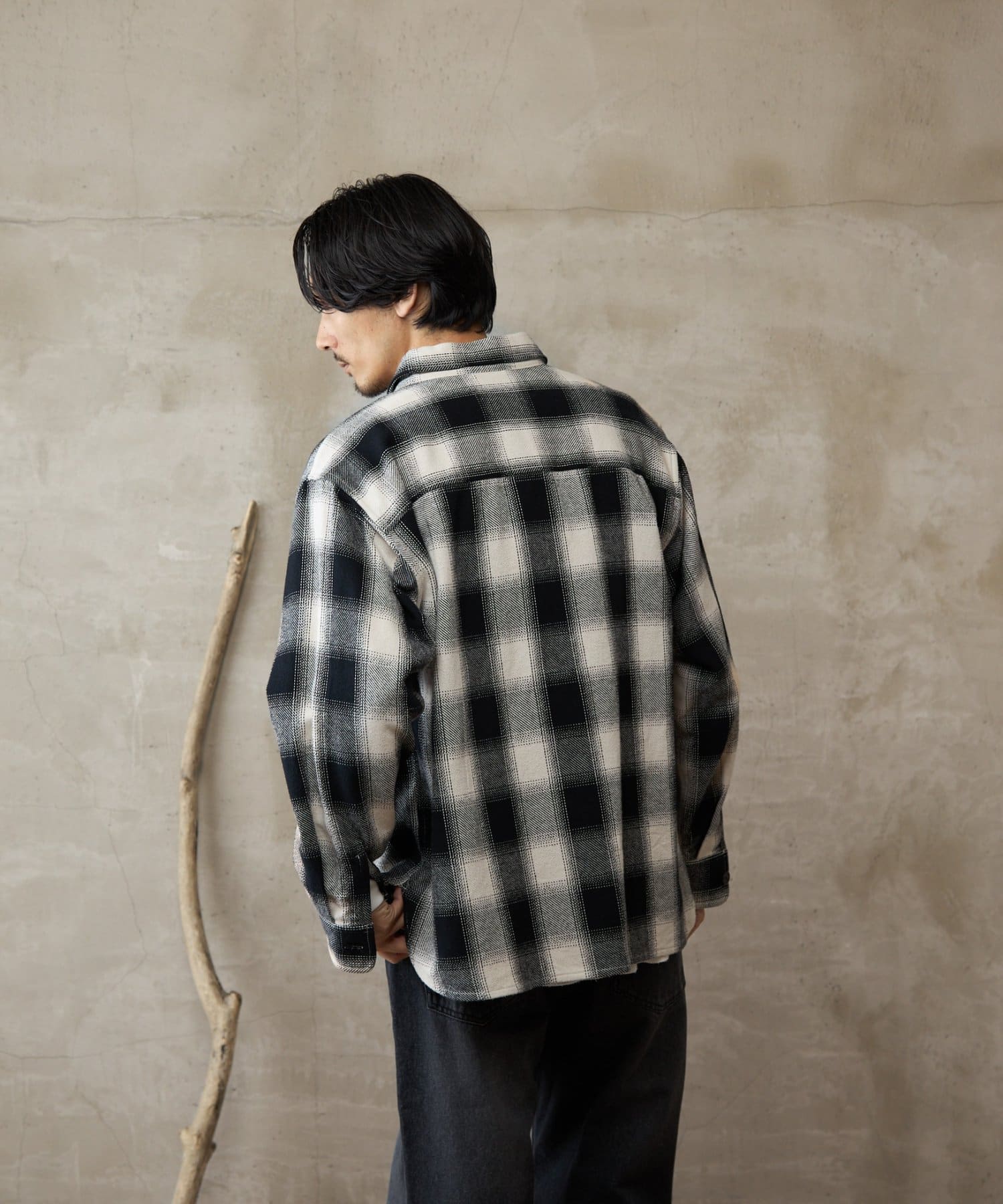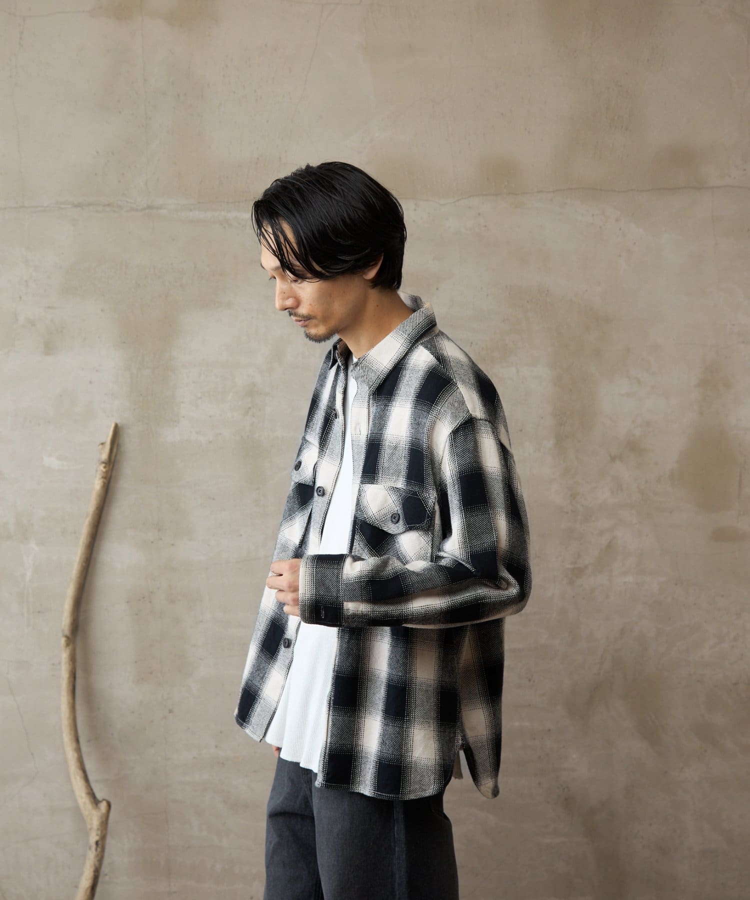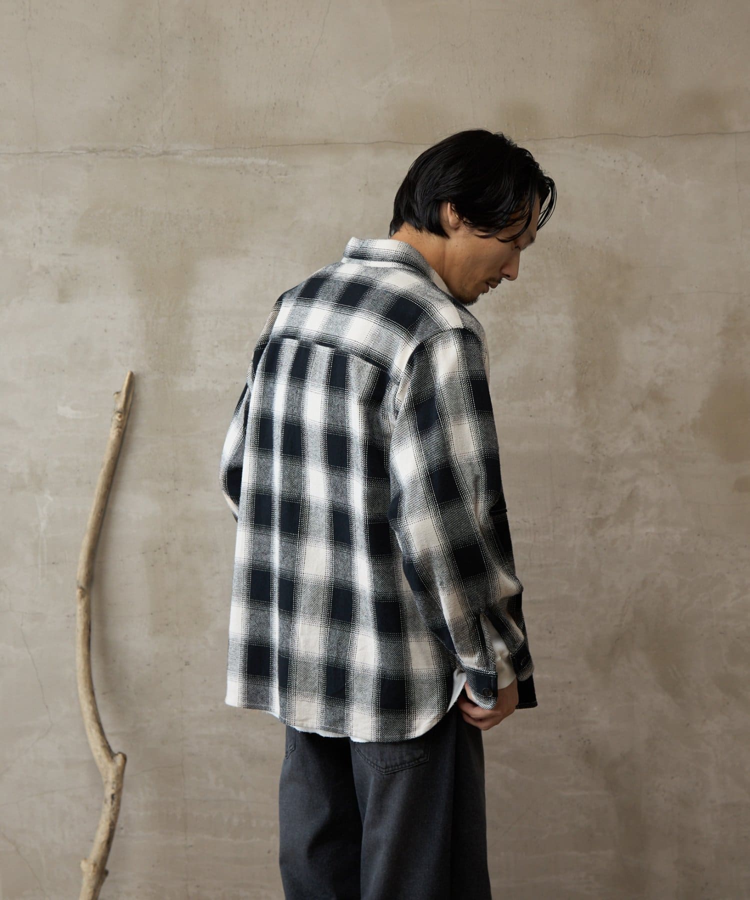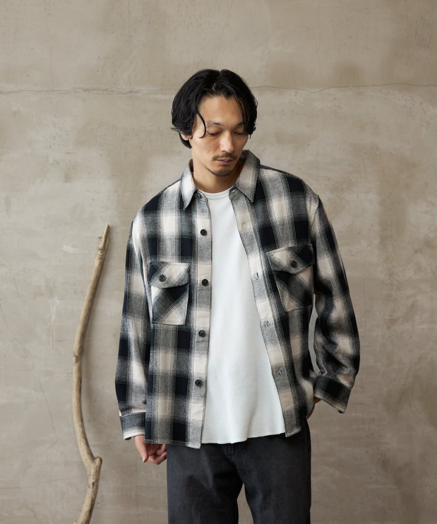 【paradigm】先染め起毛オンブレチェックネルシャツ