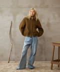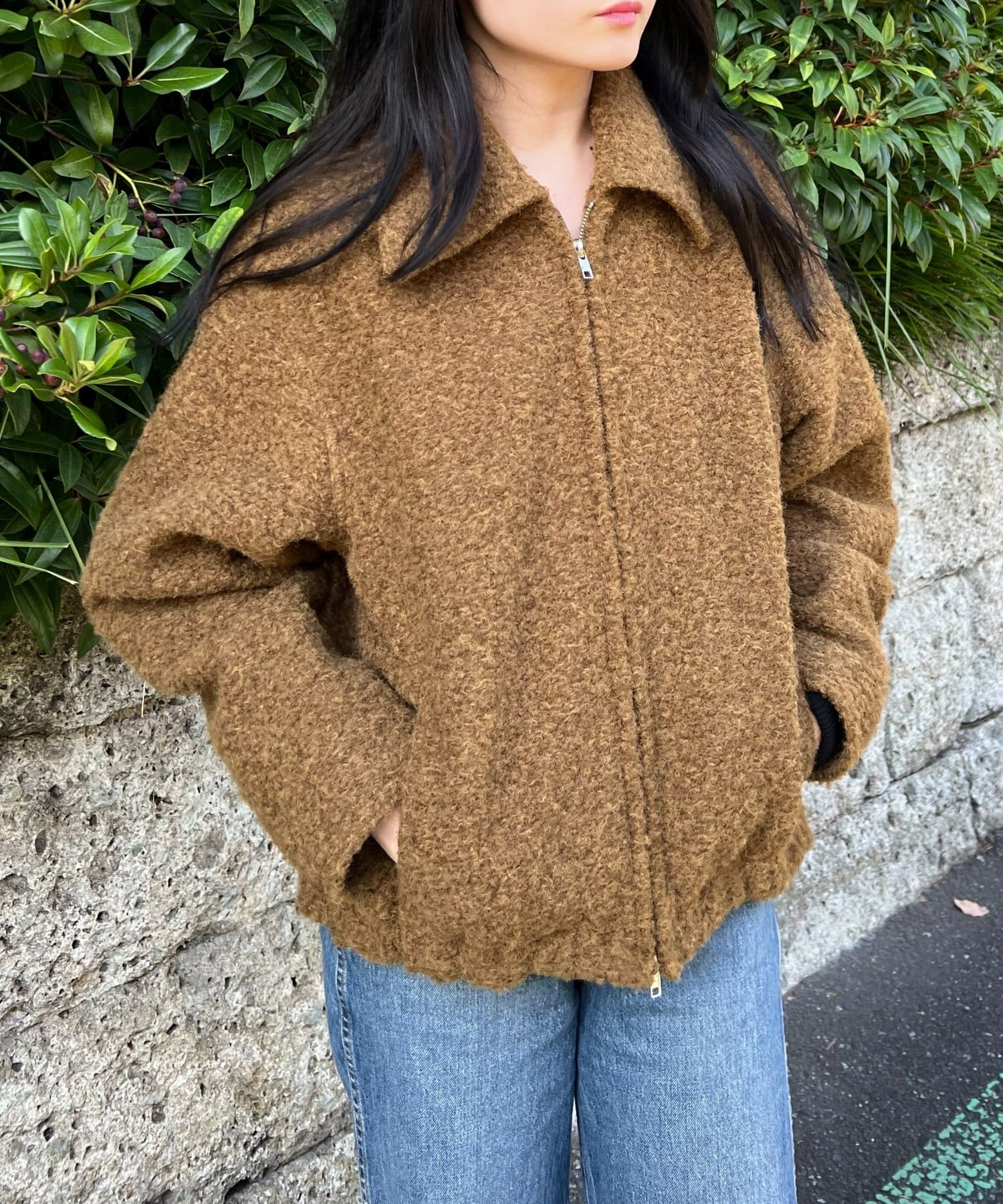 秋冬コーデの主役にぴったりな、ウール調素材×ボア襟のジップブルゾン。