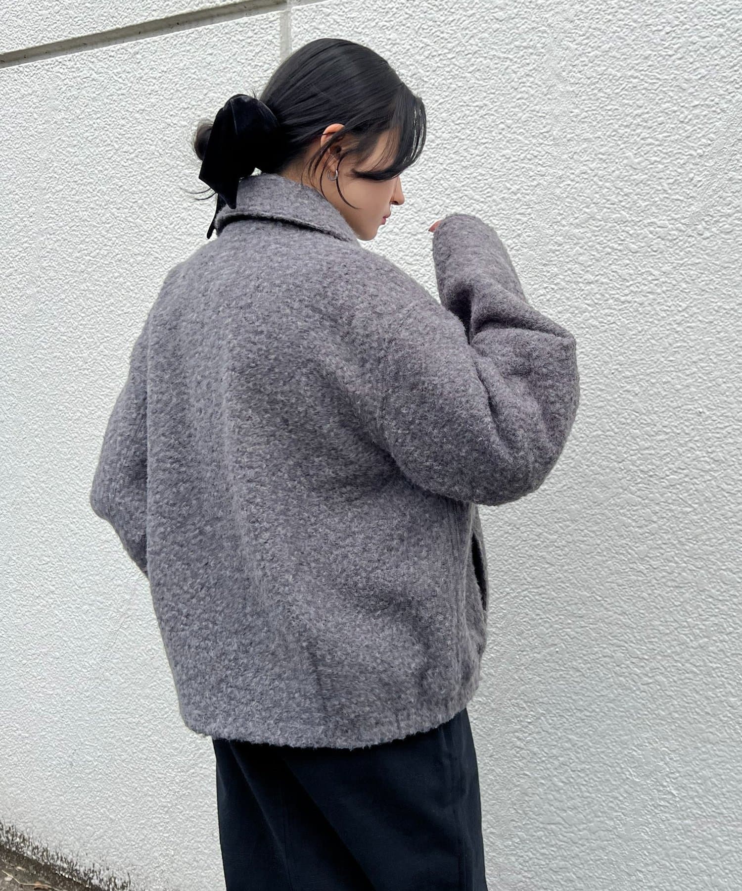 トレンドのショート丈で、大きめの衿がポイントになっています。