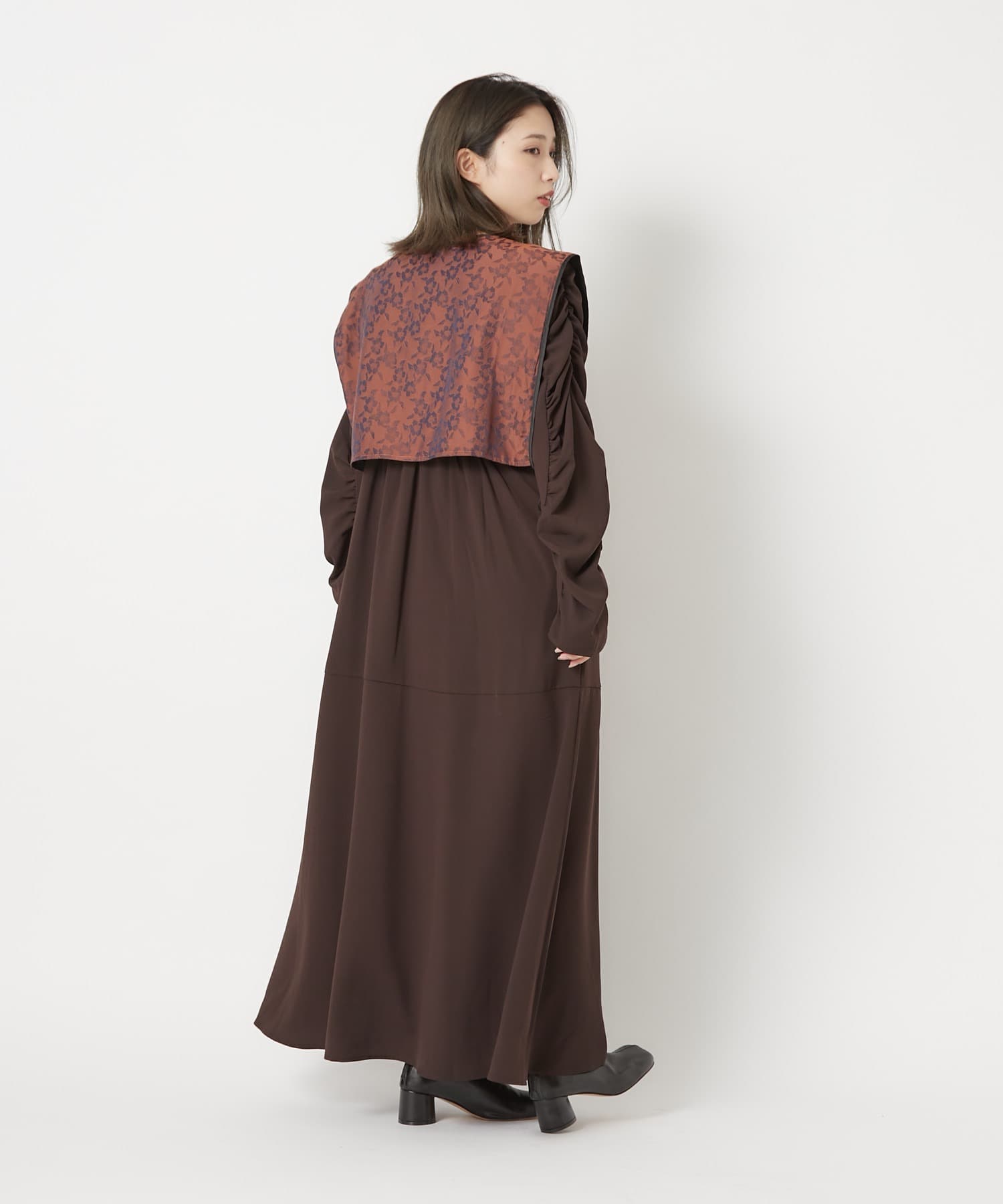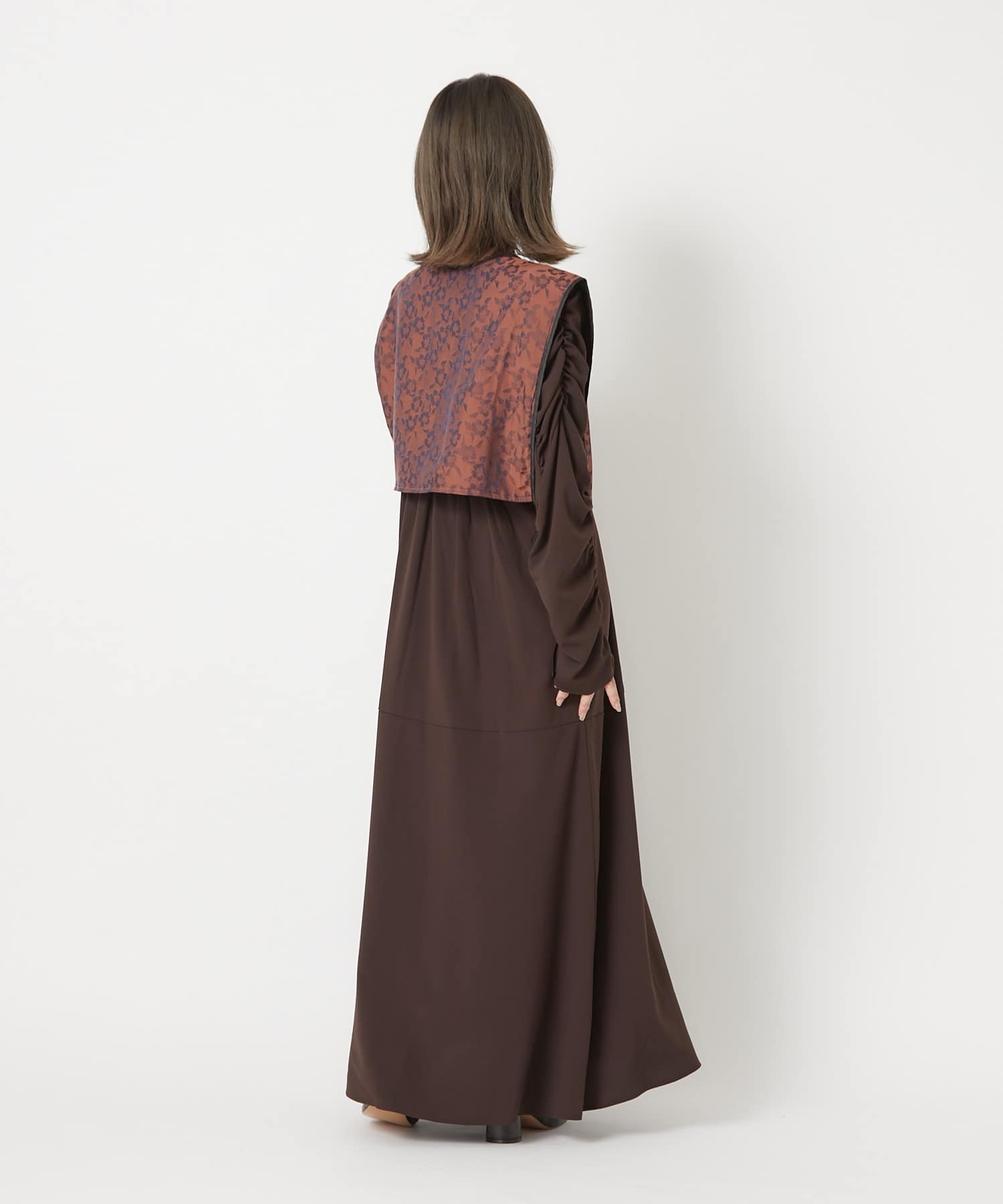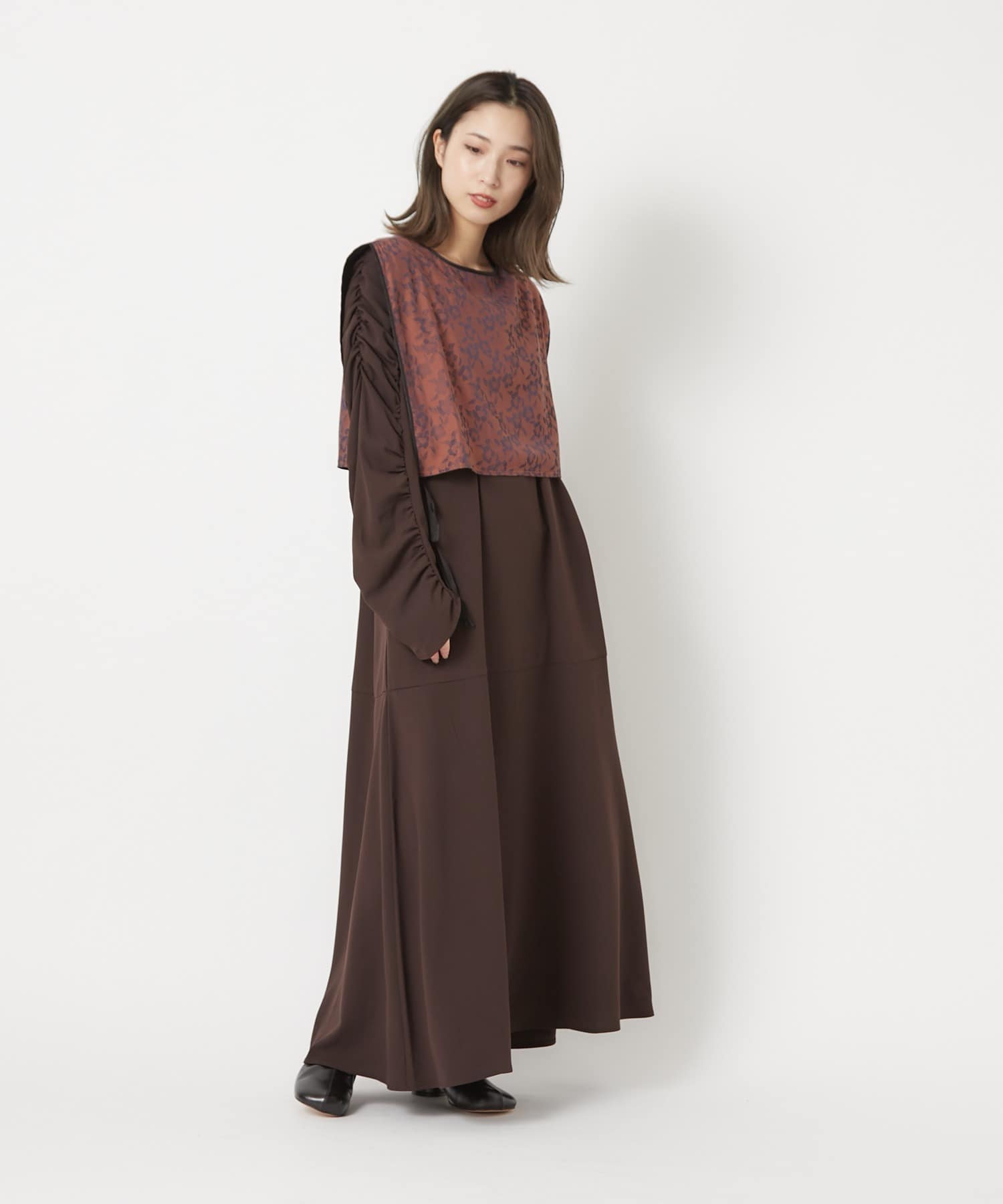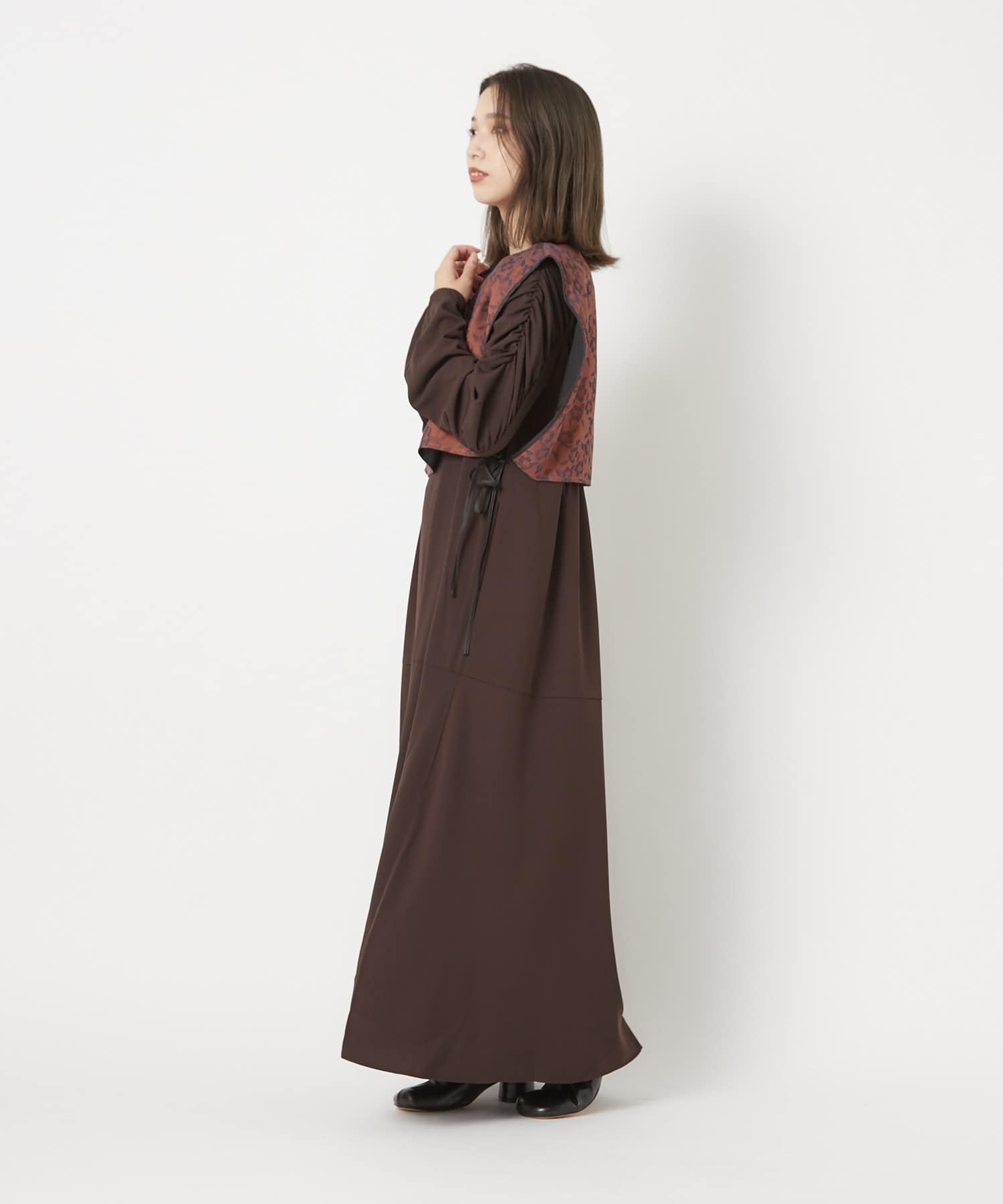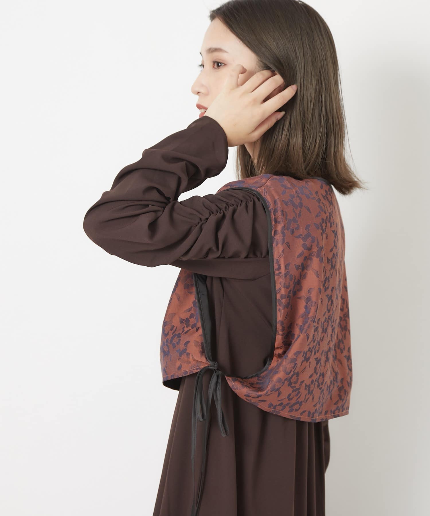 女性らしいシルエットが魅力のワンピースが入荷。さらっとした落ち感の出生地で、着心地の良いアイテム。ベストとのセットで雰囲気ががらっと変わる1着。上品な光沢感のベストで、大人な雰囲気を感じる柄デザイン。プラスするだけで、女性らしさがさらにアップする万能アイテムです。取り外しも可能なので、シンプルな気分の日にはワンピース1枚でも◎袖ギャザーや、裾フレアなどデザイン性のあるシルエットなので、シンプル過ぎない1着に。落ち着いたカラー展開も魅力で、季節感を楽しめるワンピース。