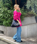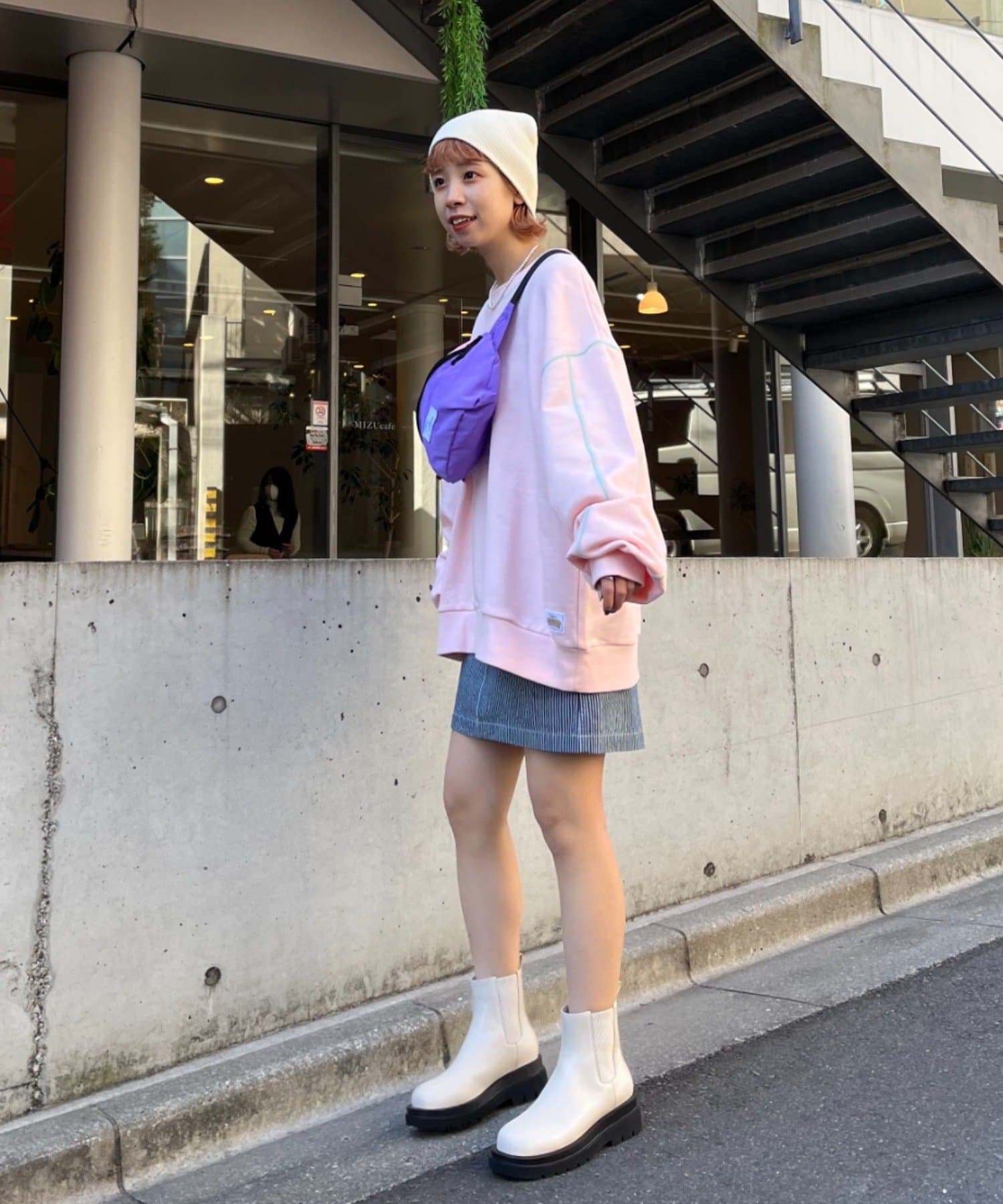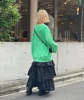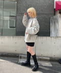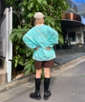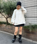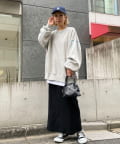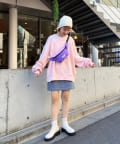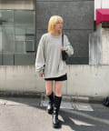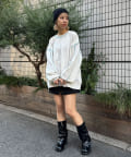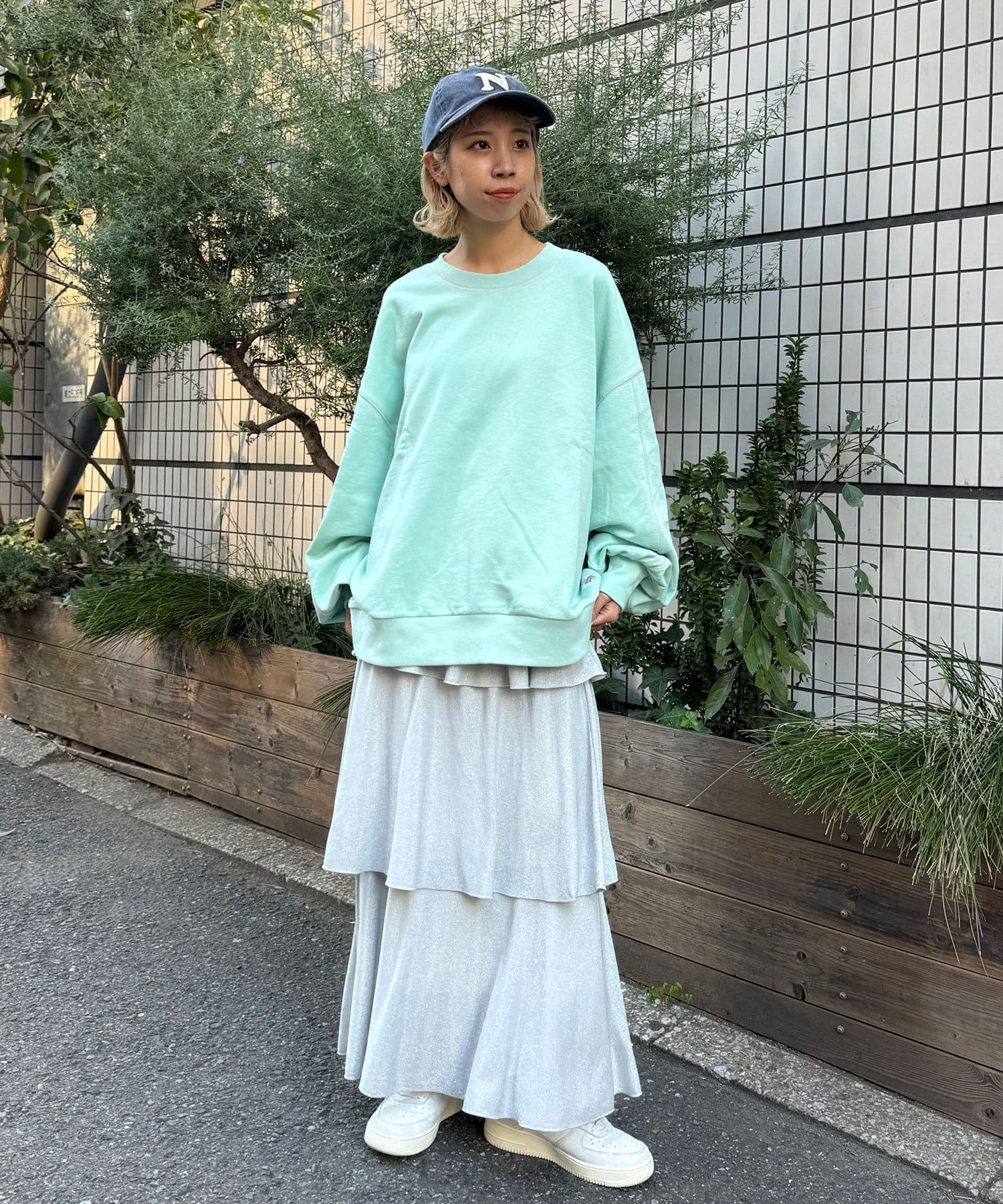 ゆったりとしたかなりオーバーなサイズ感で、お尻がすっぽり隠れる丈感でした。シンプルなデニムやタイトスカート合わせがおすすめです!トップスにボリュームがあるのでボトムにはショートパンツやスラックス合わせなどスッキリしたものも◎ロングシーズン活躍すること間違いなしのアイテムです!