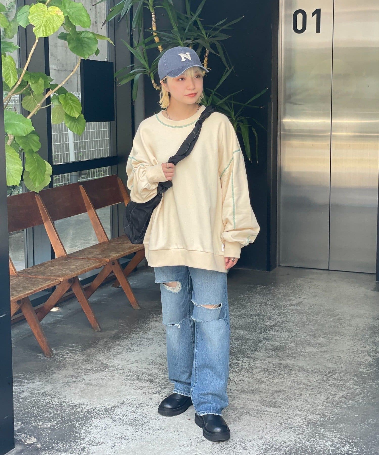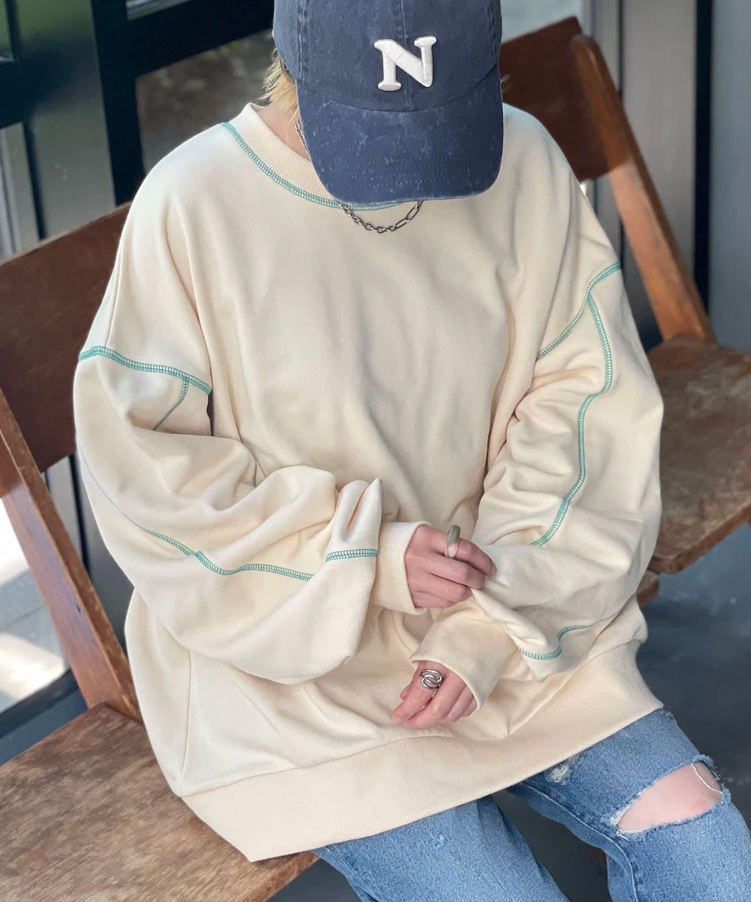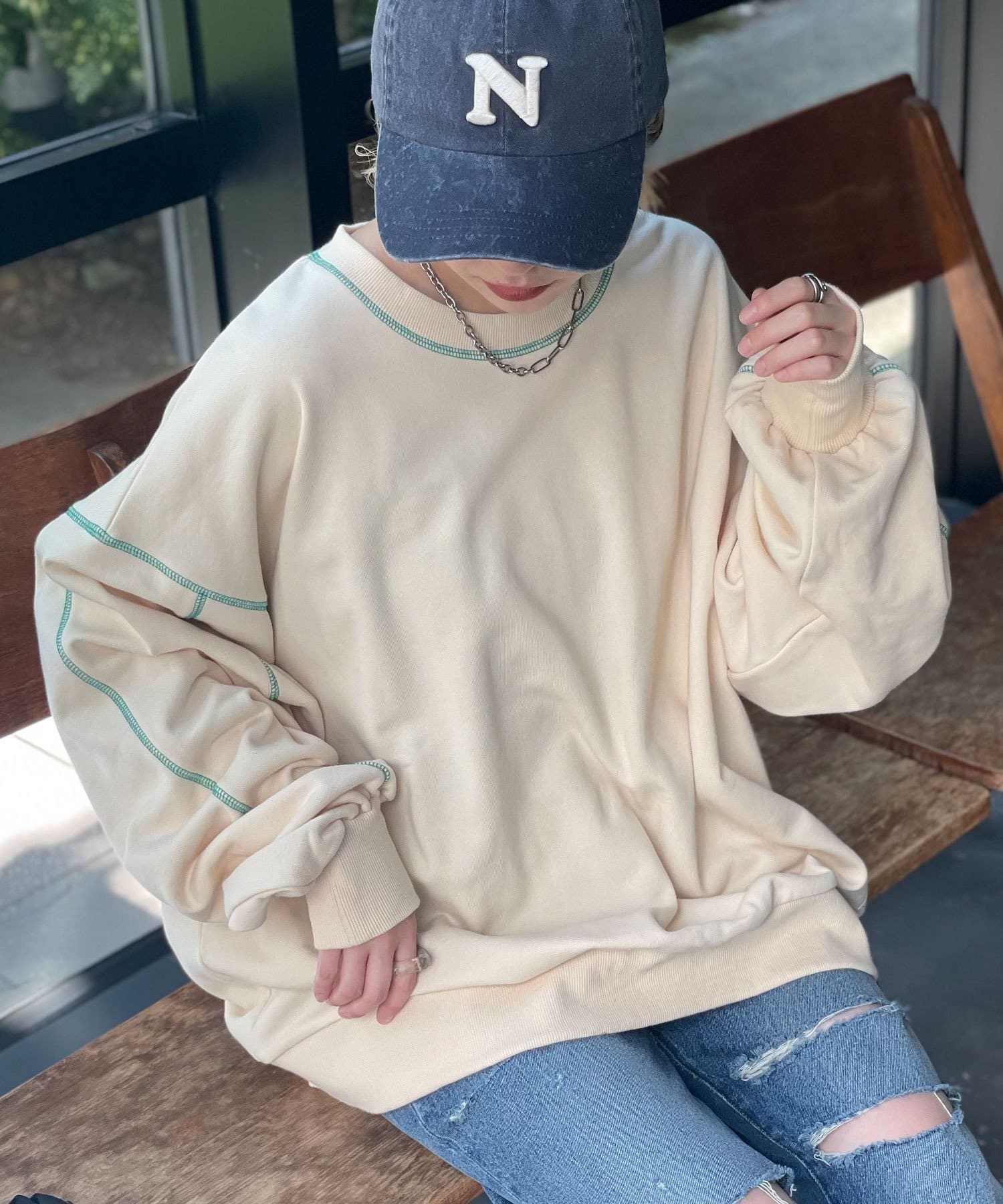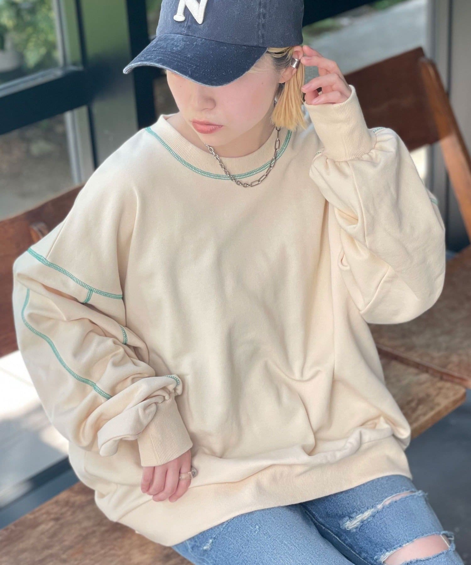 【HELLO.SANFRANCISCO/ハローサンフランシスコ】配色ステッチオーバースウェット