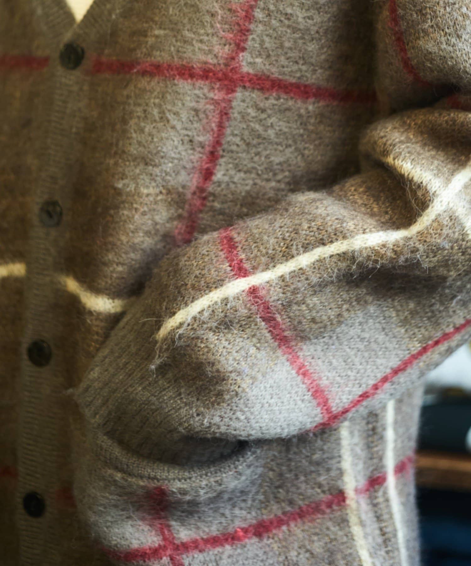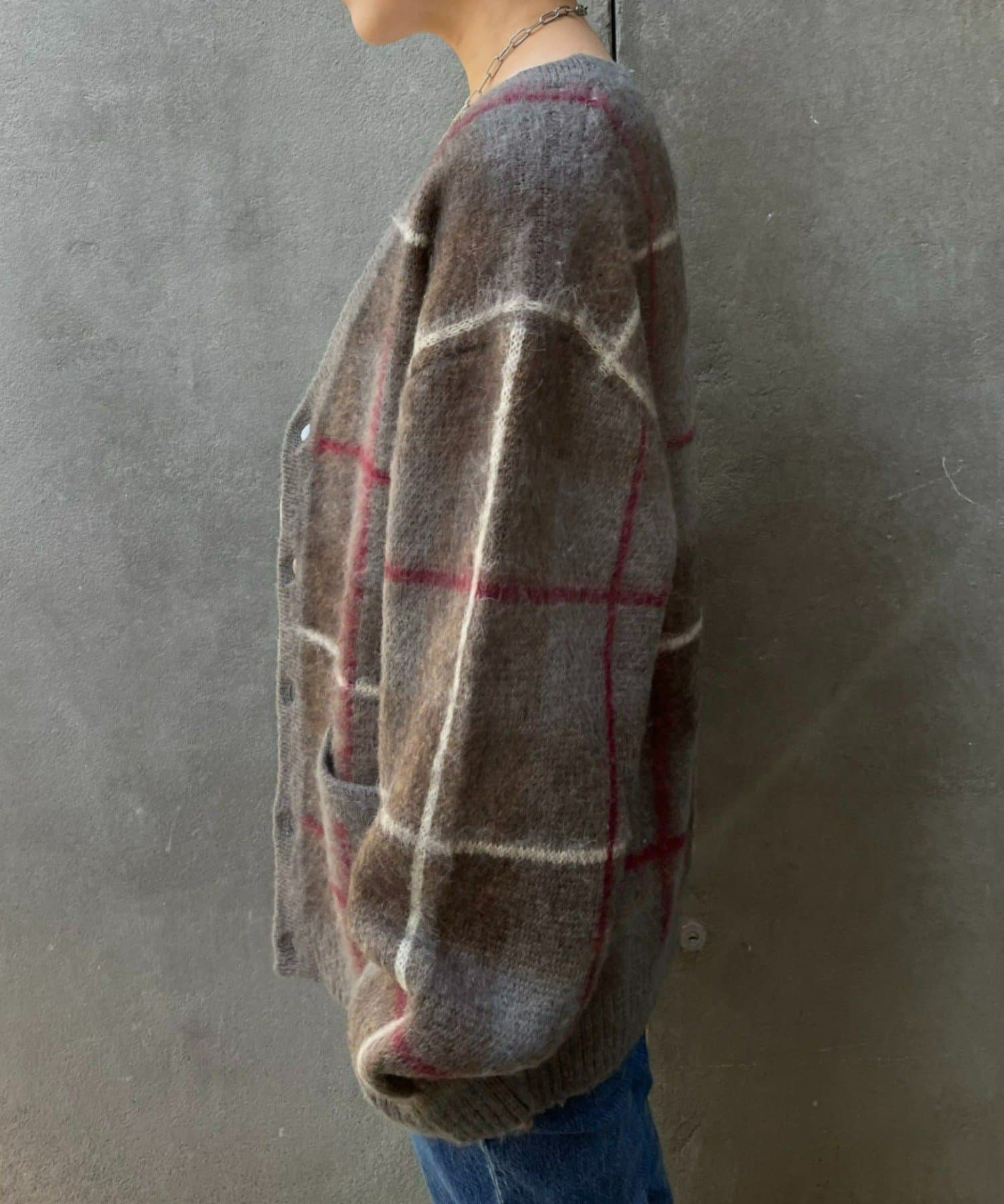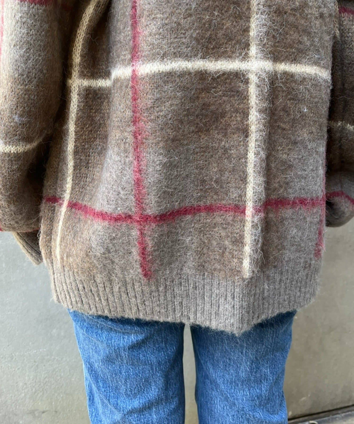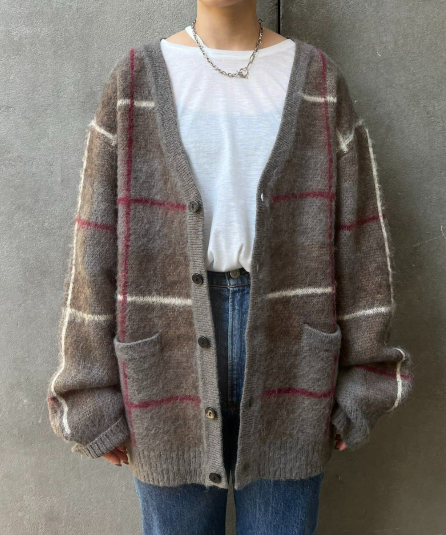 “60年代の古着ニット風”レトロなチェック柄のモヘアカーディガン