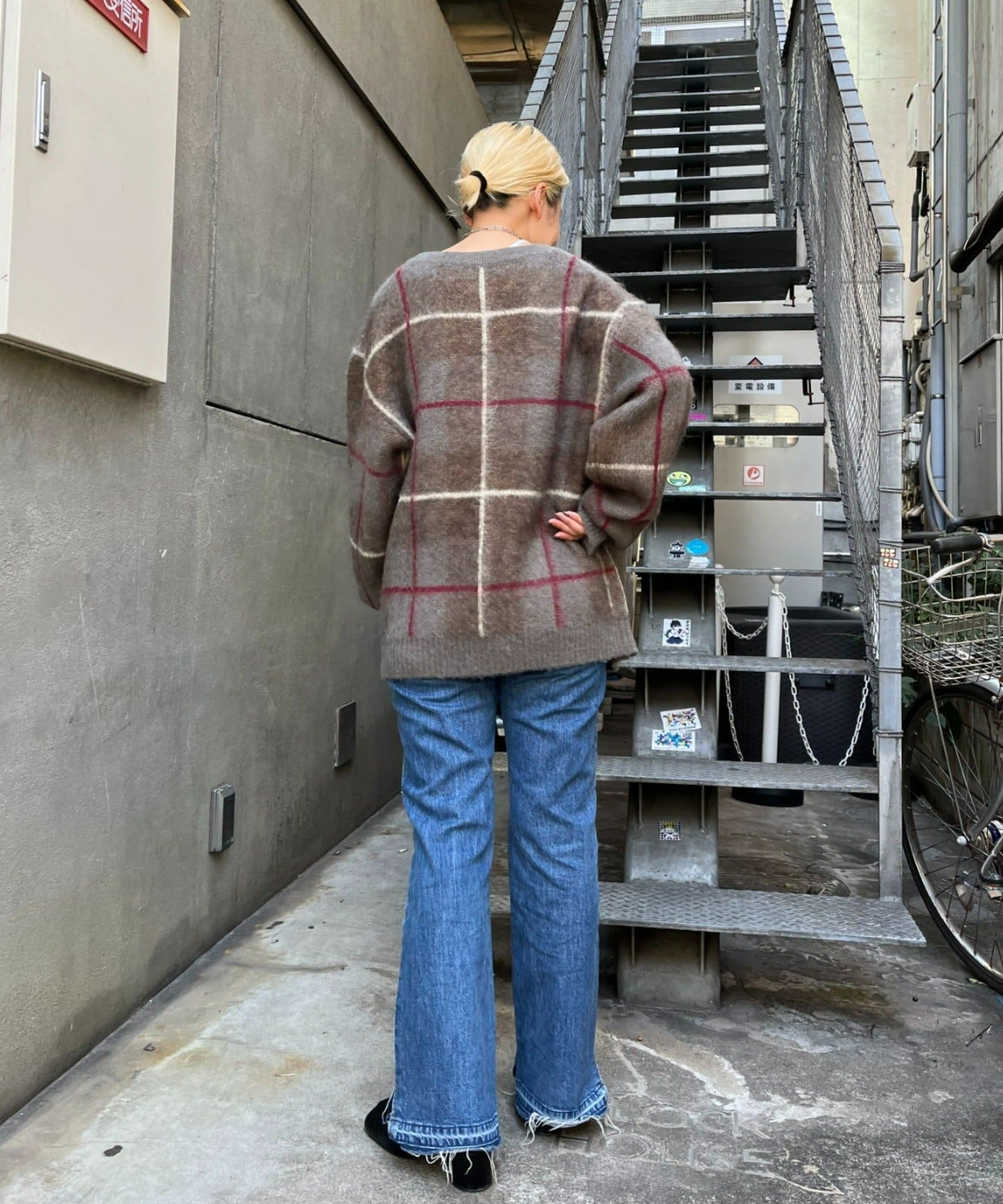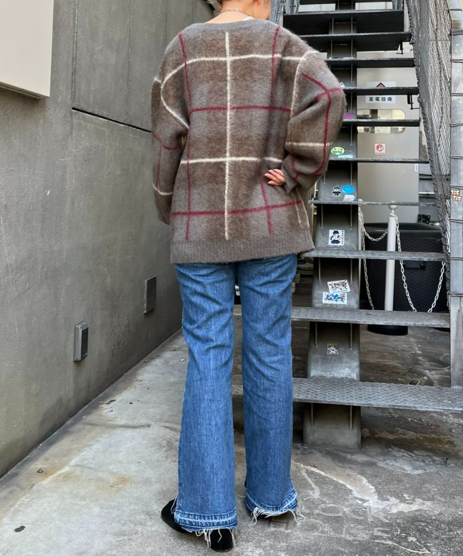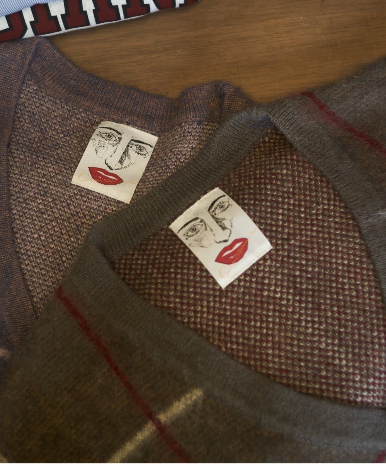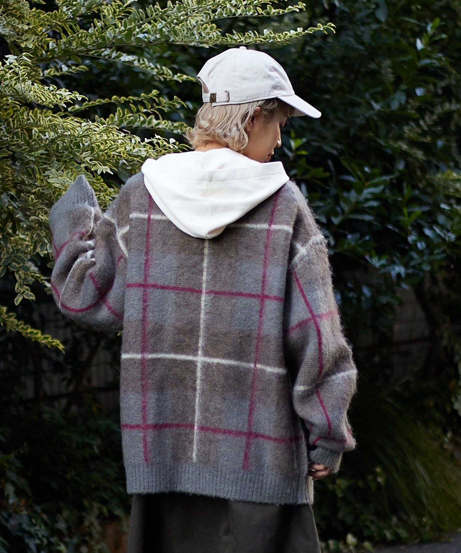 “60年代の古着ニット風”レトロなチェック柄のモヘアカーディガン