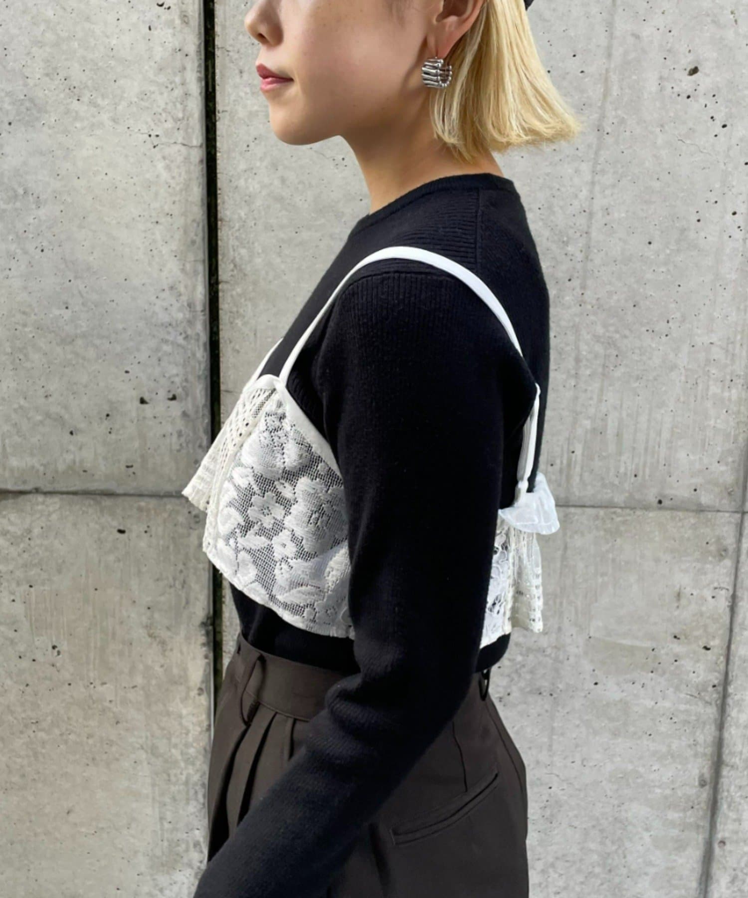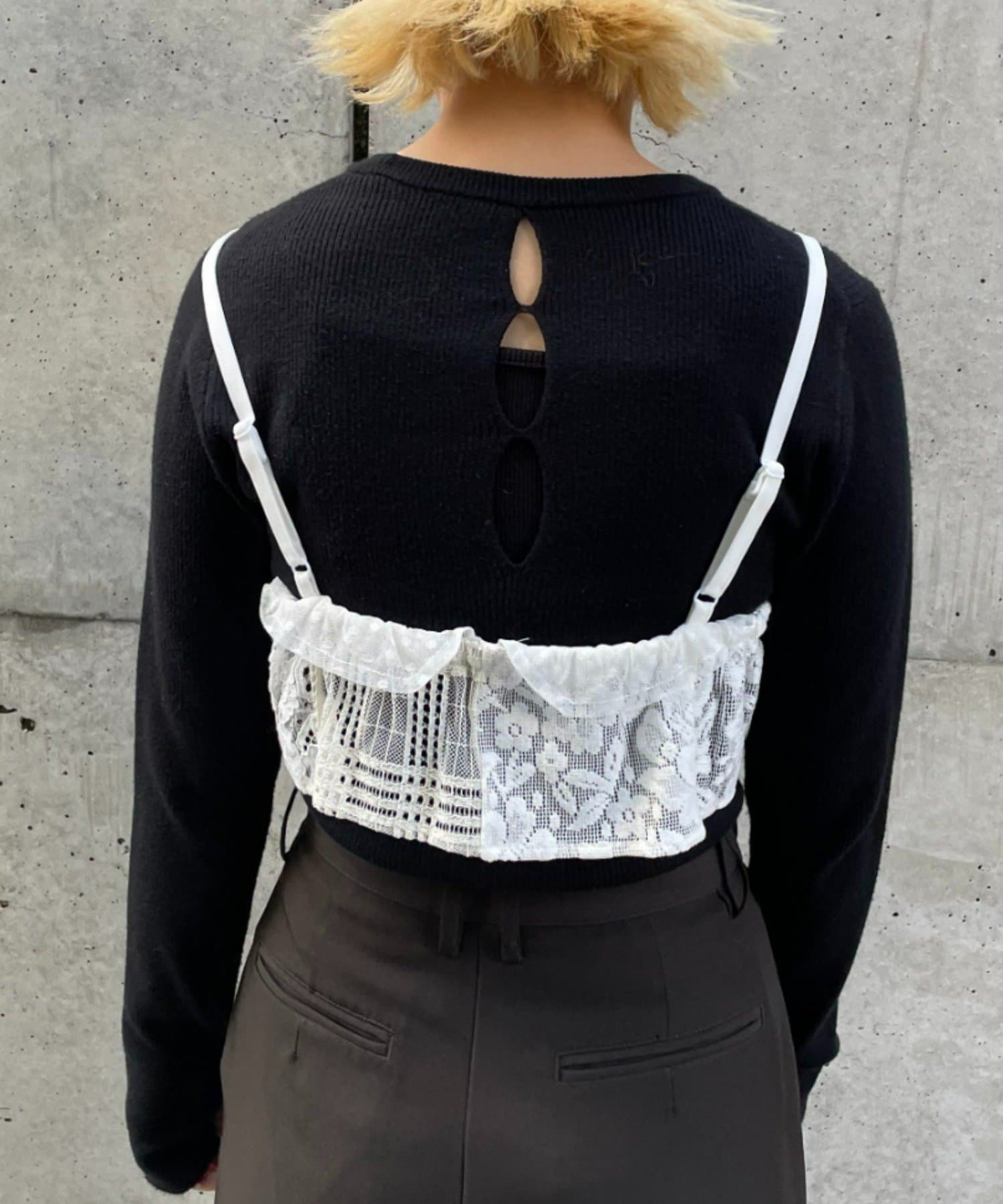ベスト / レイヤード / キャミ / レースキャミ / レーズトップス / 古着風 / リメイク / 透け感 / ショート丈 / クロップド丈 / ショートトップス / クロップドトップス /