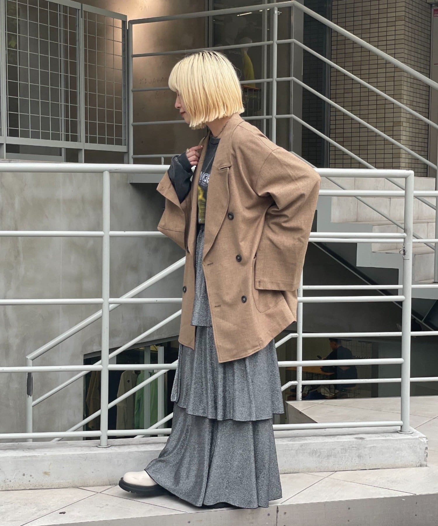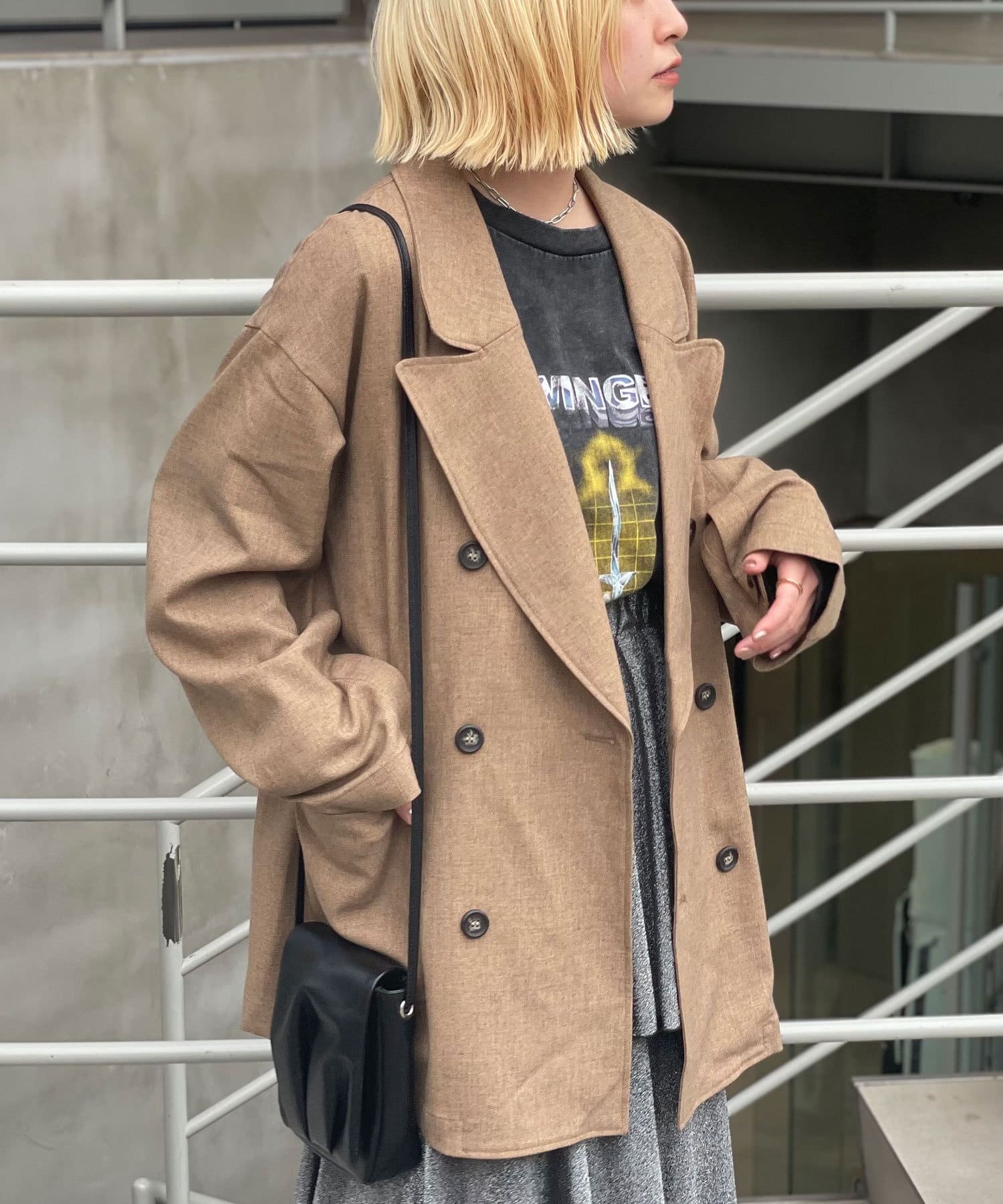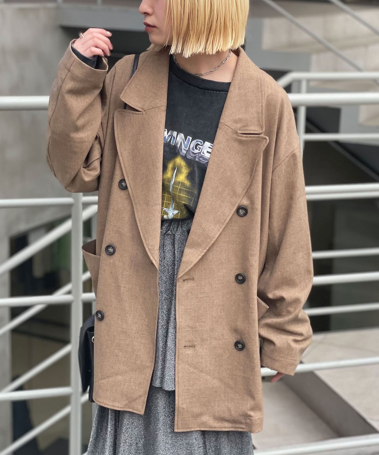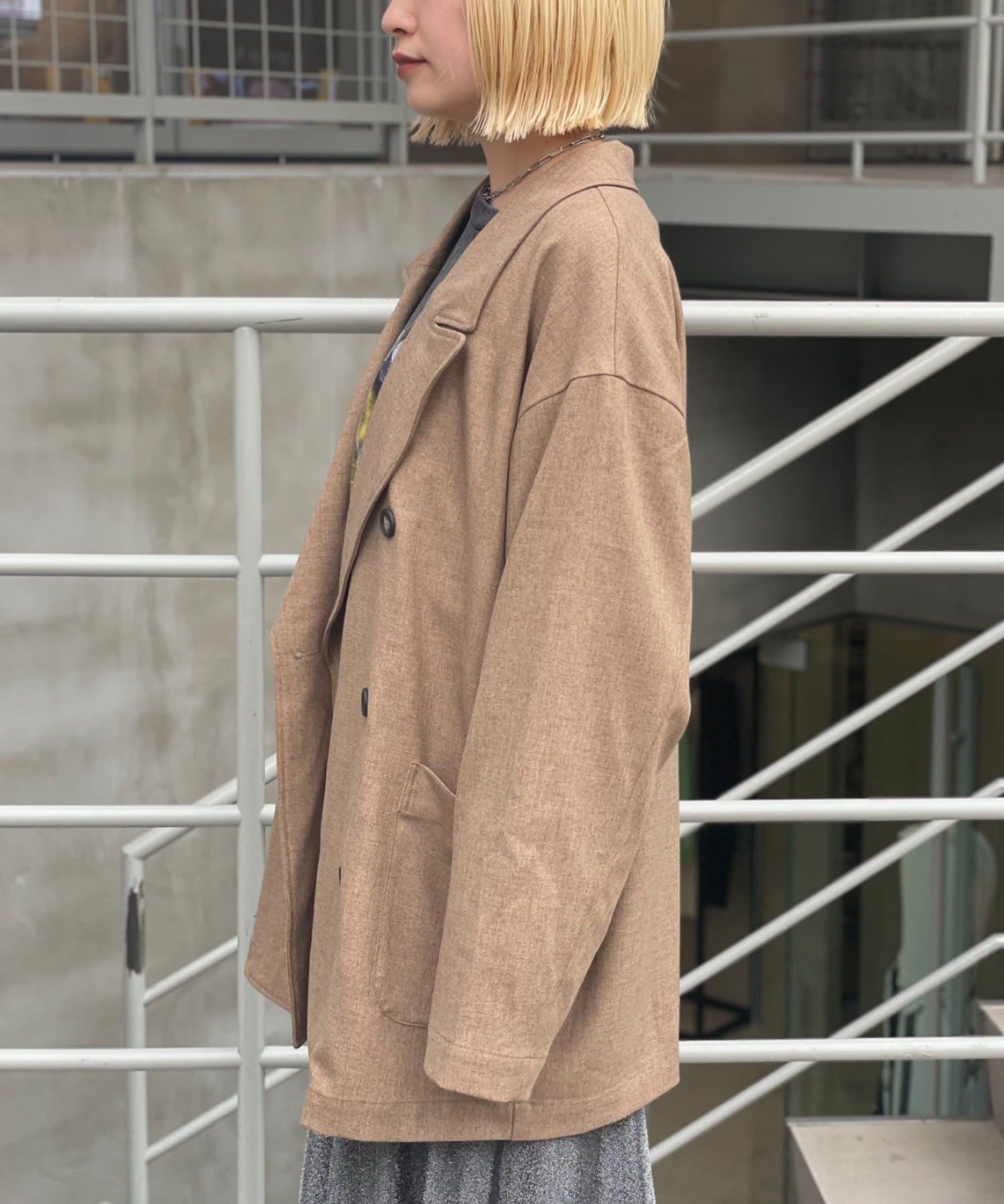 ジャケット / テーラードジャケット / オーバーサイズ / ビックシルエット / ミドル丈 / 襟 / ダブルボタン / ベーシックカラー / チェック / レイヤード / 羽織り / 秋アウター / カジュアル / レトロ / きれいめ / こなれ感 / ヤング / シーズンムード / 秋