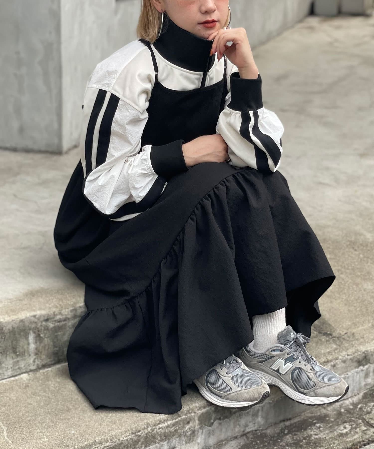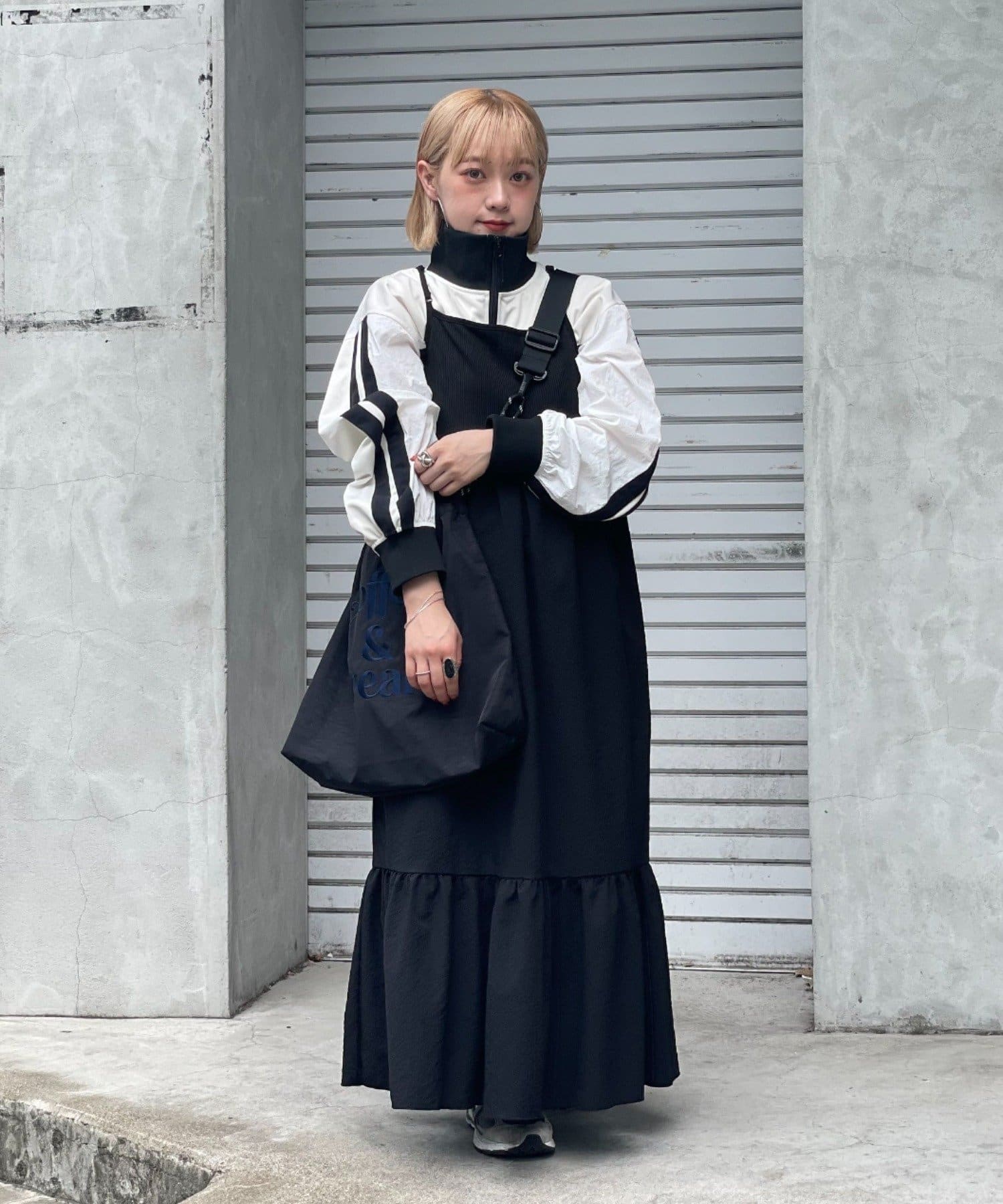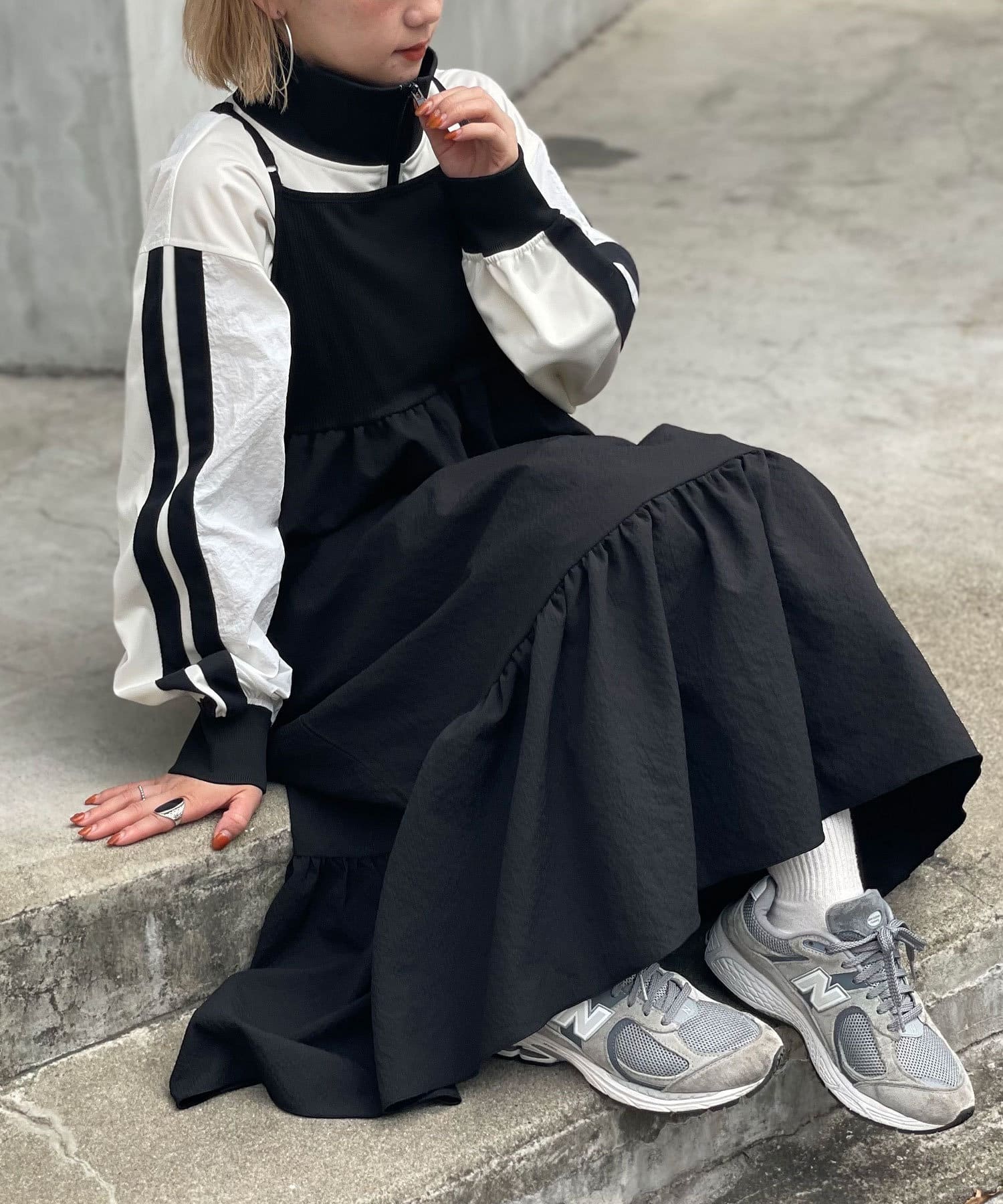 ティアードスカートが可愛らしい印象なので、トラックジャケットやレザーアイテムと合わせた甘辛ミックスなスタイリングがおすすめです◎トレンドのボレロやバンドTシャツ合わせも可愛いです!