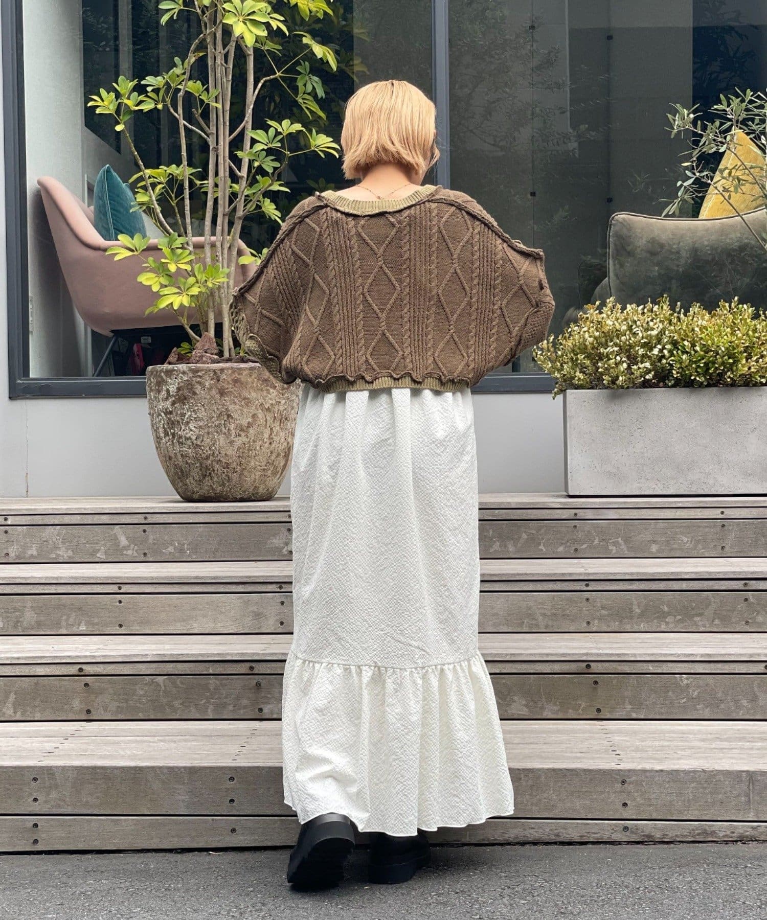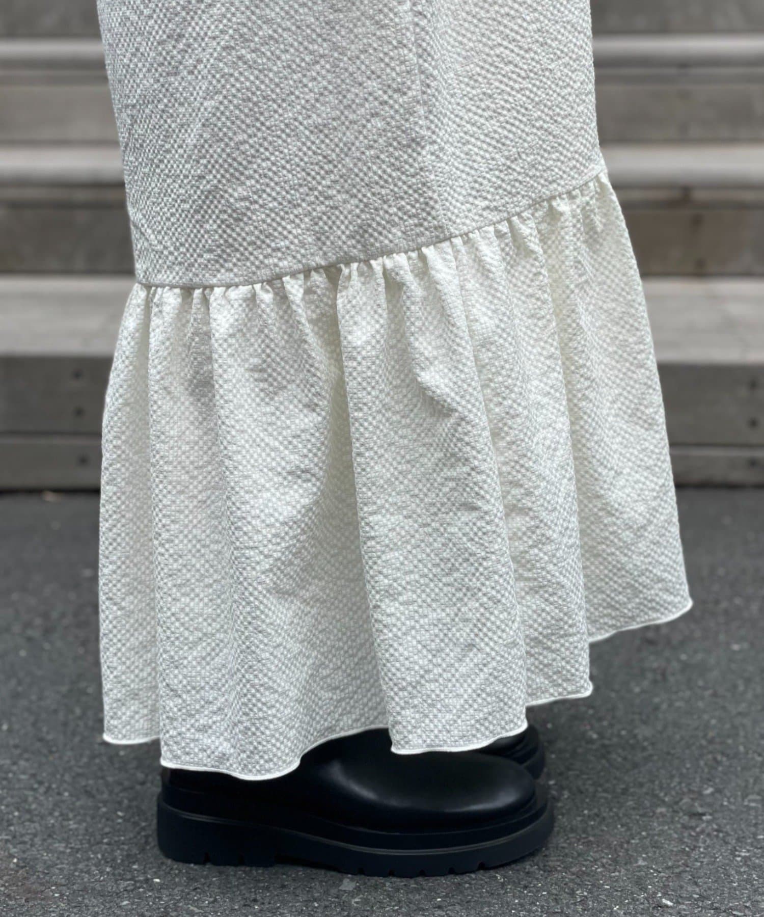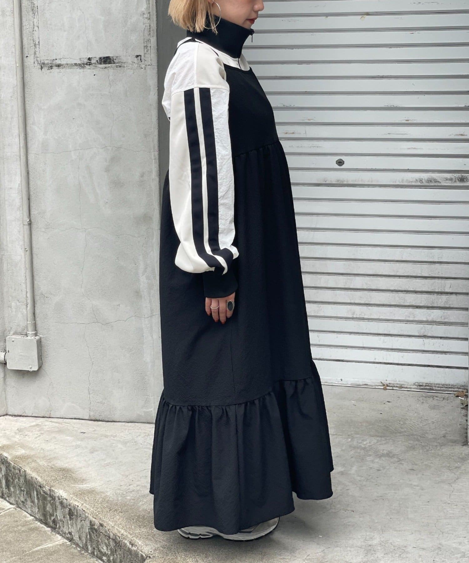 ティアードスカートが可愛らしい印象なので、トラックジャケットやレザーアイテムと合わせた甘辛ミックスなスタイリングがおすすめです◎トレンドのボレロやバンドTシャツ合わせも可愛いです!