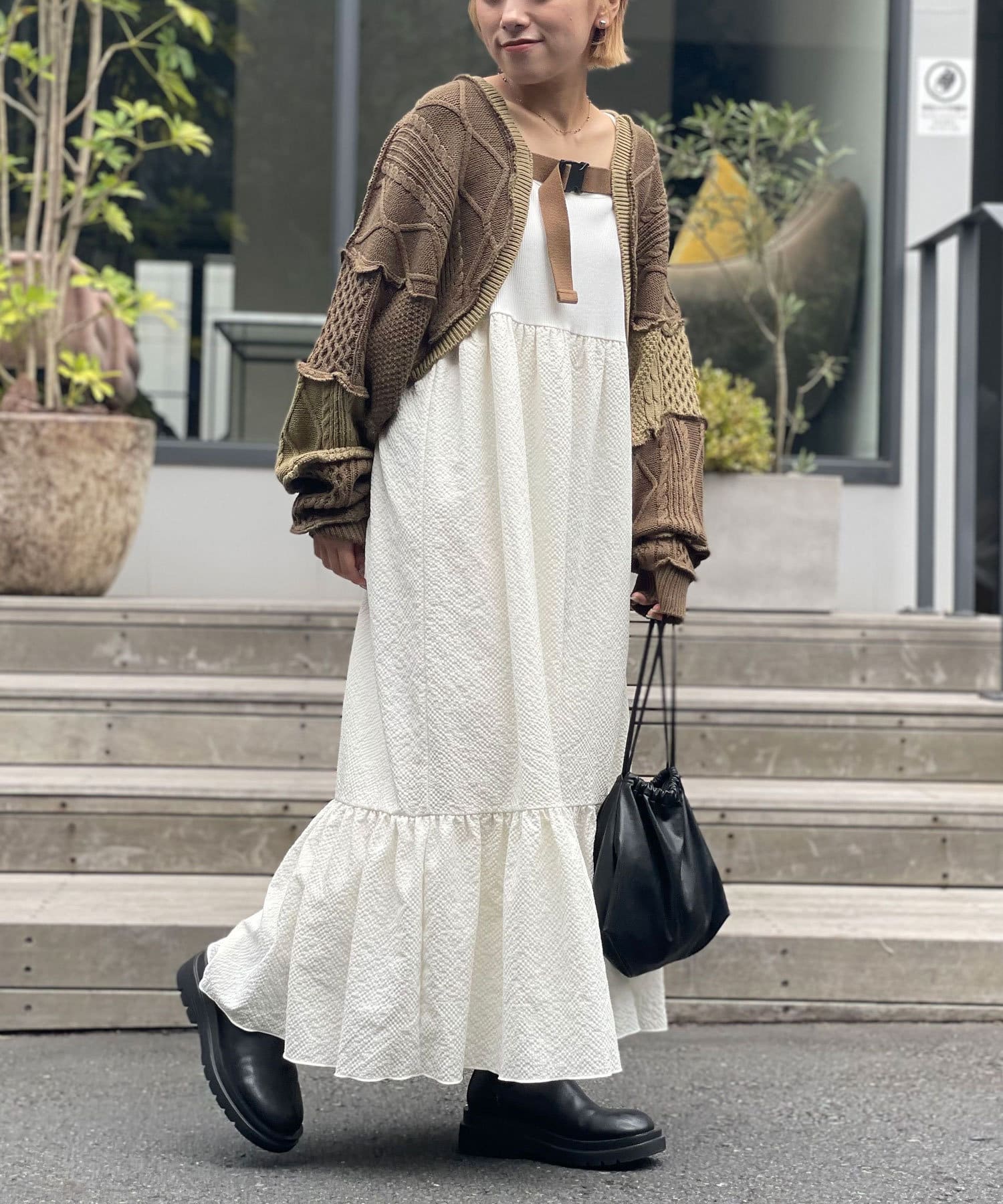 【Ciaopanic】リブ切替ティアードキャミワンピース