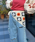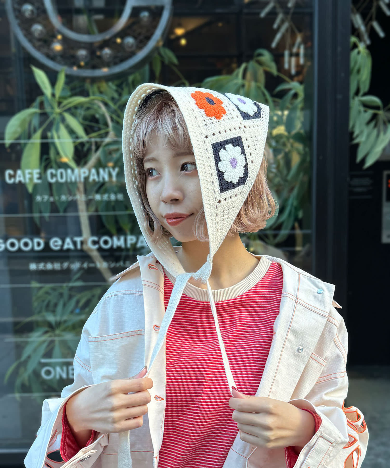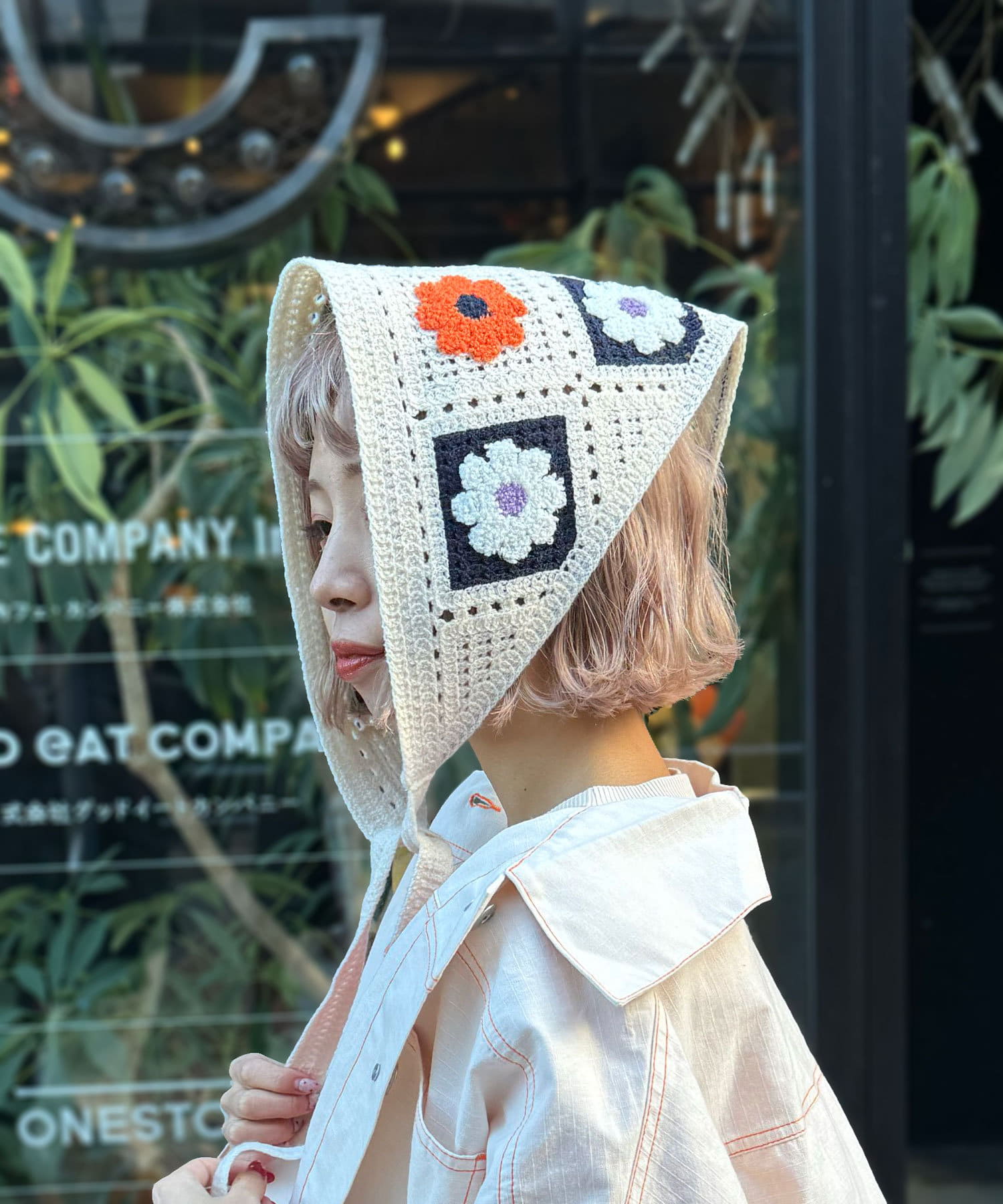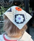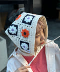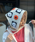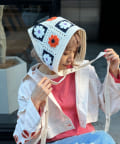 花柄のクロシェ編みが可愛いトレンド感たっぷりの2WAY頭巾
