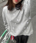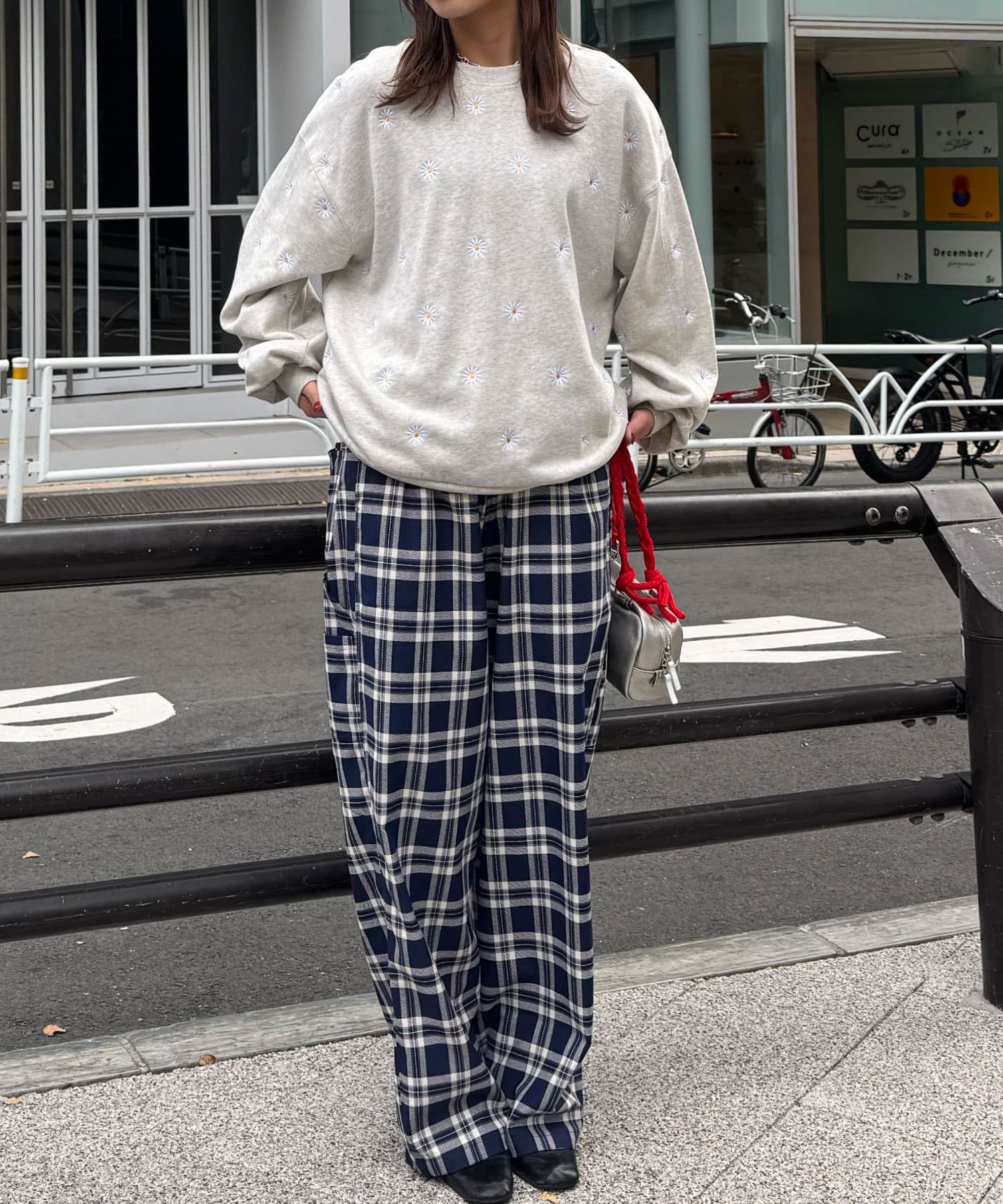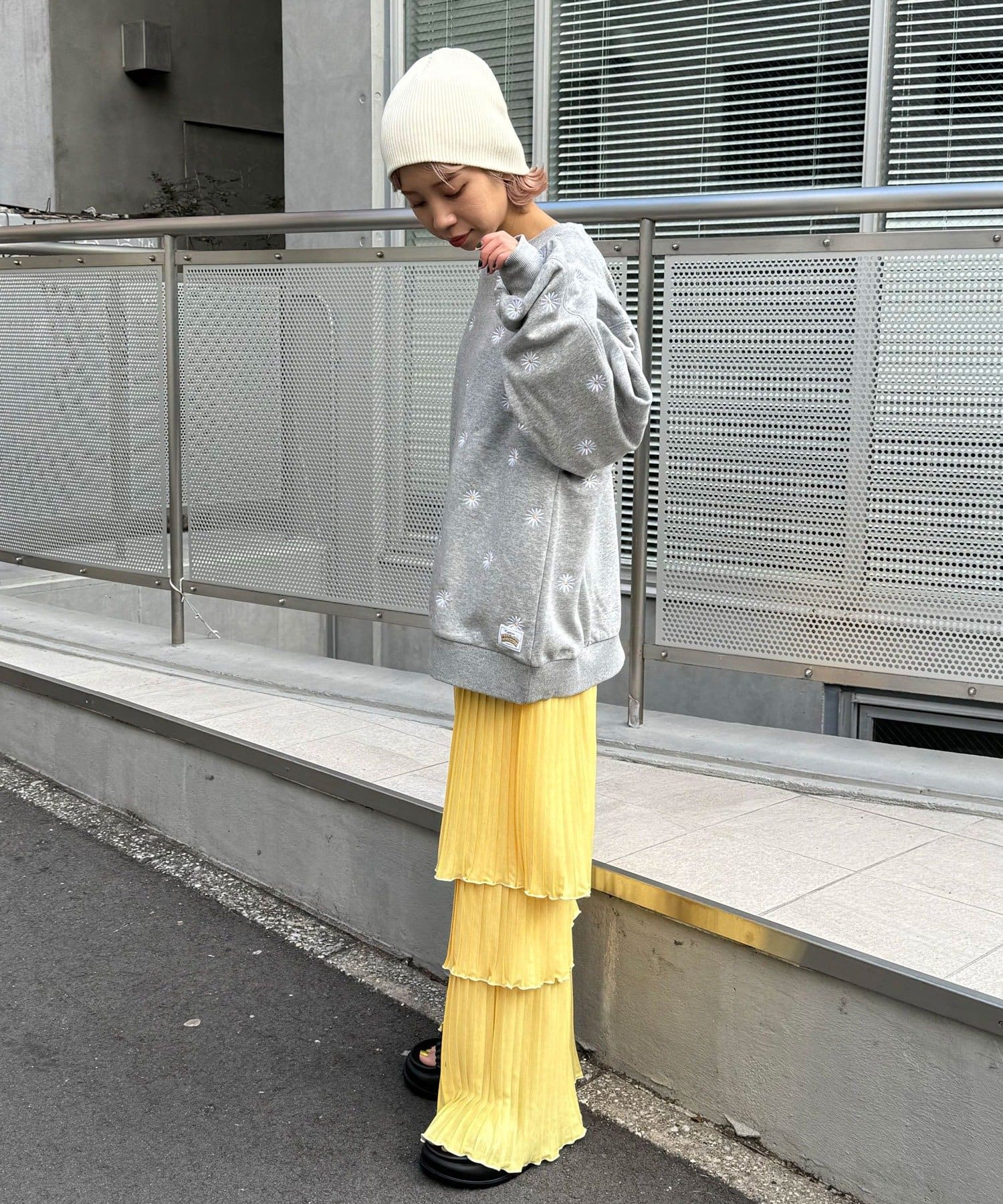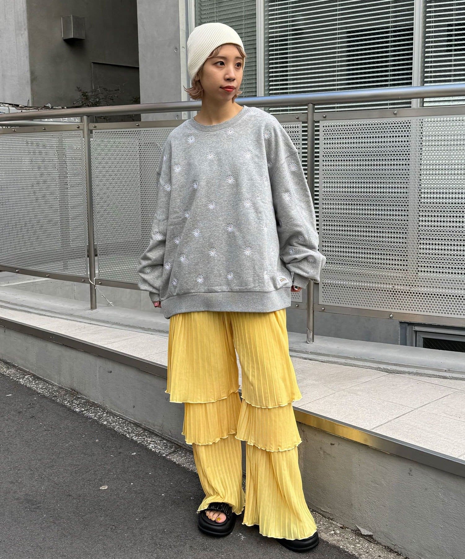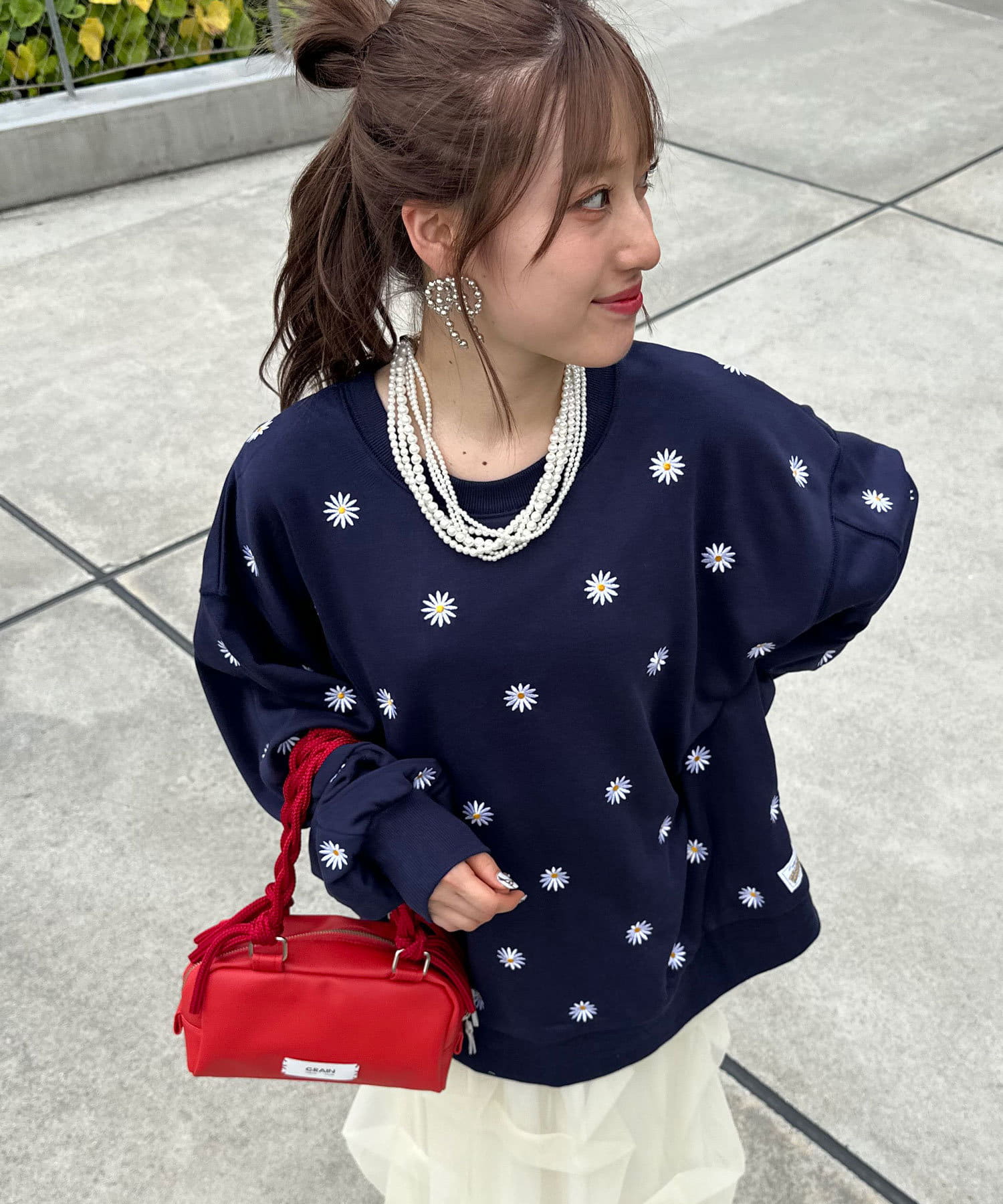 マーガレット刺繍が全体に散りばめられたオーバーサイズスウェット。