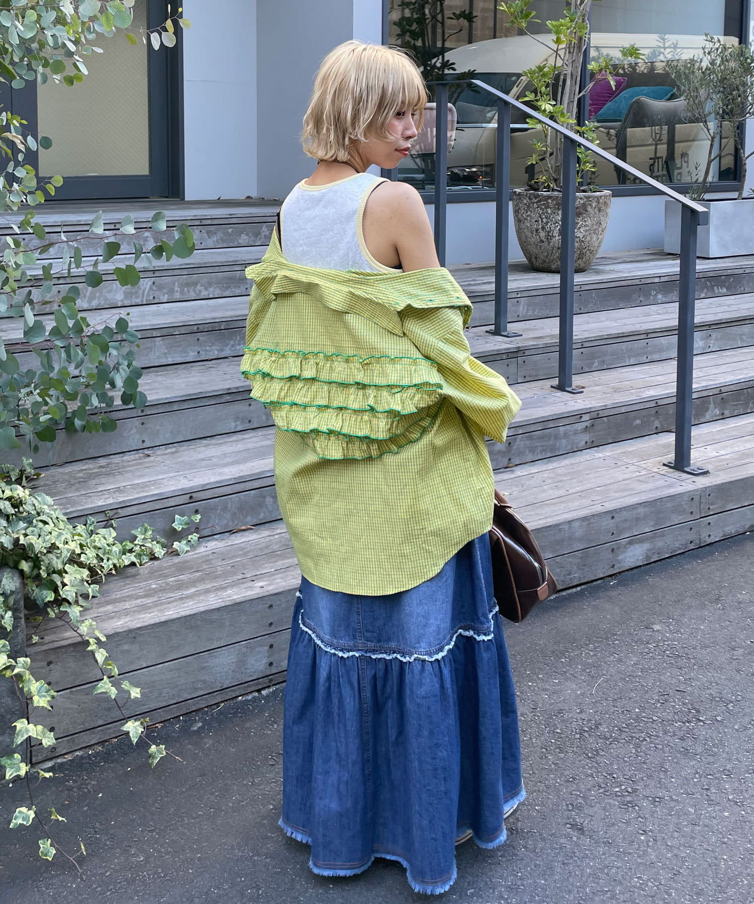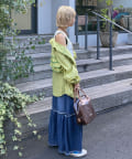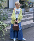 薄手のカーディガンや、シャツ・ブラウスなどをレイヤードしたスタイリングがおすすめです。