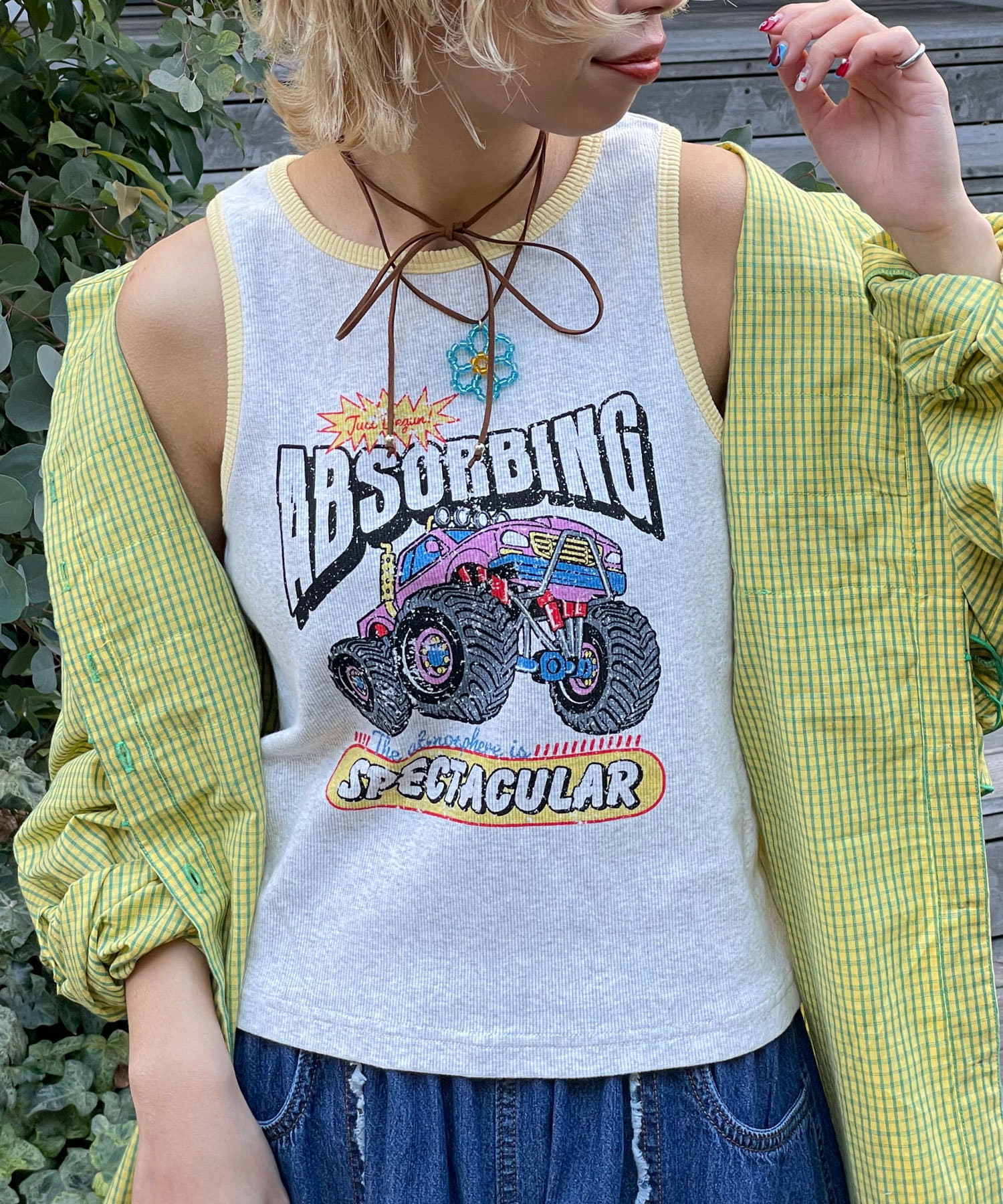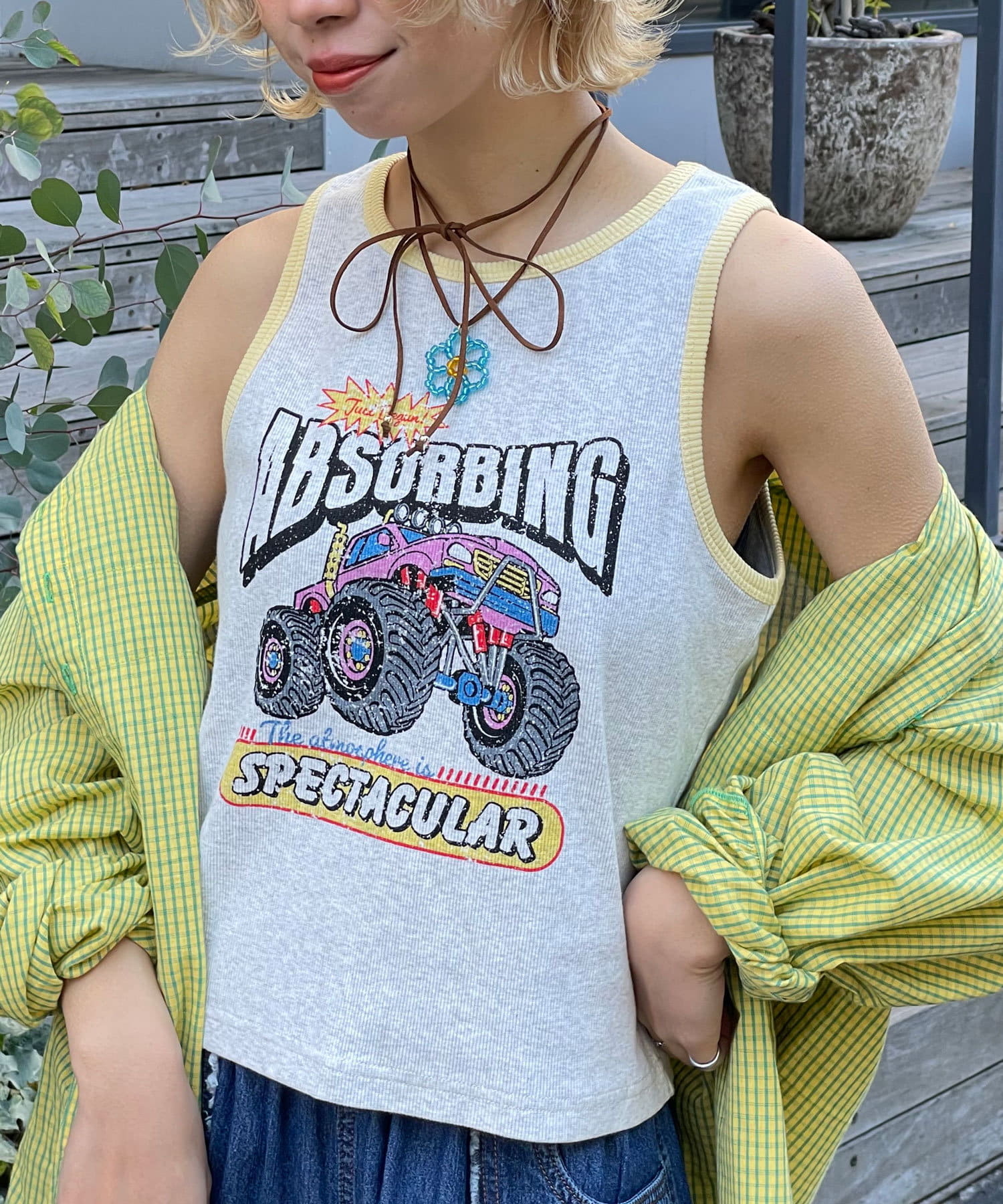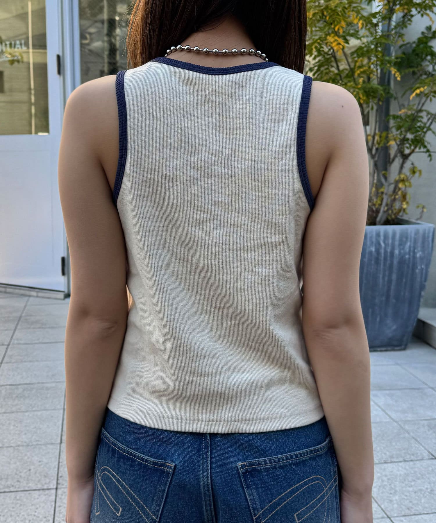 目を惹くフロントロゴがコーデの主役になるタンクトップ。