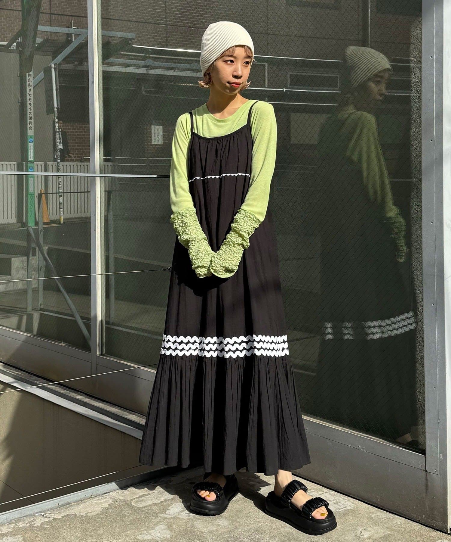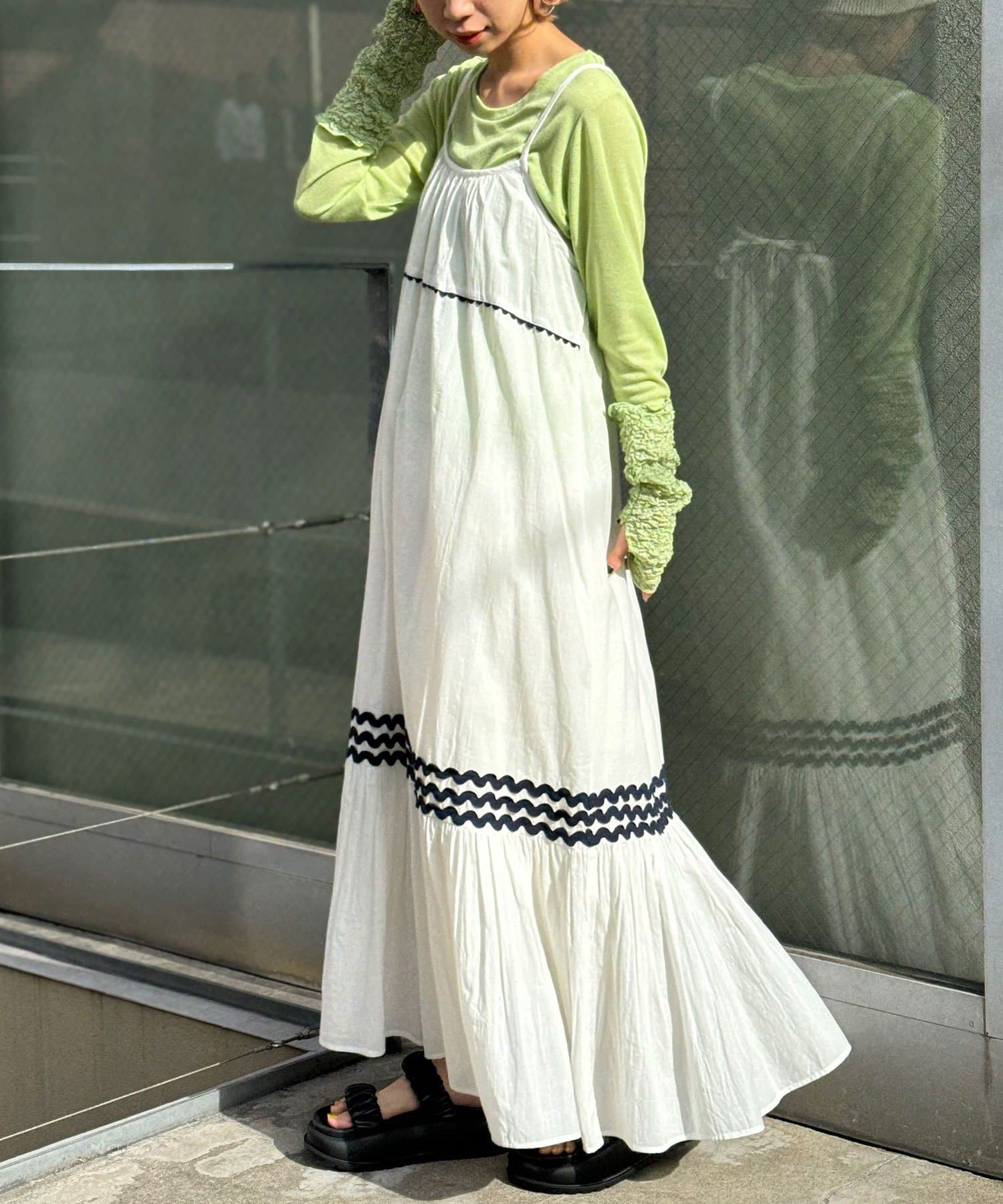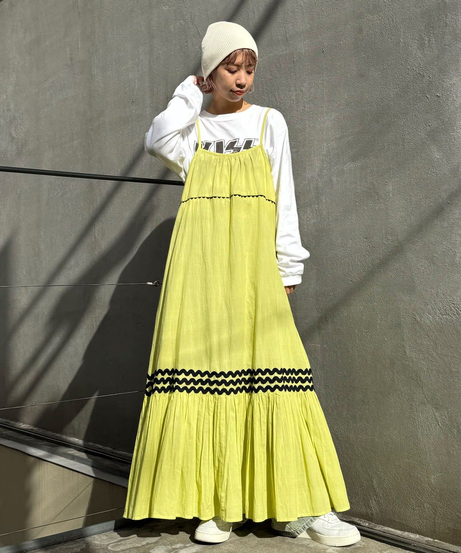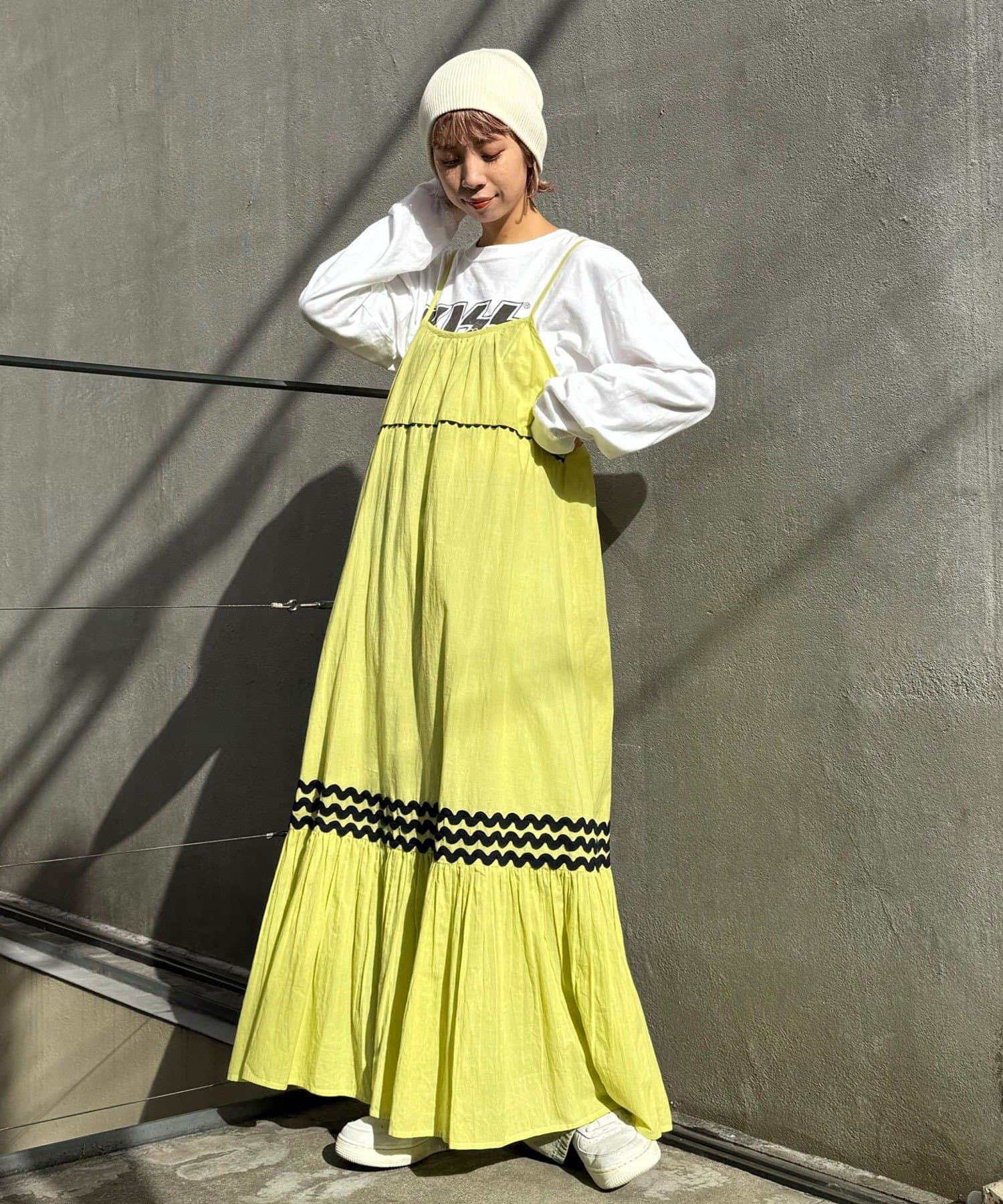 簡単にレイヤードコーデを楽しめるキャミワンピースは一枚は持っておきたいアイテム。