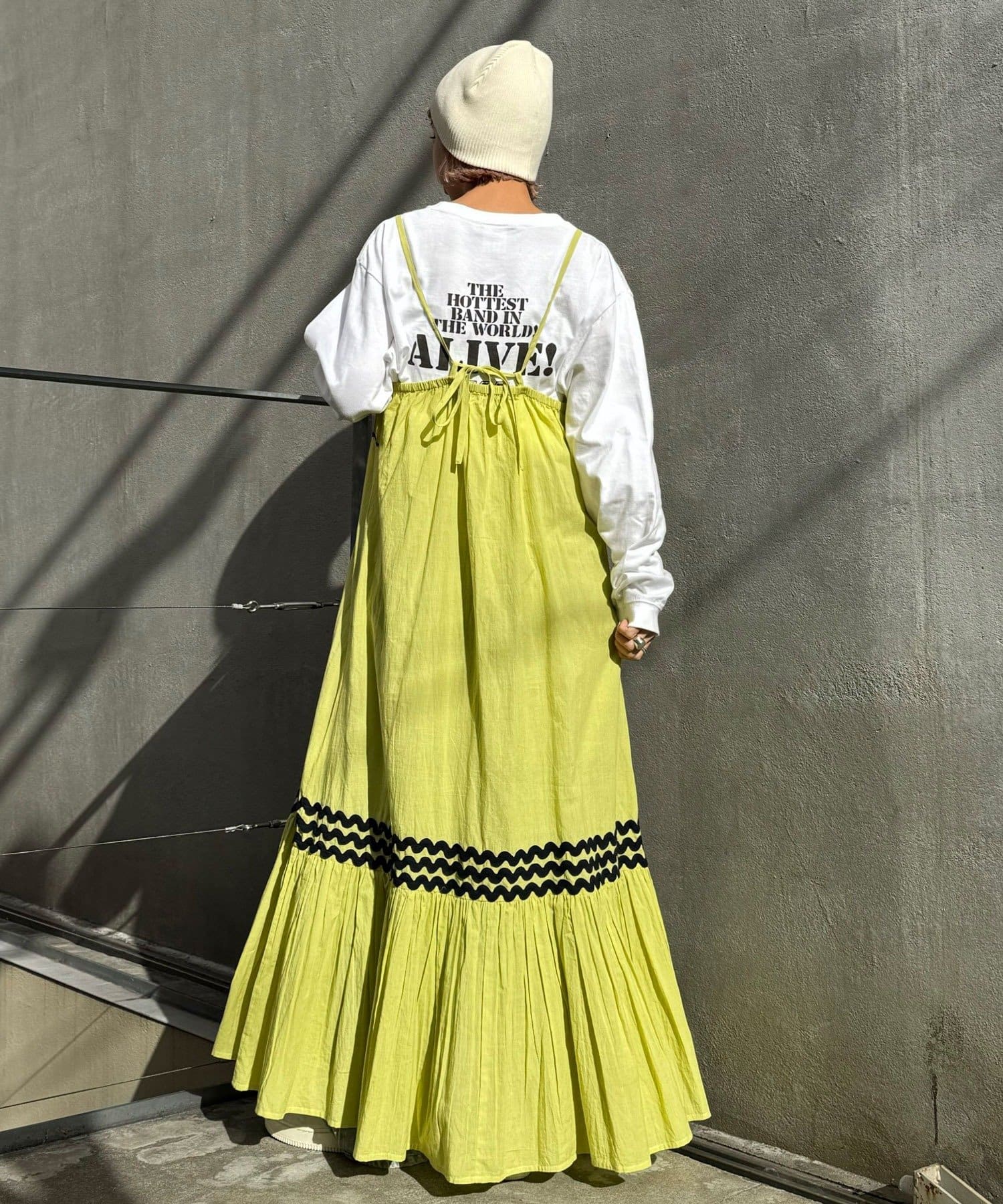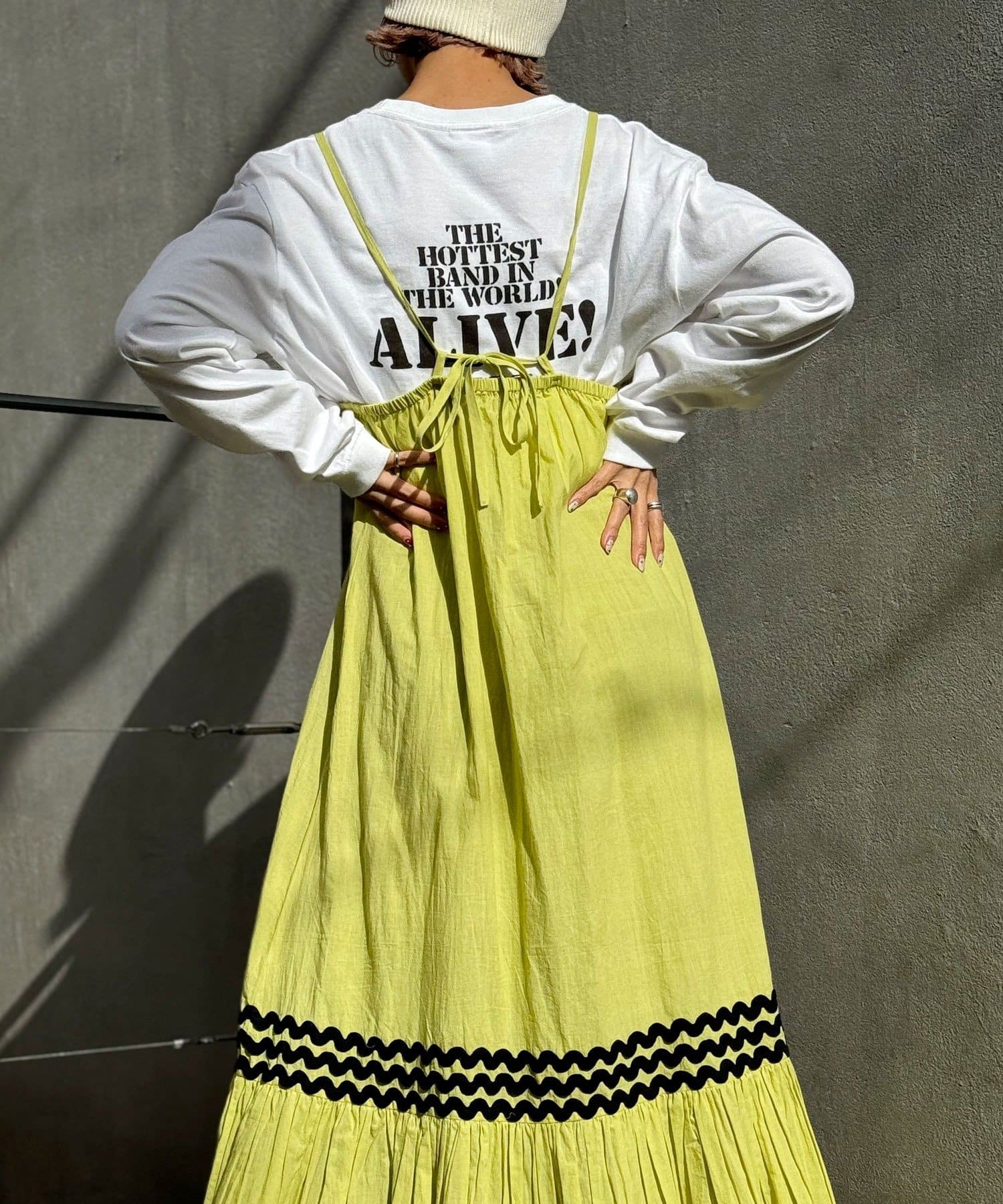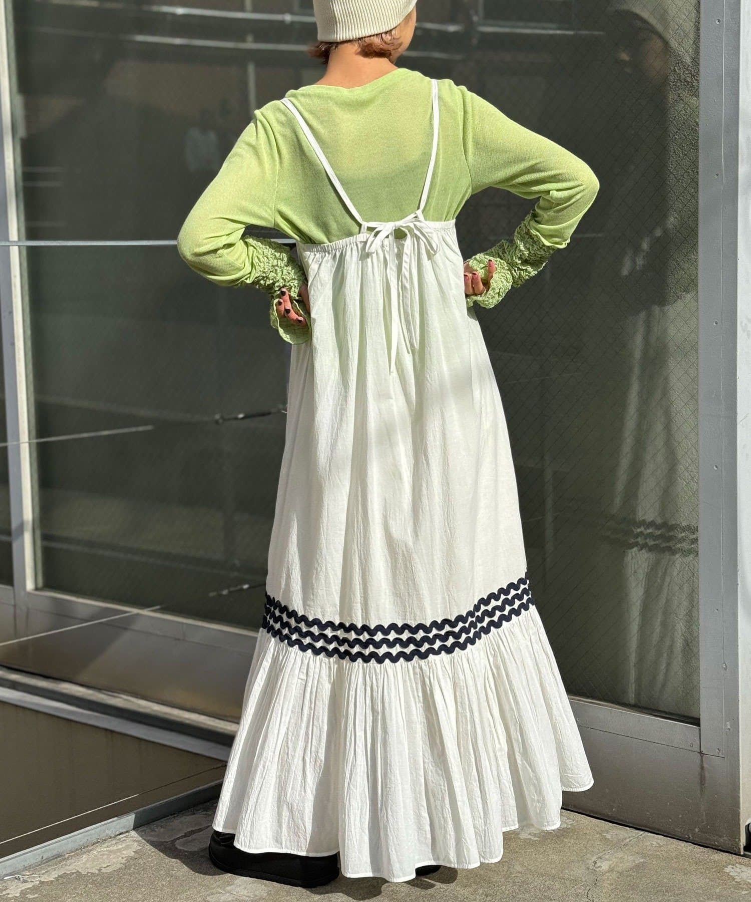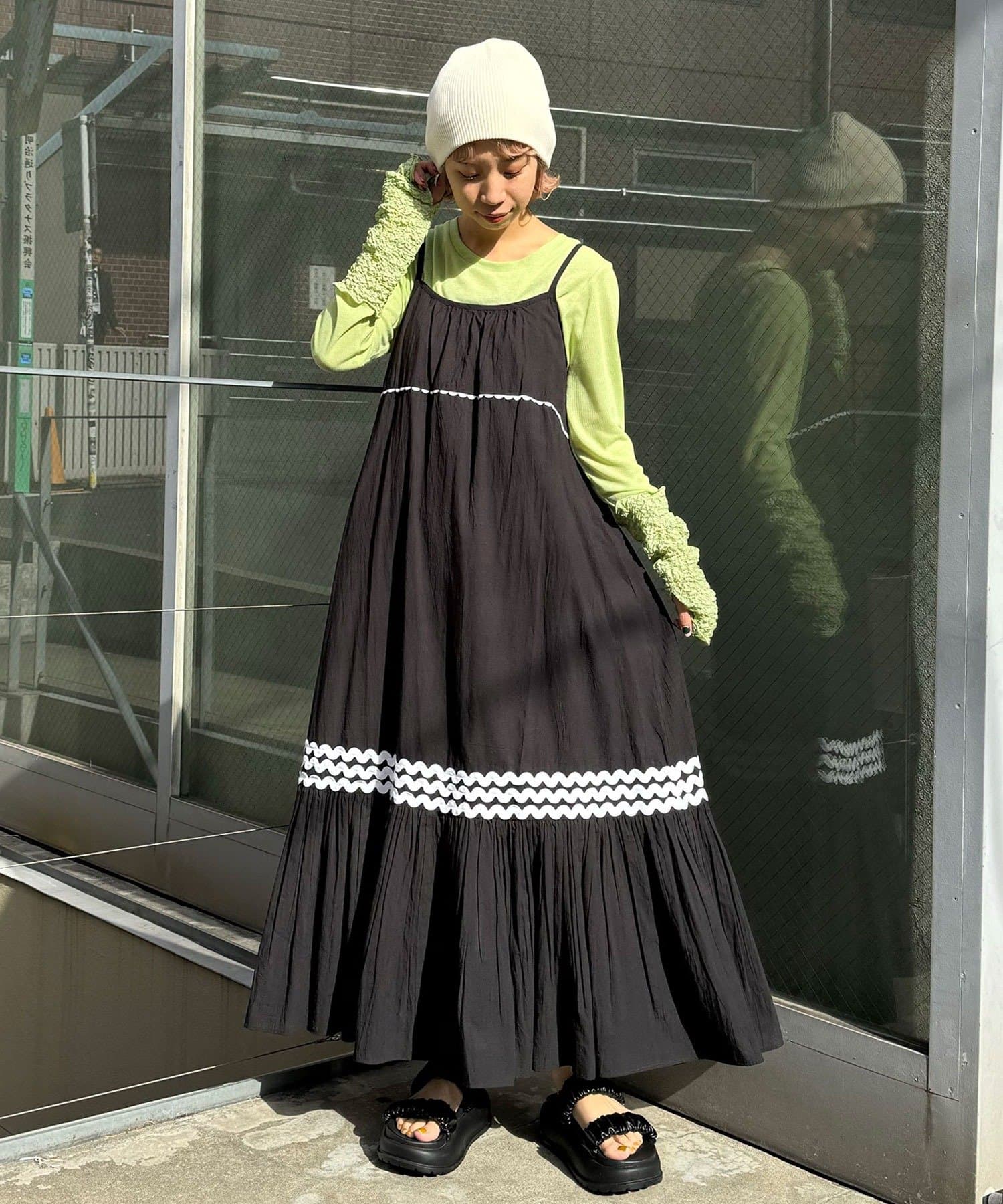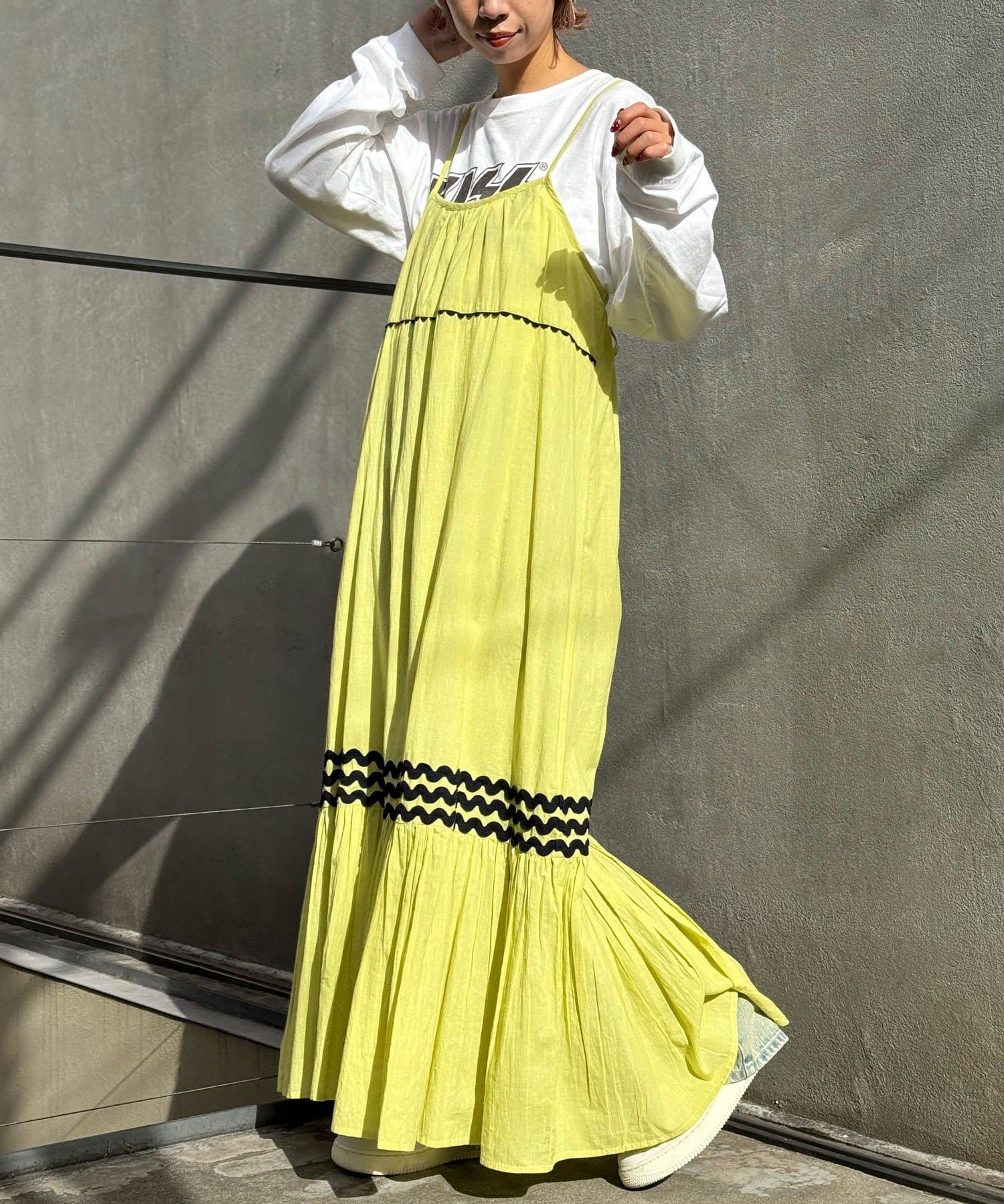 簡単にレイヤードコーデを楽しめるキャミワンピースは一枚は持っておきたいアイテム。