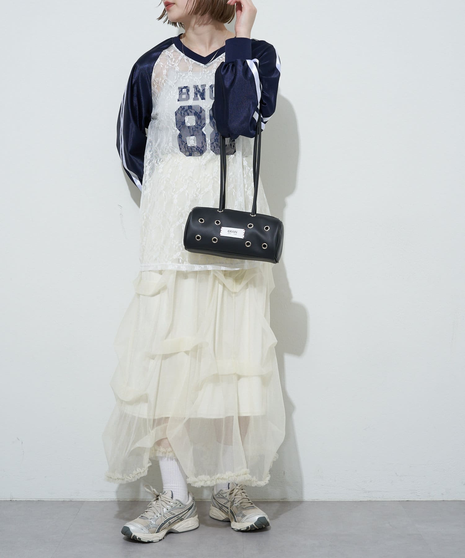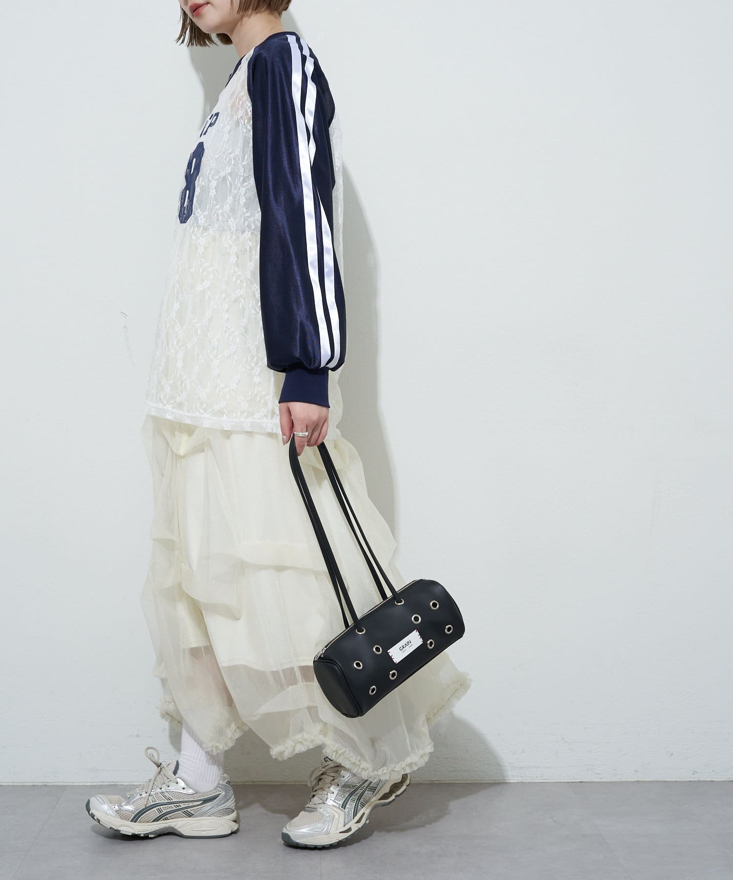 ハトメのスパイス感がトレンドの甘辛コーデを演出してくれます。