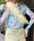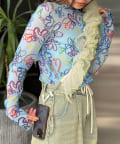 ワンショルチュールビスチェのようなデザインで持つだけでトレンドたっぷりのコーデに。