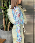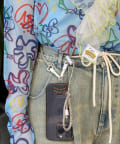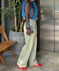 あえて、カラーもののアイテムと合わせるとハロサンらしいスタイリングに。