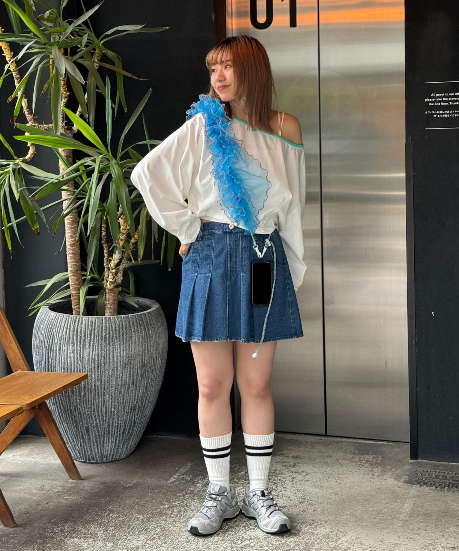 ふわふわのチュールがコーデのアクセントになるスマホショルダー。