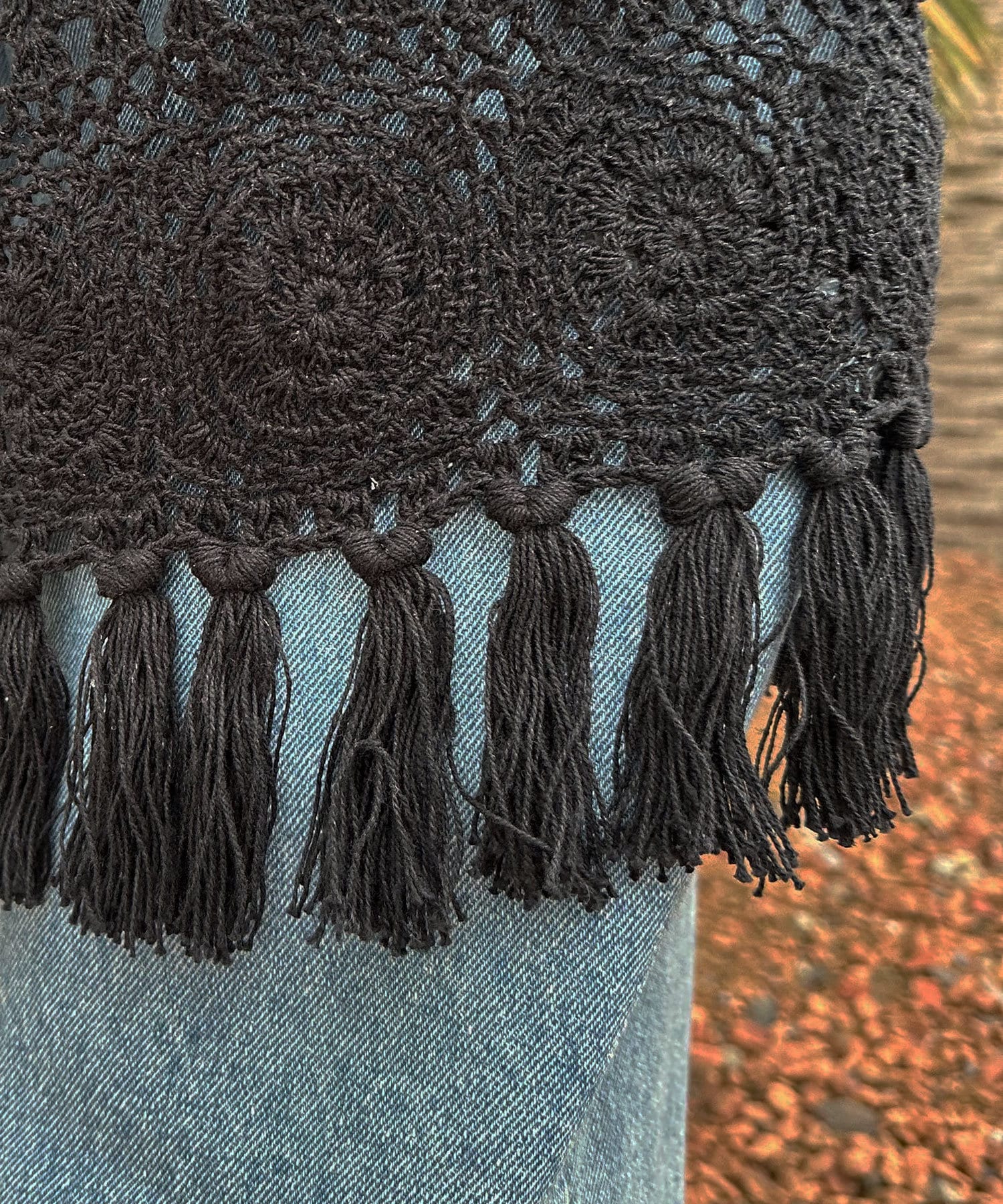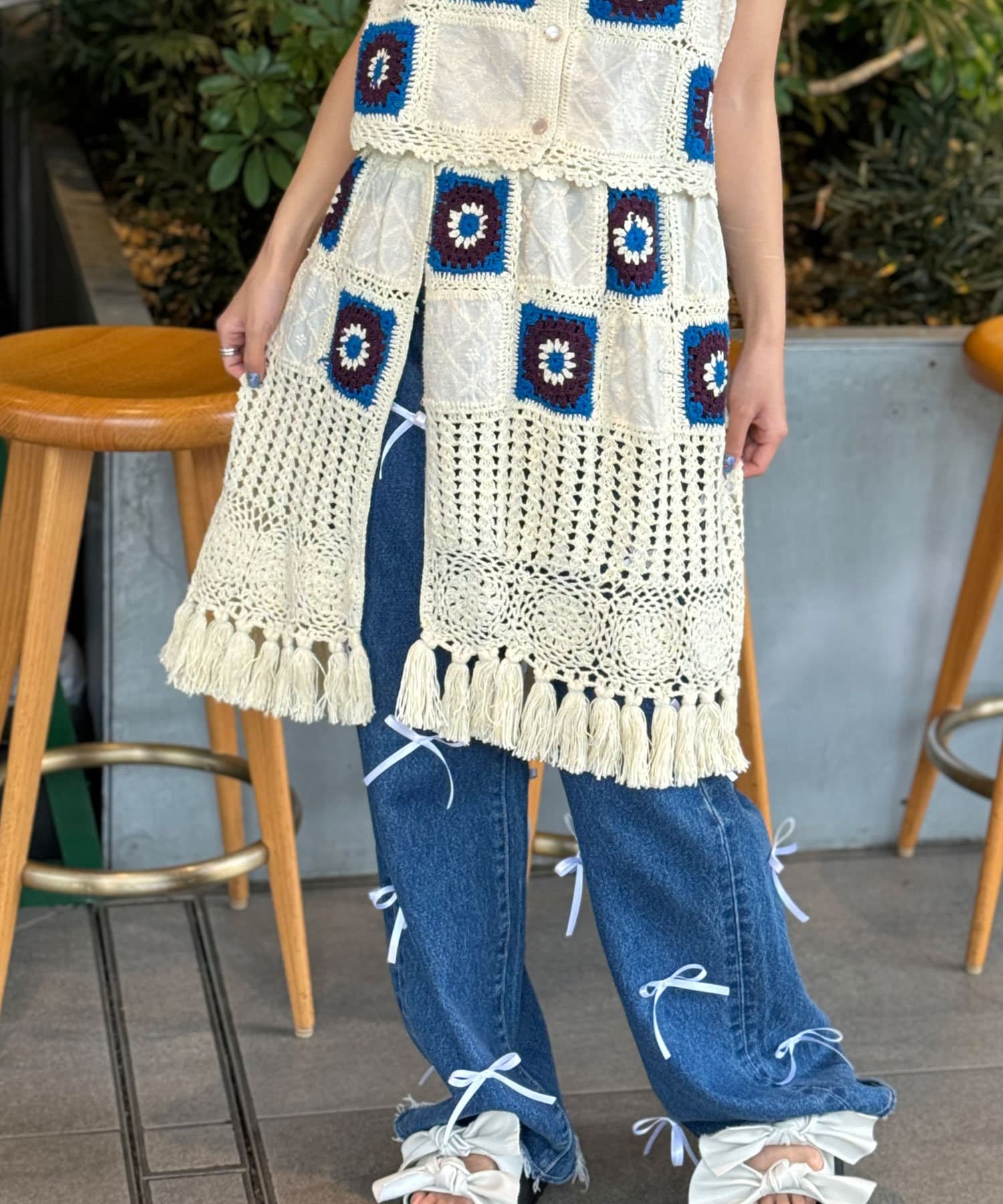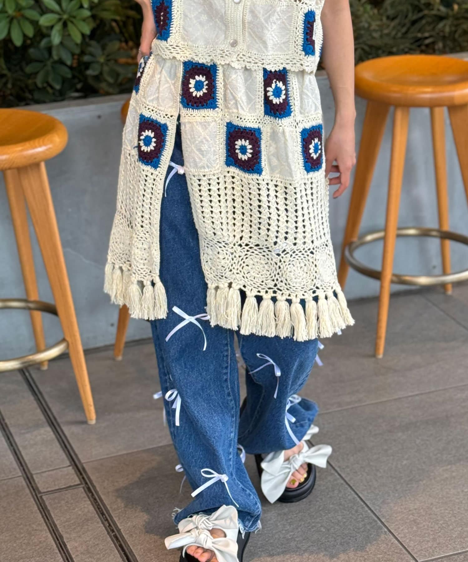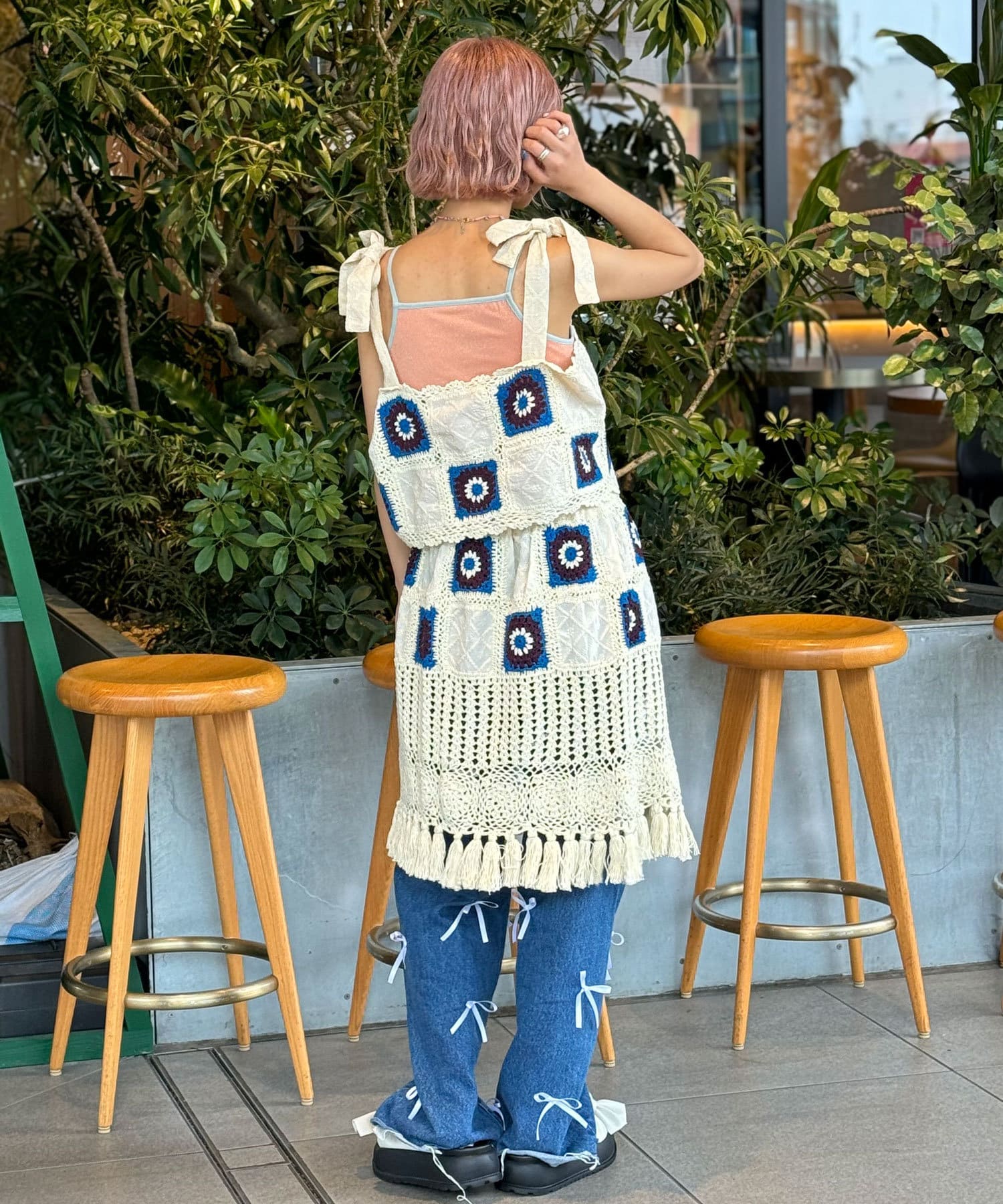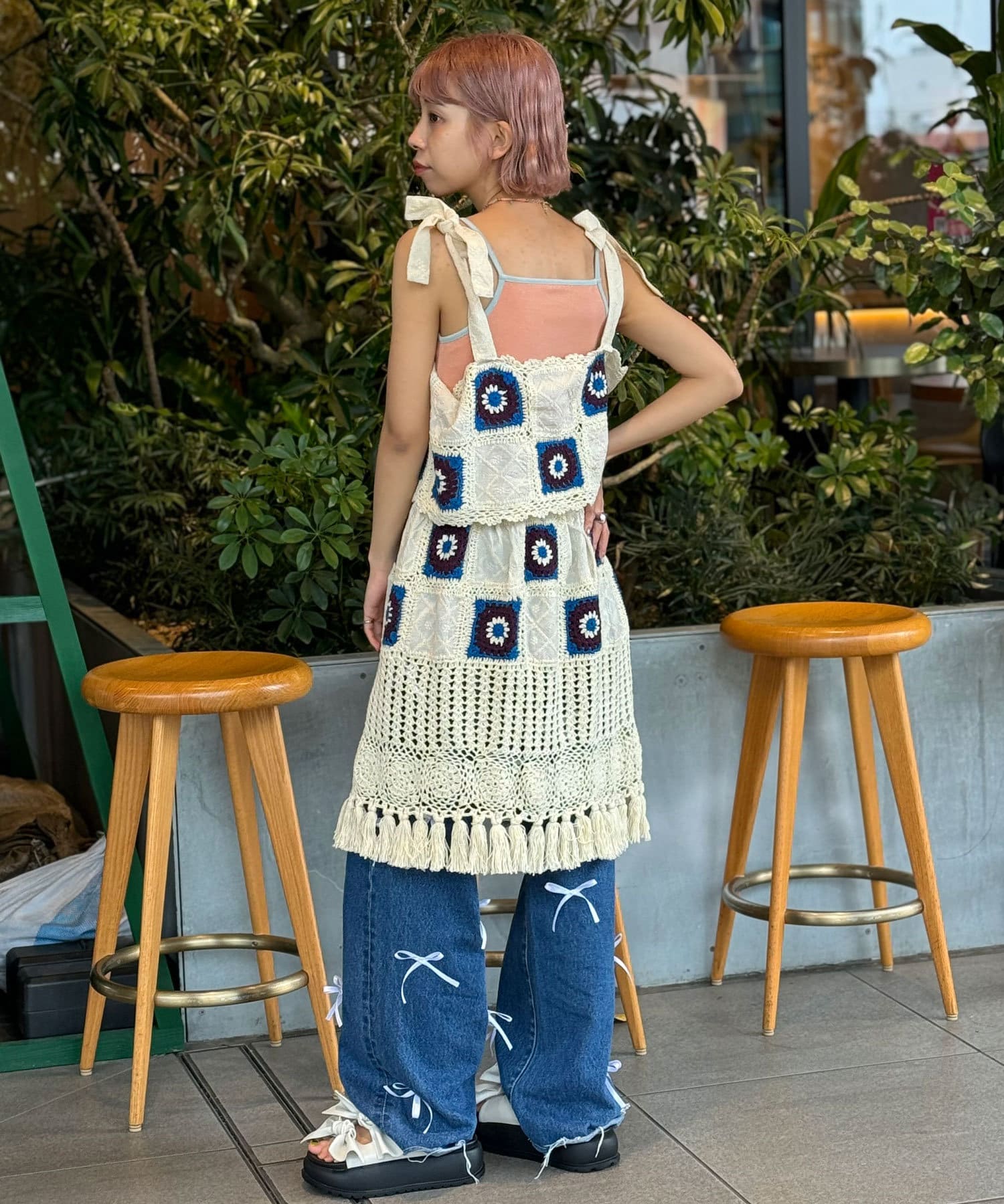 フリンジやサークル編みを用いており、ディテールも楽しめるデザインです。